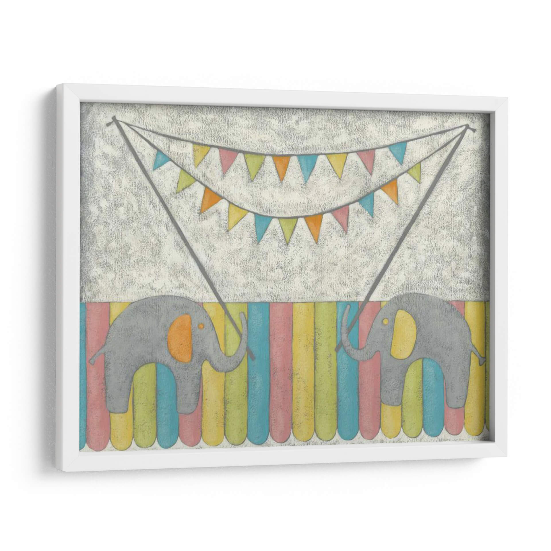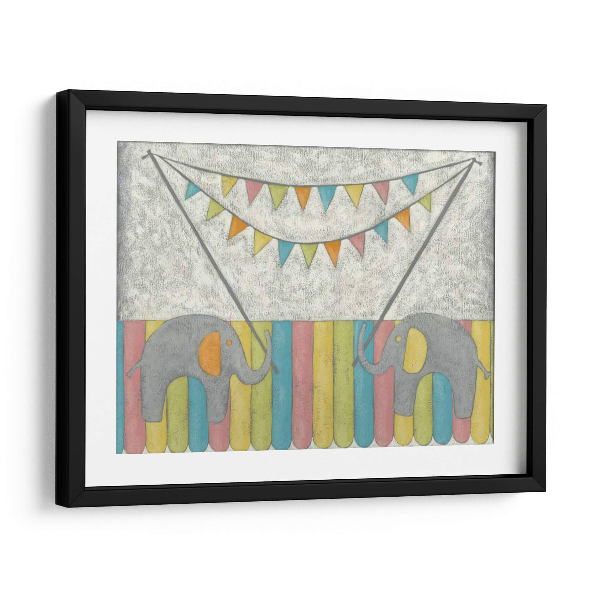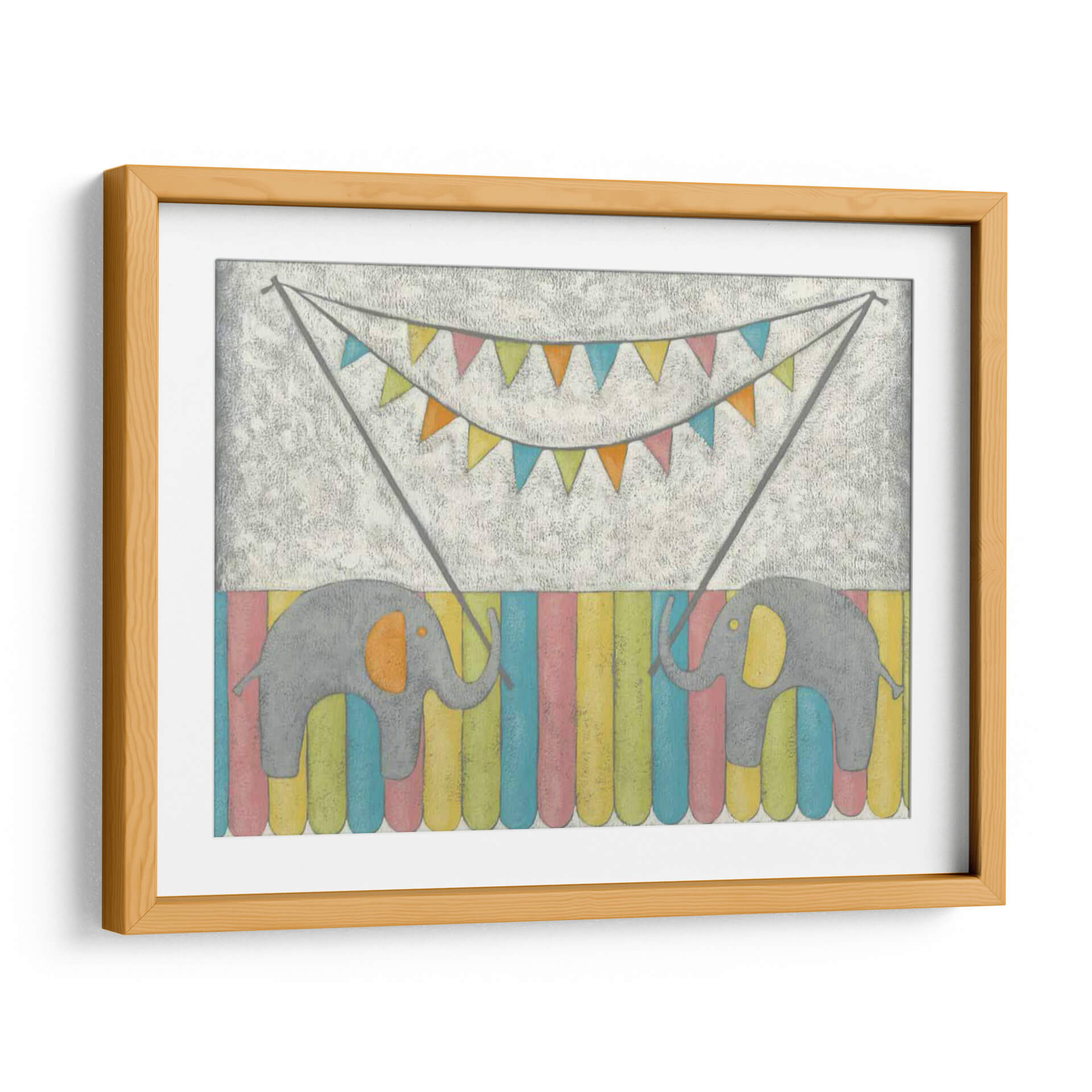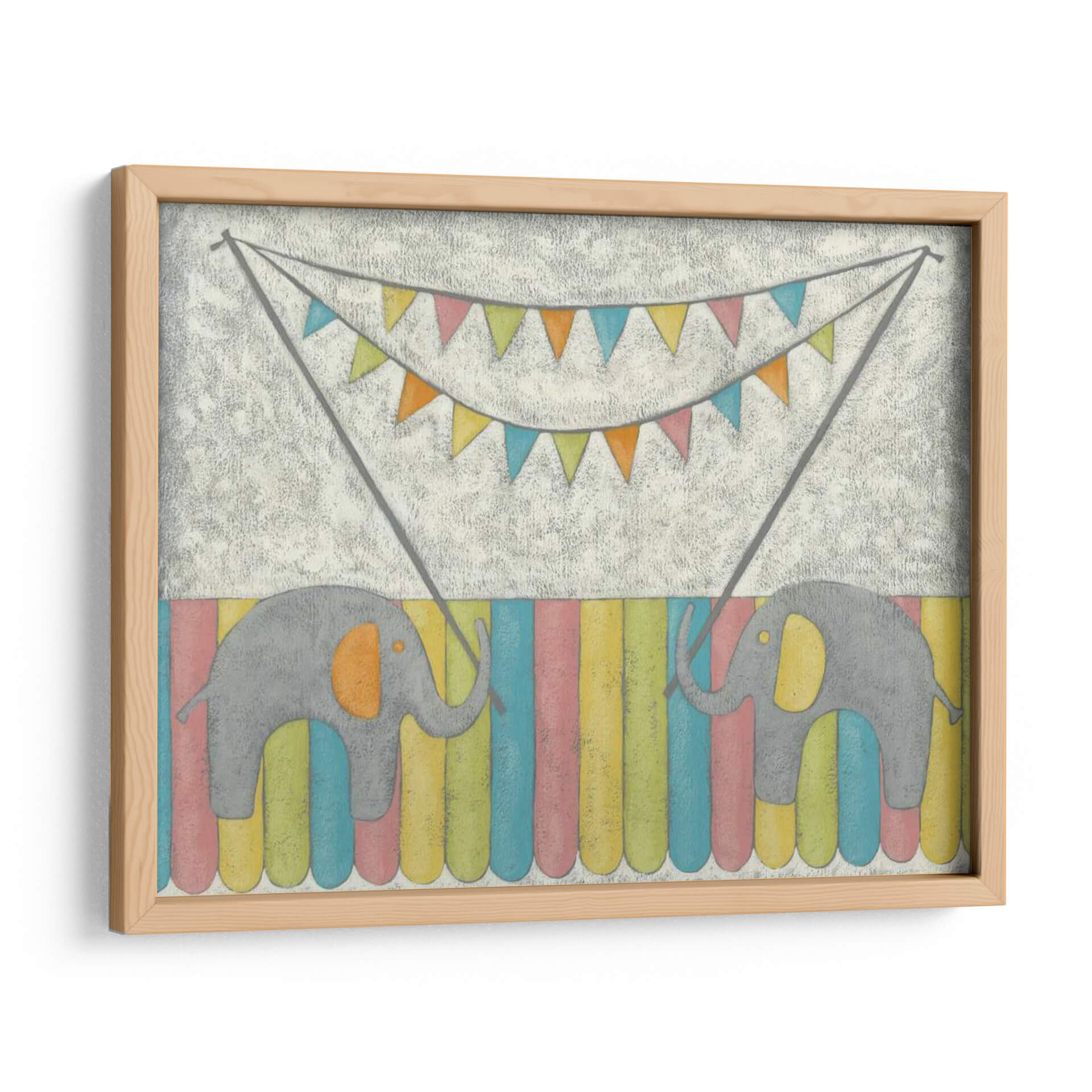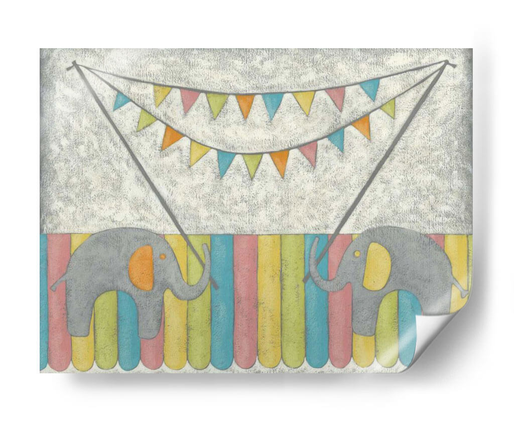 Celebra la alegría y el encanto con nuestro cuadro decorativo 'Elefantes de Carnaval', una obra vibrante del artista Chariklia Zarris. Esta pieza captura la imaginación con dos adorables elefantes grises, enmarcados por festivas banderolas de colores que cuelgan de finos soportes. La composición evoca una atmósfera de celebración y diversión, perfecta para añadir un toque lúdico y a la vez sofisticado a cualquier espacio. El fondo texturizado en tonos grises y blancos contrasta maravillosamente con la base de rayas verticales en colores pastel: rosa, azul, amarillo y verde, creando una paleta visualmente atractiva y armoniosa. El estilo único de Zarris, con sus detalles sutiles y su manejo del color, transforma esta escena en una declaración artística memorable. Ideal para salas de estar, dormitorios infantiles o cualquier rincón que necesite un estallido de color y positividad. Este cuadro decorativo es más que una simple imagen; es una invitación a la felicidad y una pieza que sin duda será un punto de conversación y admiración, aportando un aire de carnaval y optimismo a tu decoración.