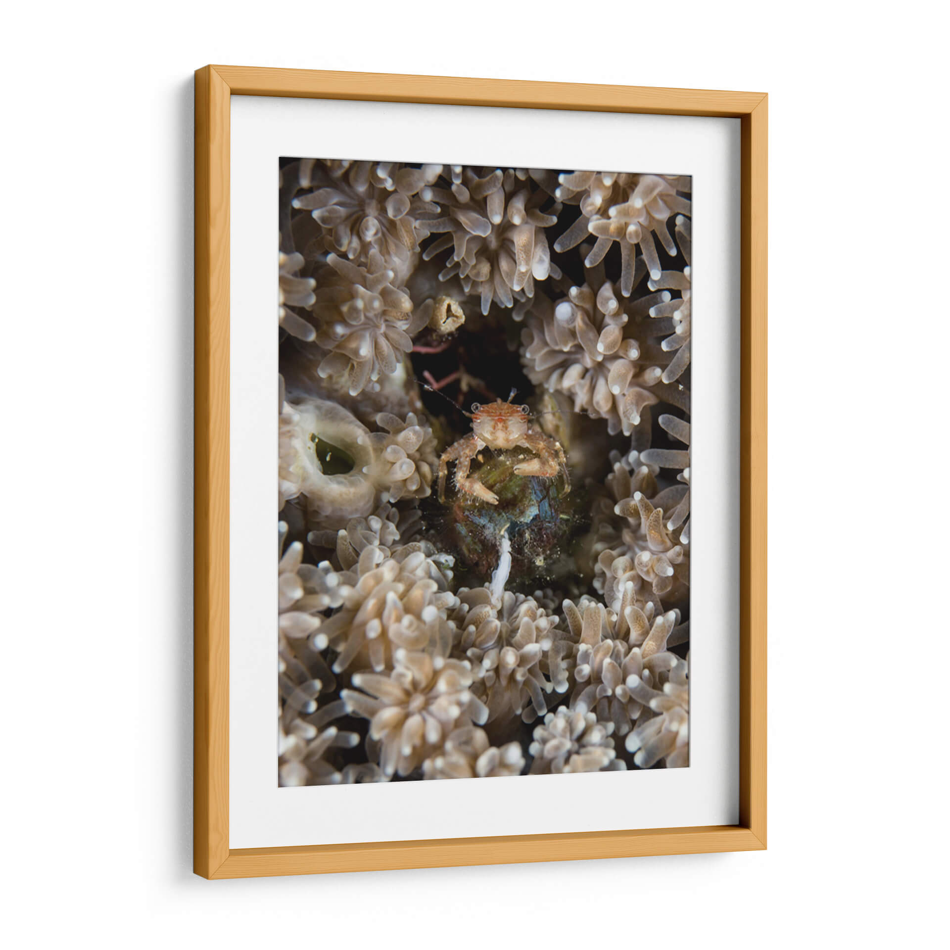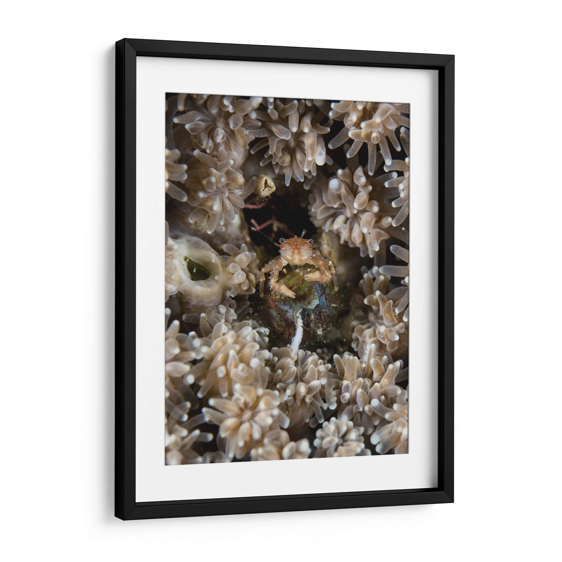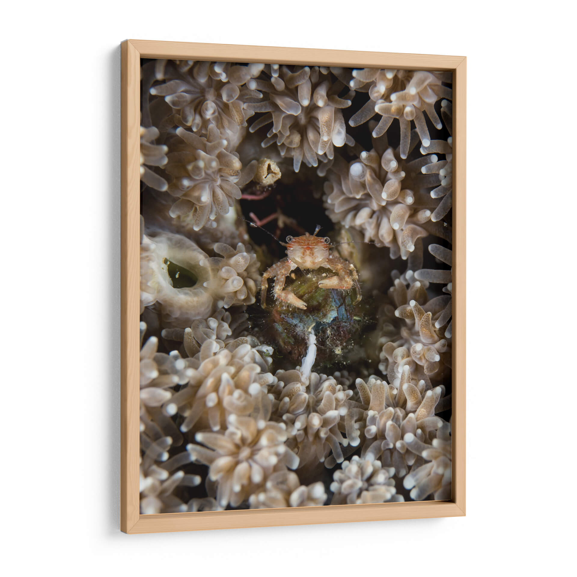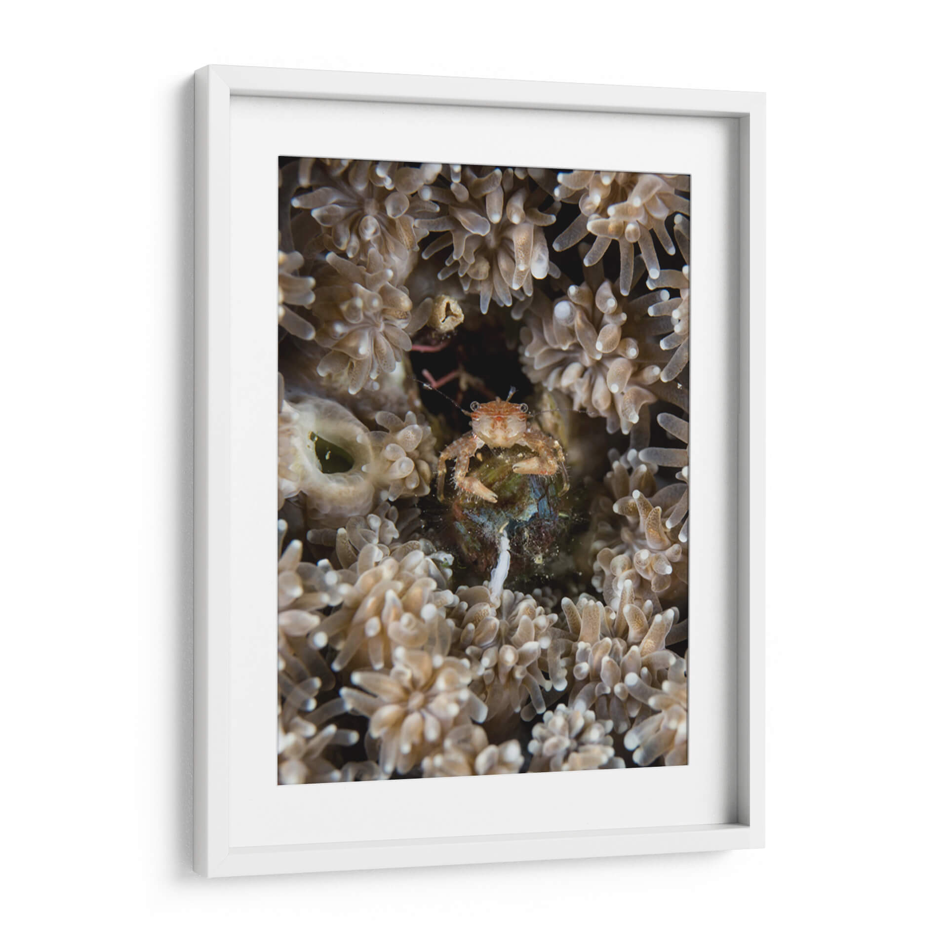 Sumérgete en las profundidades marinas con "Escondite", un cuadro decorativo que captura la fascinante vida subacuática. Esta obra maestra visual te transporta a un mundo de texturas delicadas y colores terrosos, donde un pequeño cangrejo se resguarda entre corales y anémonas. La composición íntima y el enfoque detallado invitan a la contemplación, revelando la belleza oculta en los pequeños detalles del océano. Ideal para añadir un toque de misterio y naturaleza a tu hogar u oficina, este cuadro evoca una sensación de calma y asombro ante la complejidad del ecosistema marino. Su paleta de tonos suaves y naturales se integra armoniosamente en cualquier decoración, desde la más rústica hasta la más moderna, creando un punto focal sereno y cautivador. "Escondite" no es solo una pieza de arte, sino una ventana a un universo silencioso y vibrante, perfecto para inspirar tranquilidad y curiosidad en tu espacio.