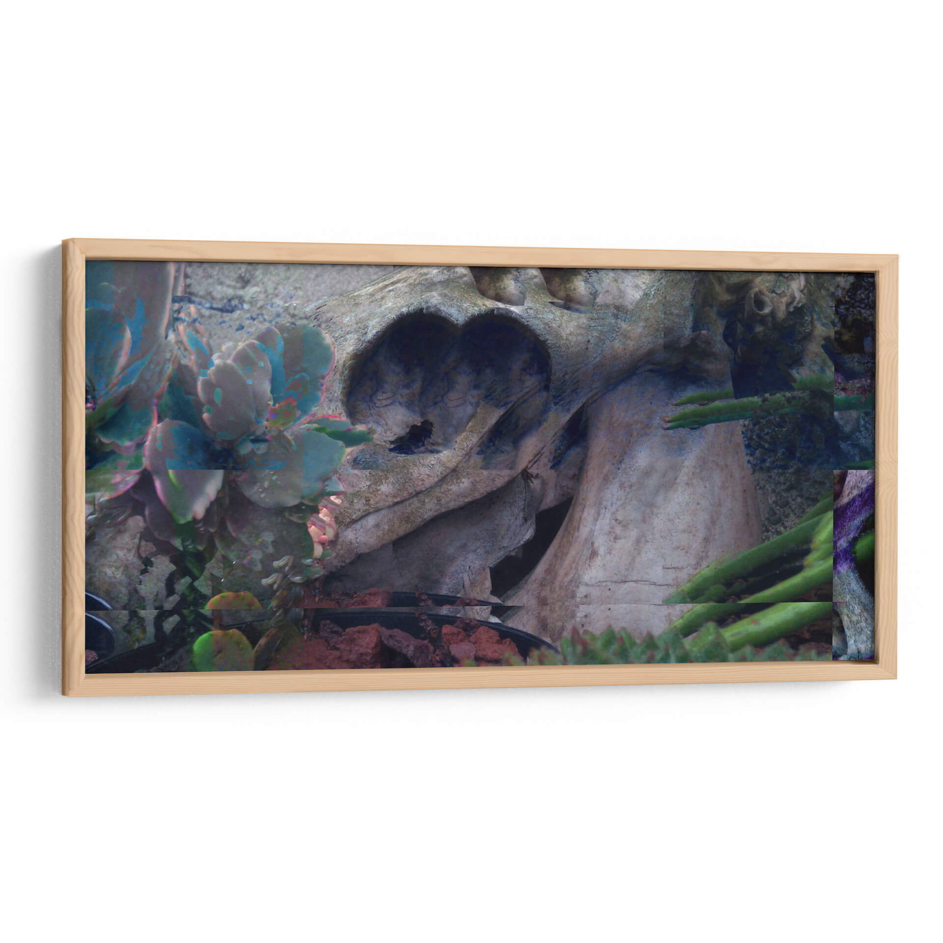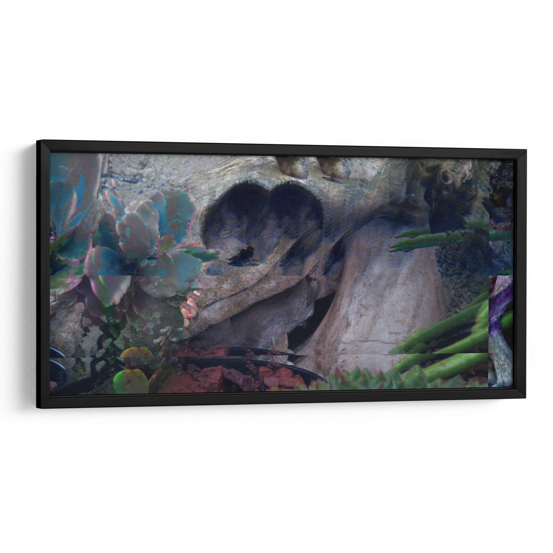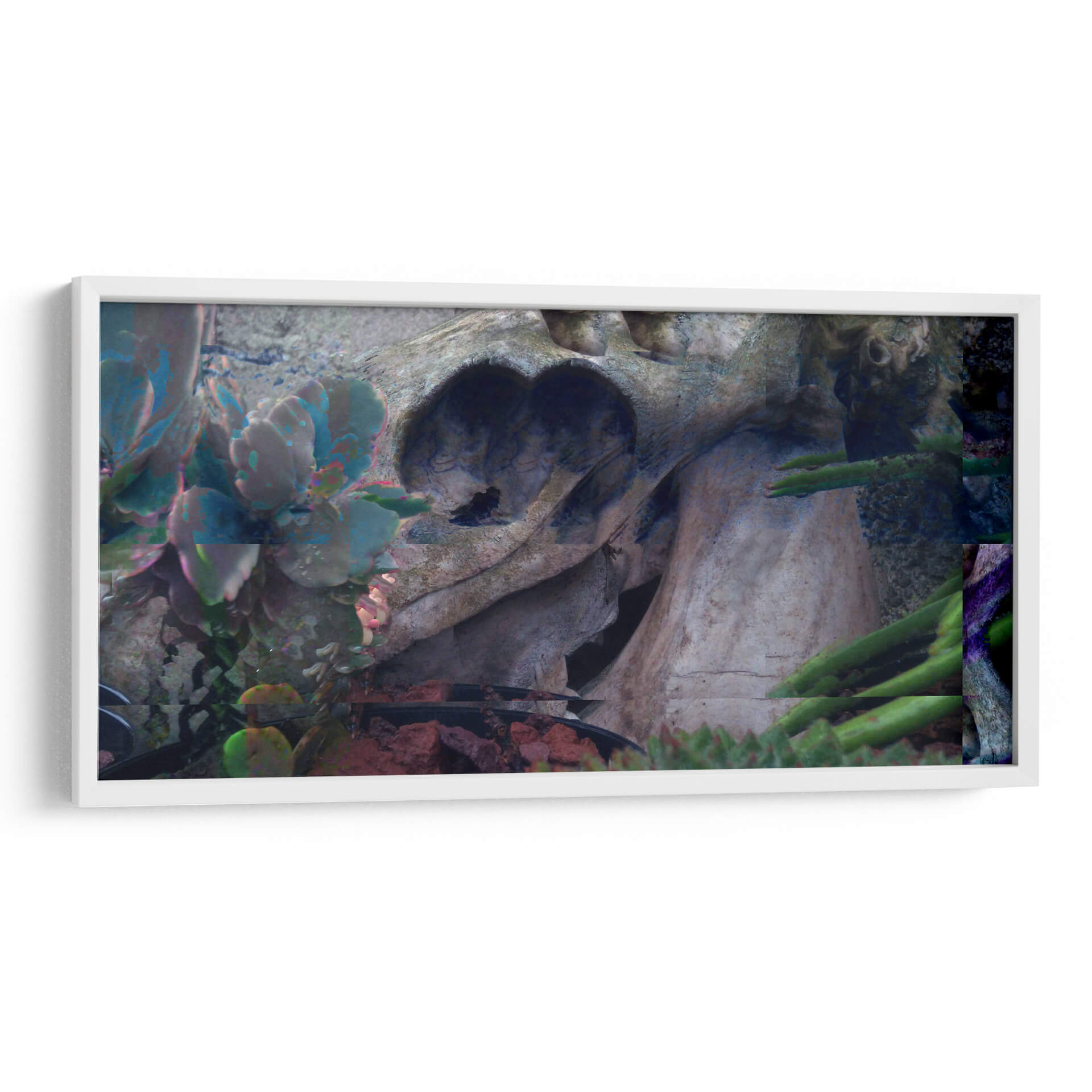 Sumérgete en la enigmática obra "Ex2" del artista El Escandaloso, una pieza de arte contemporáneo que desafía la percepción. Esta cautivadora imagen presenta una composición intrigante donde un elemento central, que evoca una estructura ósea o geológica, se entrelaza con la exuberancia de suculentas y vegetación. Los colores, una mezcla de tonos tierra, grises pétreos, y toques vibrantes de azul verdoso y púrpura, crean una atmósfera surrealista y contemplativa. La textura visual es rica, invitando a la inspección detallada de cada elemento, desde la rugosidad de la forma principal hasta la delicadeza de las hojas de las plantas. "Ex2" no es solo una decoración de pared; es una declaración visual que combina elementos orgánicos y abstractos, generando una sensación de misterio y belleza inesperada. Es una pieza ideal para aquellos que buscan añadir un toque de originalidad y profundidad a su hogar u oficina, especialmente en espacios modernos o eclécticos que aprecian el arte conceptual. Deja que este cuadro decorativo sea un punto de partida para conversaciones y una fuente de inspiración diaria.