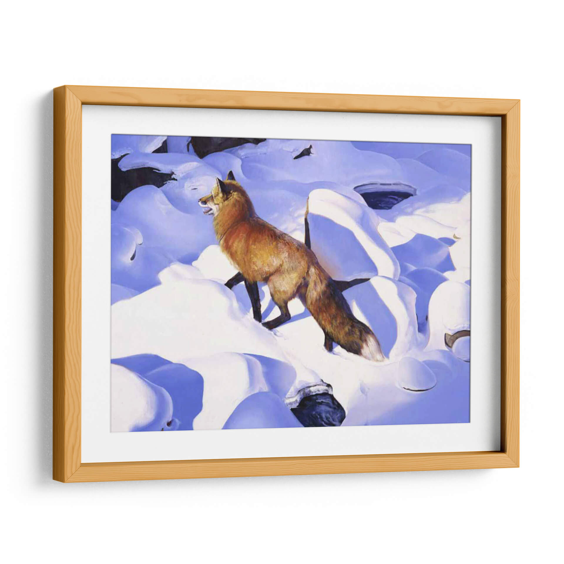 Sumérgete en la cruda belleza de la naturaleza con "Fuego y Hielo", una cautivadora obra de arte que captura un zorro rojo vibrante emergiendo de un paisaje nevado. La artista Julie T. Chapman ha logrado un contraste asombroso entre la cálida tonalidad del pelaje del zorro y el frío azulado de la nieve, creando una pieza visualmente impactante. La composición dinámica, con el zorro en pleno movimiento explorando el terreno cubierto de nieve, evoca una sensación de aventura y resiliencia. Las sombras profundas y los pliegues suaves de la nieve añaden textura y realismo, invitando al espectador a sentir el aire helado y la quietud del invierno. Este cuadro decorativo es perfecto para añadir un toque de vida salvaje y elegancia natural a cualquier espacio, ya sea una sala de estar, un estudio o un dormitorio. Su capacidad para evocar emociones de fuerza y adaptabilidad lo convierte en una elección excepcional para quienes buscan arte que inspire y conecte con la esencia de la vida en su estado más puro. Una pieza que no solo embellece, sino que también cuenta una historia de supervivencia y belleza en el entorno más desafiante.