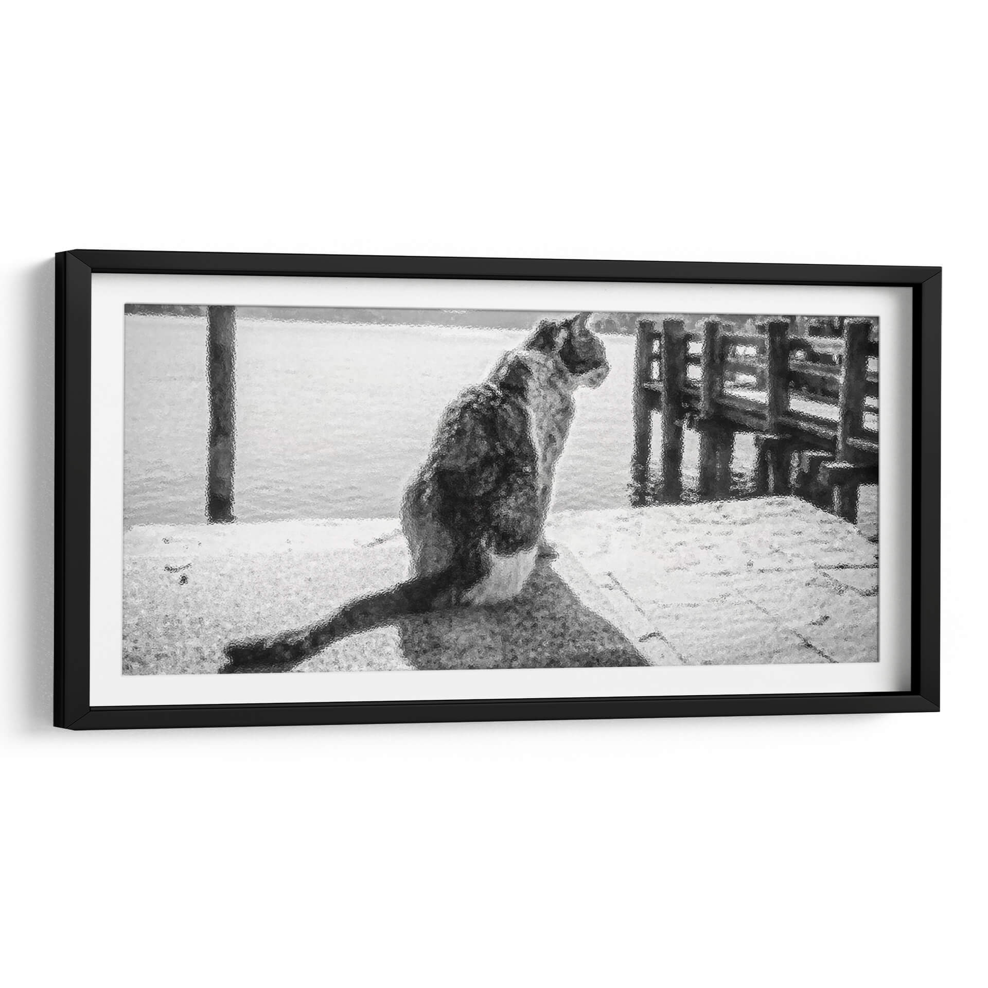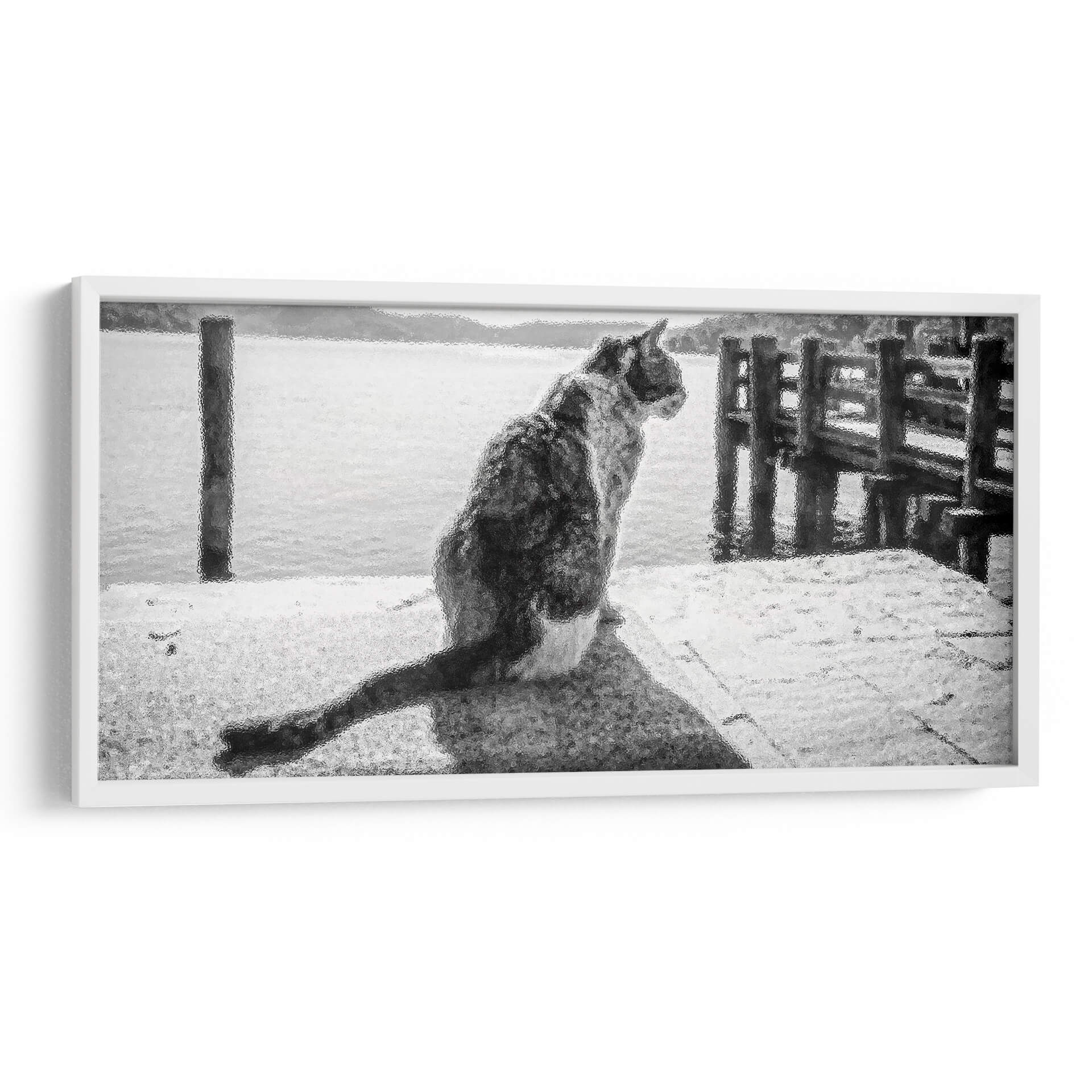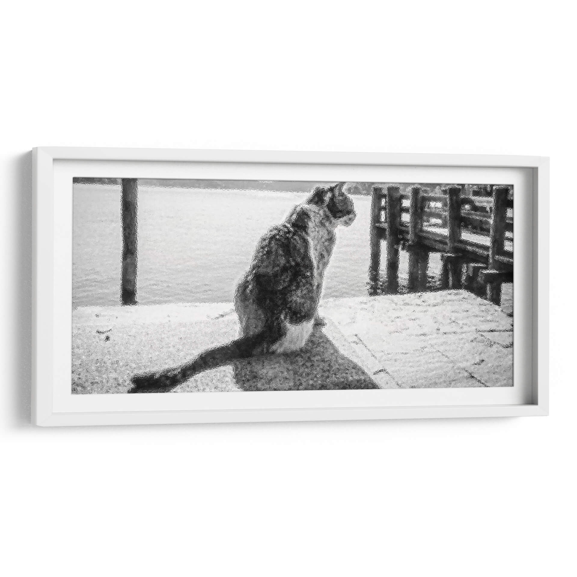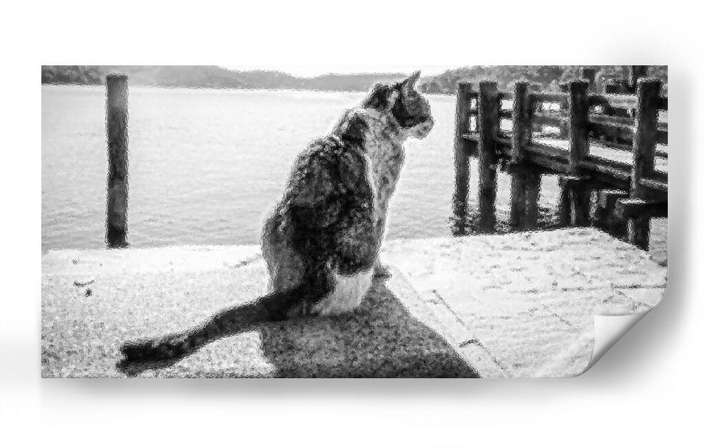 Sumérgete en la serena contemplación de "GATO EN EL MUELLE", una obra maestra de Ariadne Contreras que captura un momento de profunda quietud junto al mar. Este cuadro decorativo, con su atmósfera monocromática y su textura evocadora, transporta al espectador a un muelle tranquilo donde un gato, de espaldas al observador, mira hacia el horizonte acuático. La paleta de grises y blancos crea una sensación de paz y reflexión, ideal para espacios que buscan un toque de serenidad y elegancia sutil. La composición, centrada en la figura del felino y el vasto mar que se extiende ante él, invita a la introspección y a la conexión con la naturaleza. Las sutiles texturas añaden profundidad y un interés visual cautivador, haciendo de esta pieza un punto focal discreto pero poderoso. Perfecta para salas de estar, estudios o dormitorios, "GATO EN EL MUELLE" es más que una simple decoración; es una invitación a detenerse, observar y encontrar la belleza en los momentos de calma. Añade una pieza de arte contemporáneo que no solo embellece tu hogar, sino que también evoca una profunda sensación de tranquilidad y misterio, resonando con amantes de los animales y del arte abstracto.