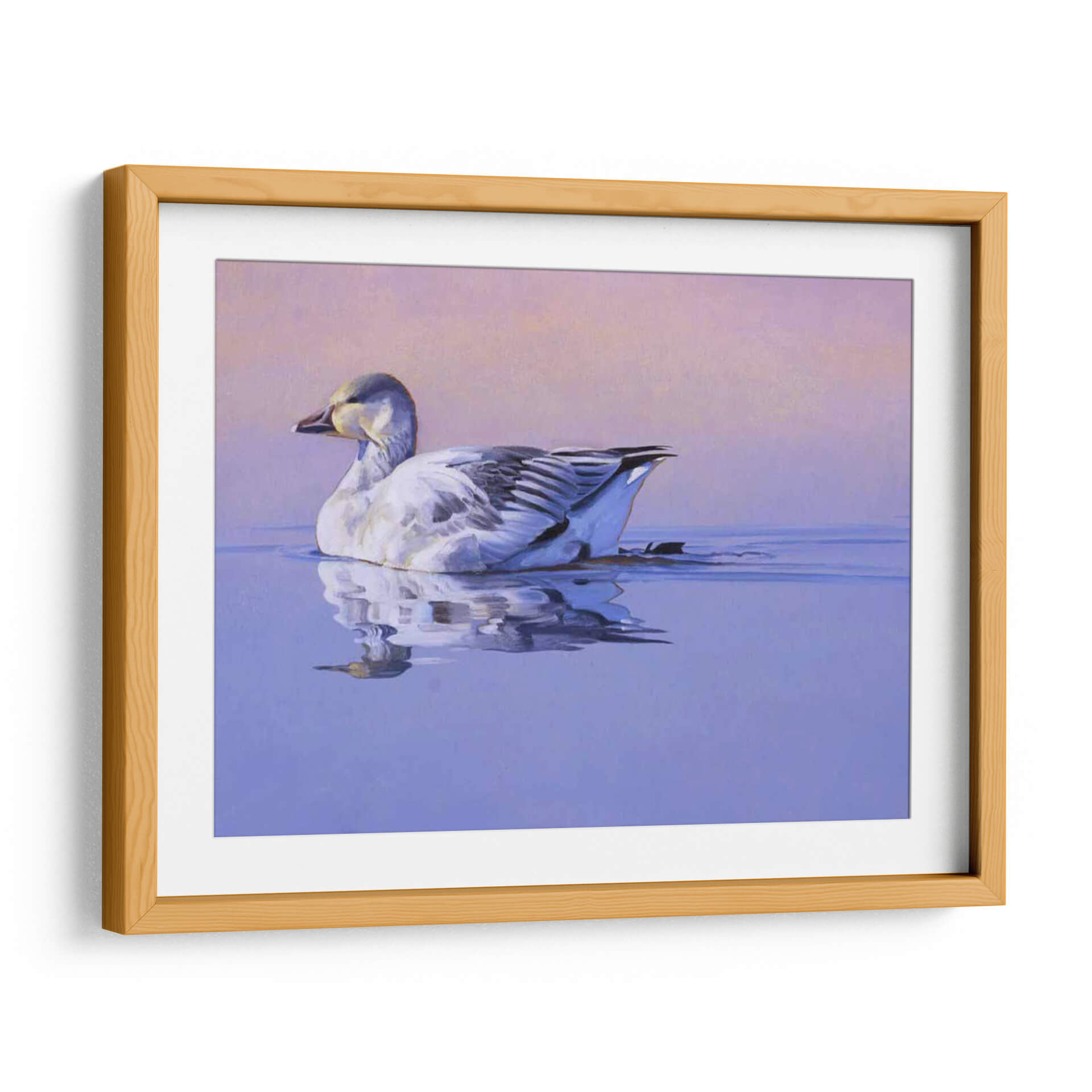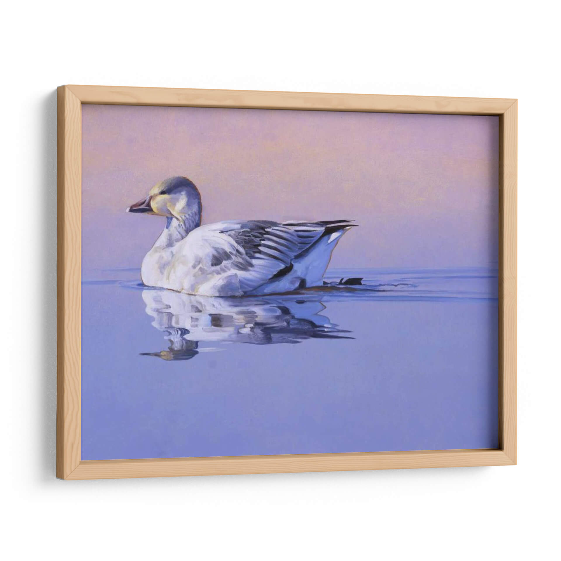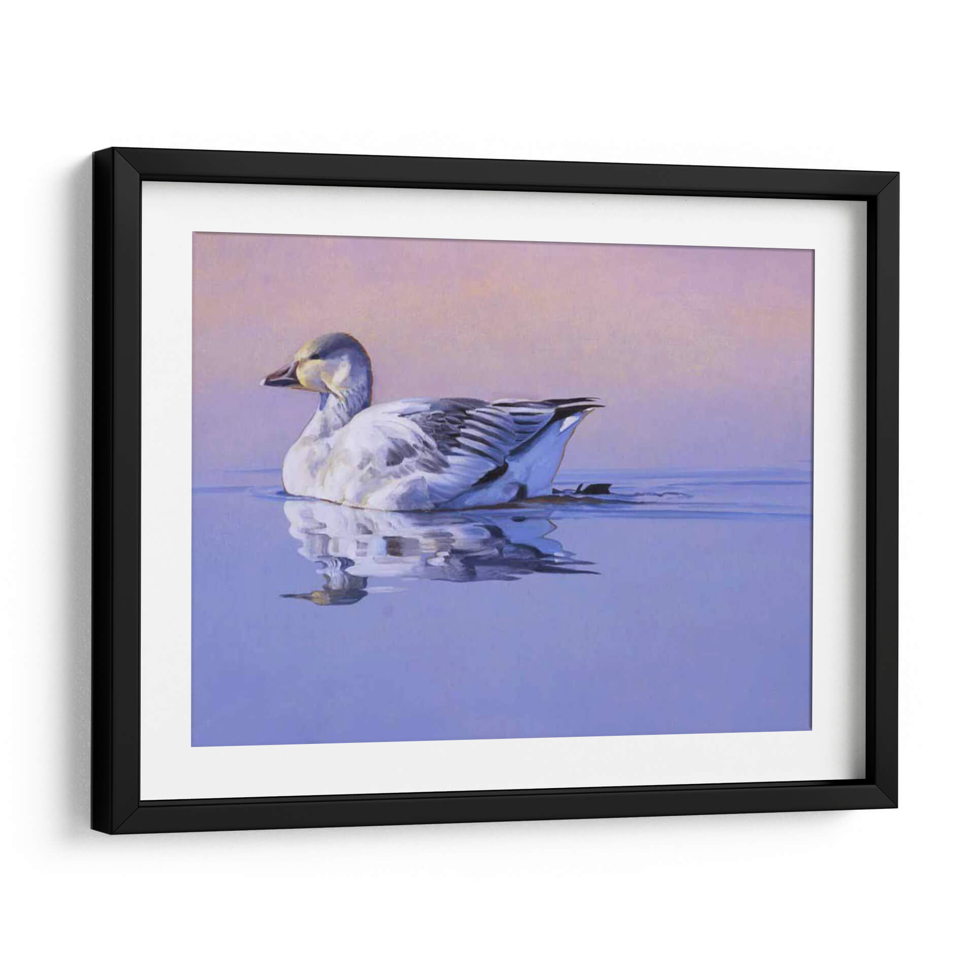 Captura la serenidad y la belleza de la naturaleza con "Gloria De La Mañana", una obra de arte contemporáneo que evoca paz y tranquilidad. Esta pieza presenta un ganso blanco majestuoso nadando plácidamente en aguas serenas, con un reflejo detallado que duplica su elegancia. La paleta de colores se compone de tonos suaves de lavanda y rosa pálido en el cielo, que contrastan armónicamente con los azules profundos del agua y los sutiles grises y blancos del ave. La delicadeza en la pincelada y la composición equilibrada invitan a la contemplación, creando una atmósfera de calma absoluta. Este cuadro decorativo es ideal para cualquier espacio que busque un toque de naturaleza y serenidad, como dormitorios, estudios o salas de estar. Su estilo realista, con toques impresionistas en el fondo, lo convierte en una adición versátil para decoraciones modernas o clásicas. "Gloria De La Mañana" no es solo una imagen, es una invitación a la introspección y a la apreciación de los momentos de quietud en nuestro entorno. Añade esta pieza única a tu colección y transforma tu hogar en un santuario de paz y buen gusto.