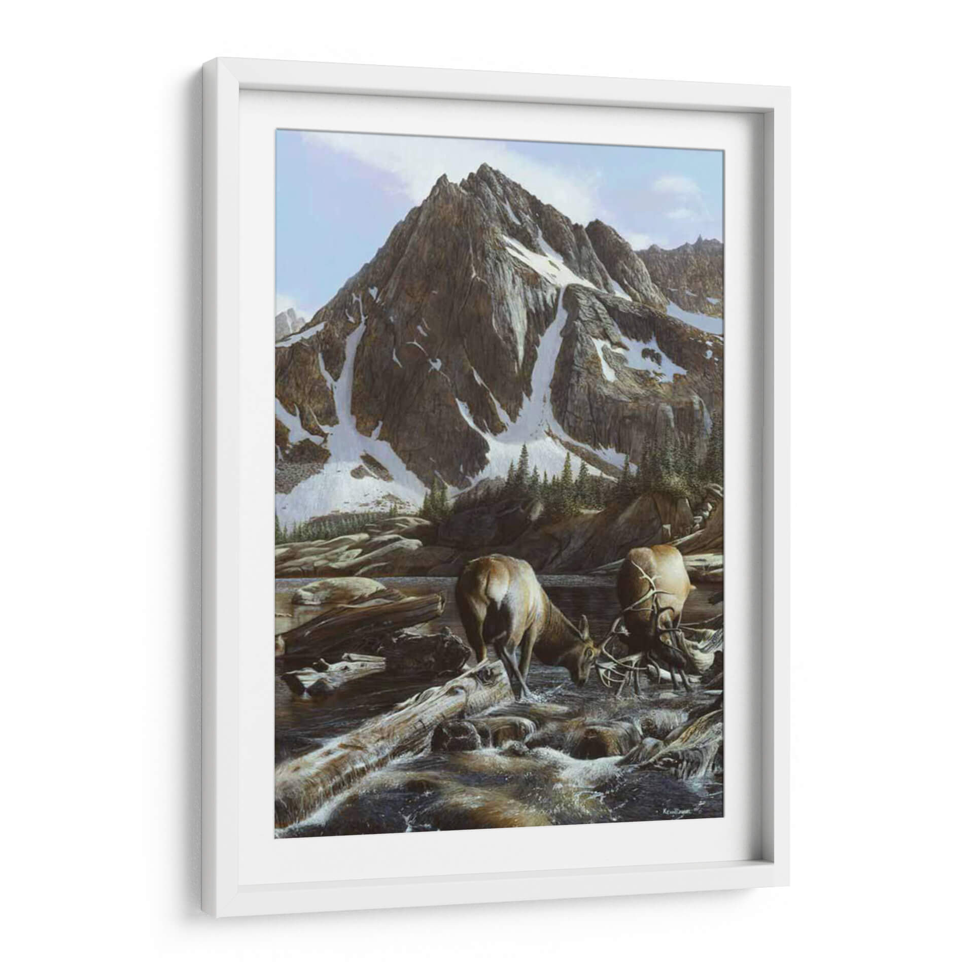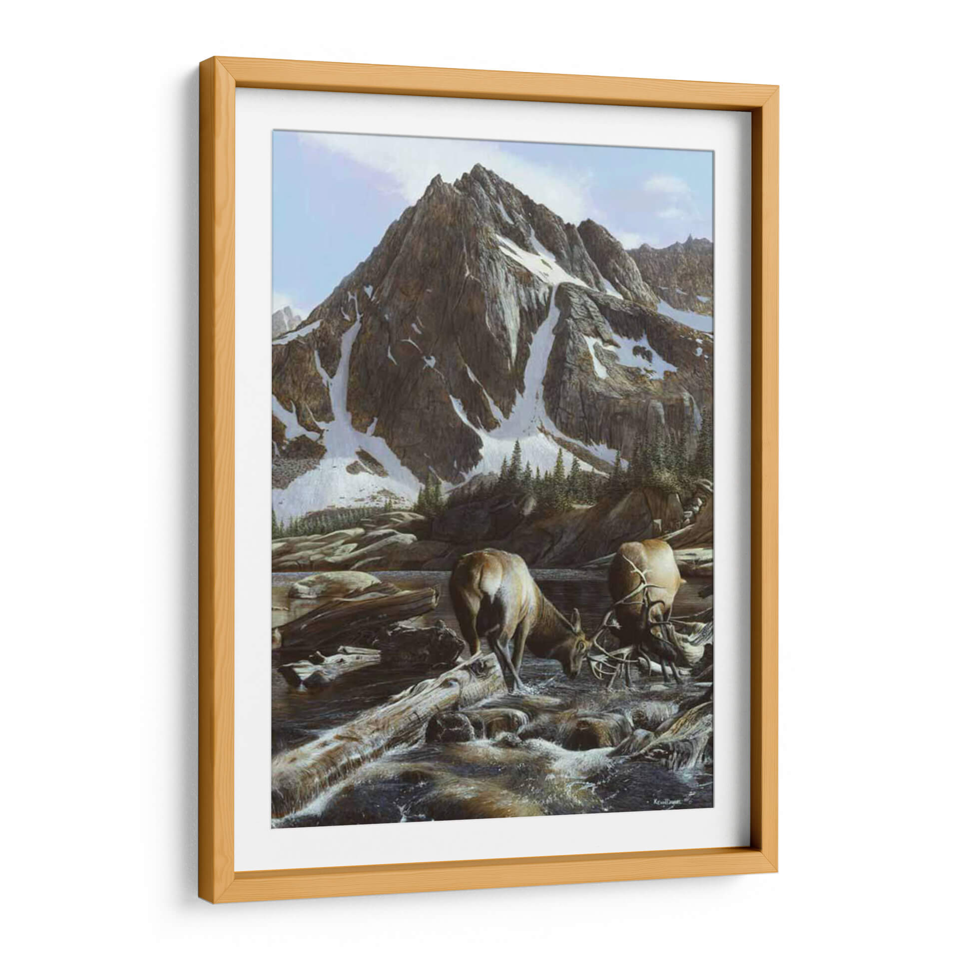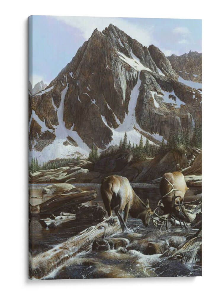 Captura la majestuosidad indómita de la naturaleza con "Ladera Elk II", una obra maestra que evoca la serenidad y la fuerza de la vida salvaje en su hábitat natural. Este cuadro decorativo representa un imponente paisaje montañoso, con picos escarpados salpicados de nieve que se alzan hacia un cielo sereno y azul. En primer plano, dos majestuosos alces navegan las aguas cristalinas de un río rocoso, rodeados de troncos caídos que añaden textura y un sentido de lugar salvaje. La paleta de colores, dominada por tonos tierra, grises rocosos y blancos nítidos, crea una atmósfera de calma y autenticidad. El detallado realismo de la escena, desde la textura de la roca hasta el pelaje de los animales, transporta al espectador a un momento de paz y conexión con el mundo natural. "Ladera Elk II" es la pieza perfecta para infundir tranquilidad y un toque de aventura en tu hogar u oficina, ideal para amantes de la vida silvestre y la belleza escénica. Añade un toque de naturaleza salvaje y serena a tu decoración con este impresionante cuadro decorativo.