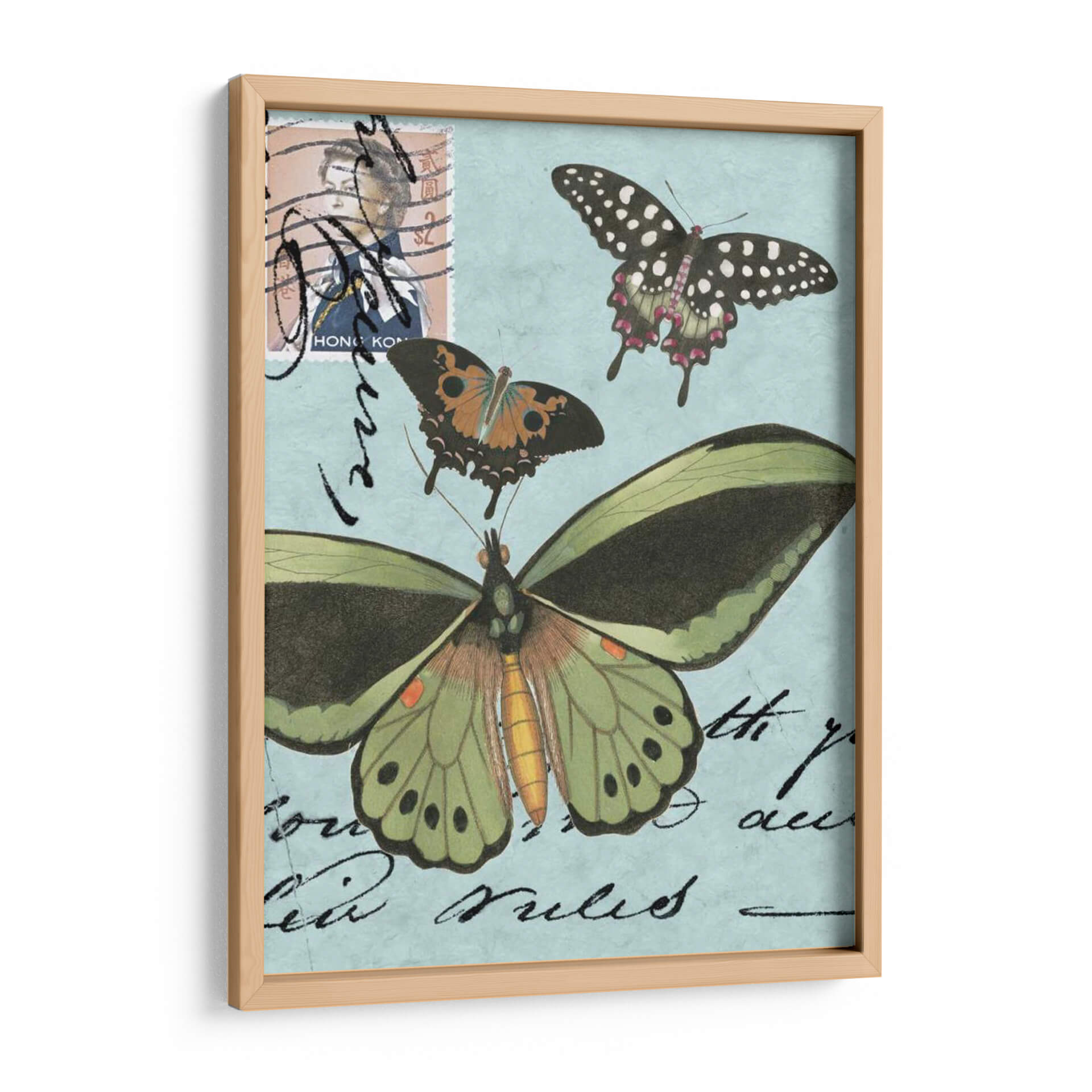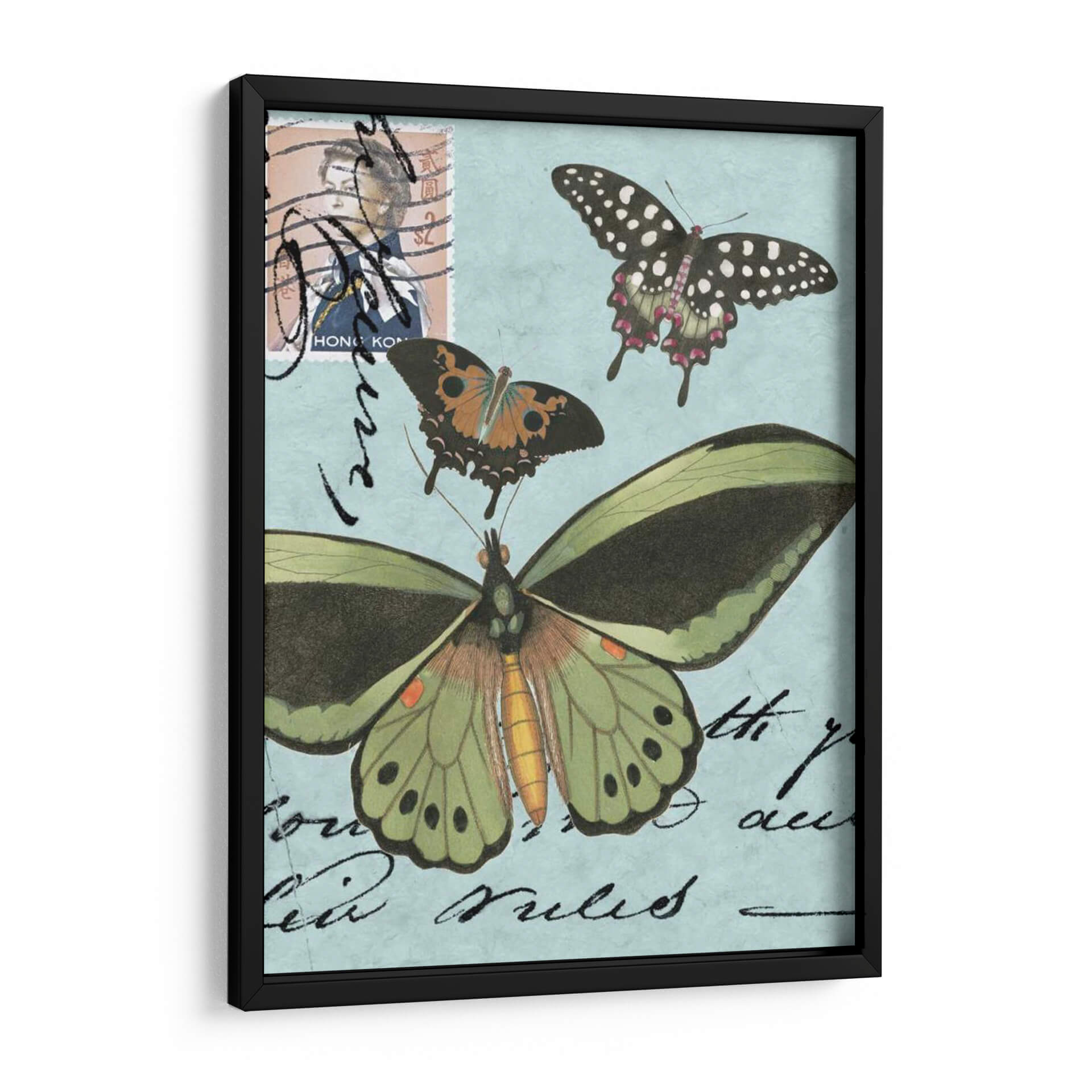 Embárcate en un viaje visual encantador con 'Le Papillon Script Vi', una obra de arte que celebra la delicadeza y la belleza etérea de las mariposas. Este cuadro decorativo presenta un cautivador collage de mariposas en pleno vuelo, cada una con sus intrincados patrones y vibrantes colores capturados con un estilo que evoca la ilustración botánica clásica. Sobre un fondo de un suave azul cielo, adornado con caligrafía vintage y un sello postal antiguo, la obra irradia una atmósfera de nostalgia y elegancia. La composición, con sus mariposas de diversos tamaños y tonalidades, desde el verde esmeralda y el naranja vibrante hasta el negro salpicado de blanco, crea un contraste dinámico y una sensación de movimiento ascendente. Es la pieza perfecta para añadir un toque de sofisticación natural y un aire de ensueño a cualquier habitación, ya sea un salón moderno, un dormitorio tranquilo o una oficina que busca inspiración. Este cuadro decorativo no solo embellece tu espacio, sino que también invita a la contemplación de la efímera maravilla de la naturaleza, transformando tu pared en una ventana a un jardín encantado.