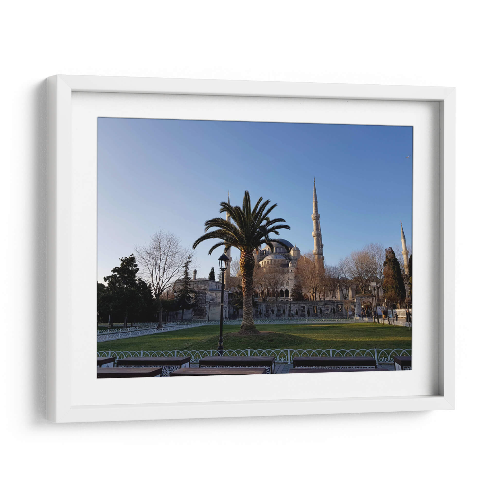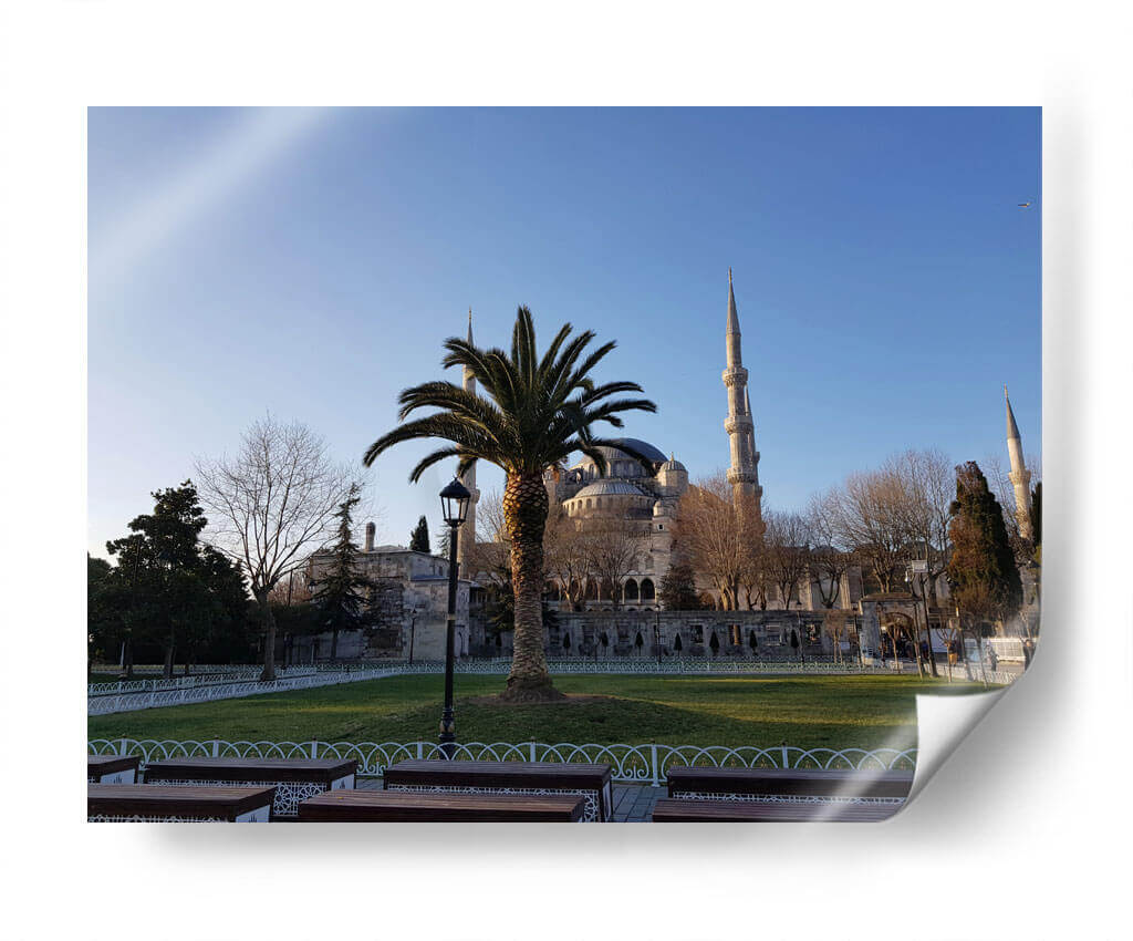 Sumérgete en la majestuosidad de Estambul con nuestro impresionante cuadro decorativo "Mezquita detrás de una palmera" del artista Anivpaz. Esta obra captura la serenidad de una tarde soleada, con el imponente perfil de una mezquita, destacando sus minaretes y cúpulas bajo un cielo azul claro. Una palmera solitaria se alza en primer plano, añadiendo un toque exótico y un contraste visual cautivador con la arquitectura histórica. La paleta de colores, dominada por tonos azules vibrantes del cielo, el verde suave del césped y los cálidos tonos ocres de la estructura de la mezquita, crea una atmósfera de paz y contemplación. La composición, que equilibra la grandiosidad del edificio con la elegancia natural de la palmera y la tranquilidad del espacio abierto, invita a la reflexión. Este cuadro decorativo es perfecto para añadir un toque de sofisticación y un aire de escapada exótica a cualquier sala de estar, estudio u oficina. Su presencia evoca calma y transporta al espectador a un viaje sensorial, convirtiéndose en un punto focal que inspira tranquilidad y aprecio por la belleza arquitectónica y natural. Ideal para quienes buscan arte que cuente una historia y ofrezca una ventana a otras culturas.