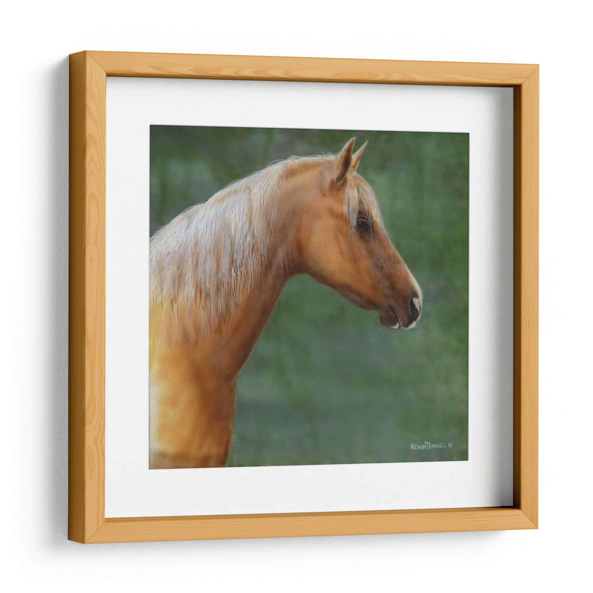 Captura la majestuosidad y la gracia con este impresionante cuadro decorativo de un caballo palomino, titulado "Palomino" y creado por el artista Kevin Daniel. La obra maestra presenta un primer plano del perfil de un hermoso caballo de pelaje dorado, cuya crin fluye con un tono plateado y blanco, destacando contra un fondo de exuberante vegetación verde desenfocada. Los detalles realistas de la piel del caballo, la expresividad de su ojo y la textura de su melena se combinan para crear una pieza que irradia calma, nobleza y una conexión íntima con la naturaleza. Los tonos cálidos del caballo contrastan armoniosamente con el verde profundo del fondo, generando una atmósfera de serenidad y elegancia. Este cuadro decorativo es una elección perfecta para quienes buscan añadir un toque de sofisticación y vida a su hogar u oficina. Ideal para salas de estar, dormitorios o estudios donde se desee un punto focal inspirador y lleno de carácter. Añade esta exquisita representación de la belleza equina a tu colección y transforma tu espacio con su presencia cautivadora.