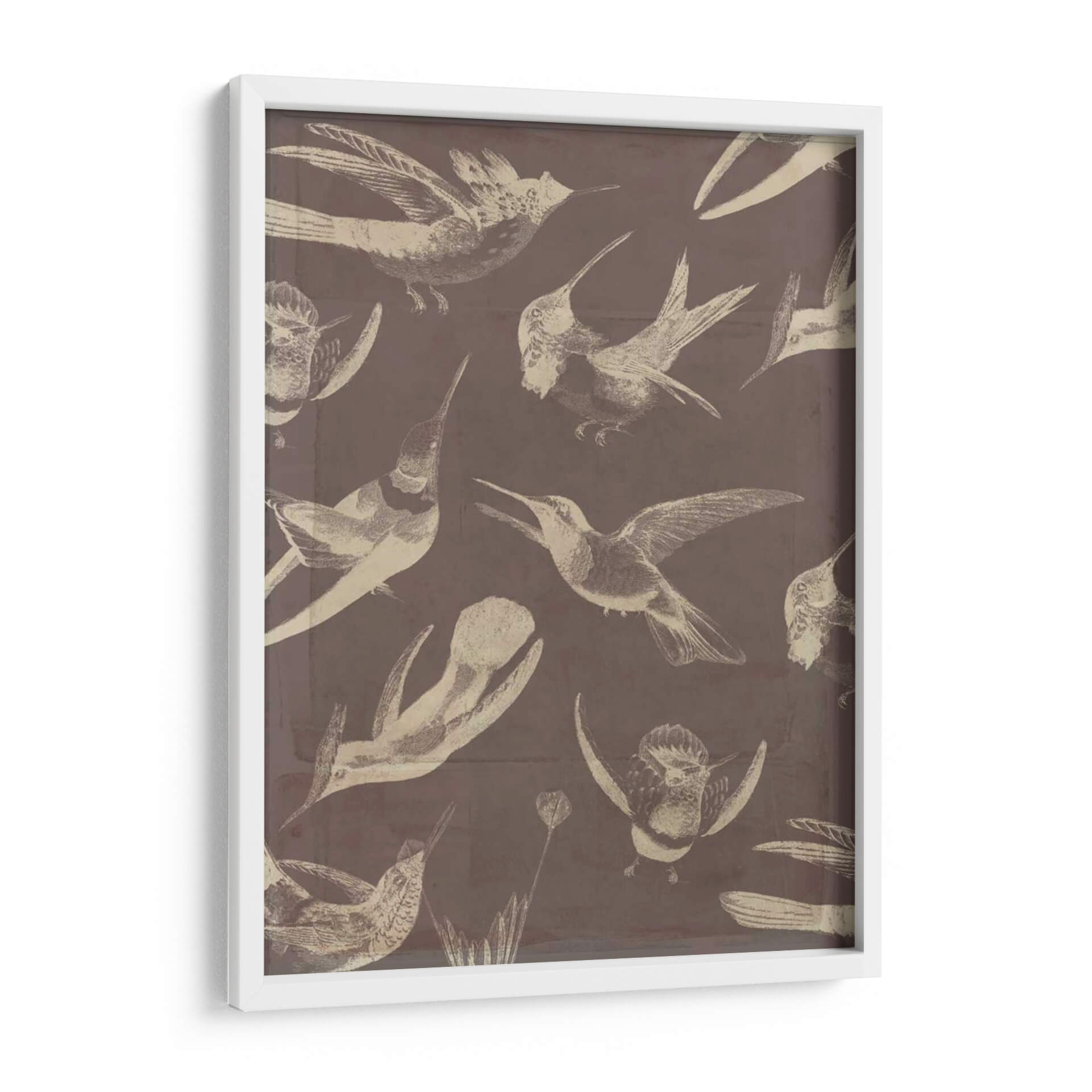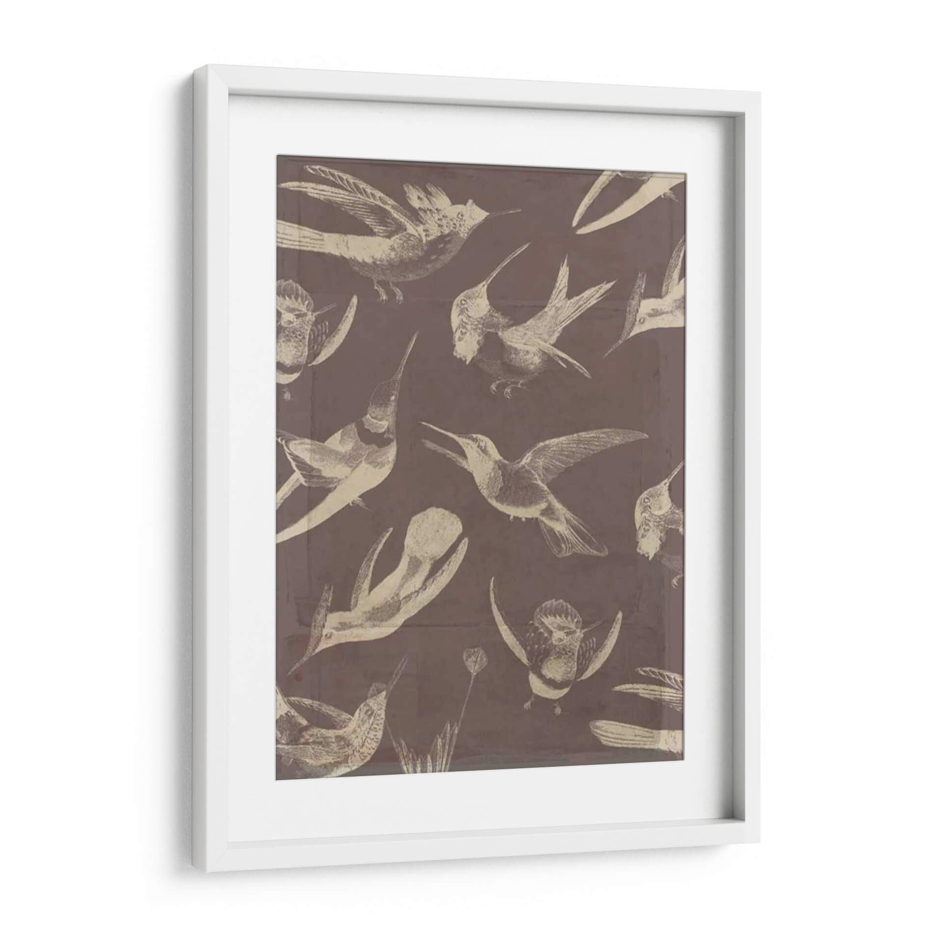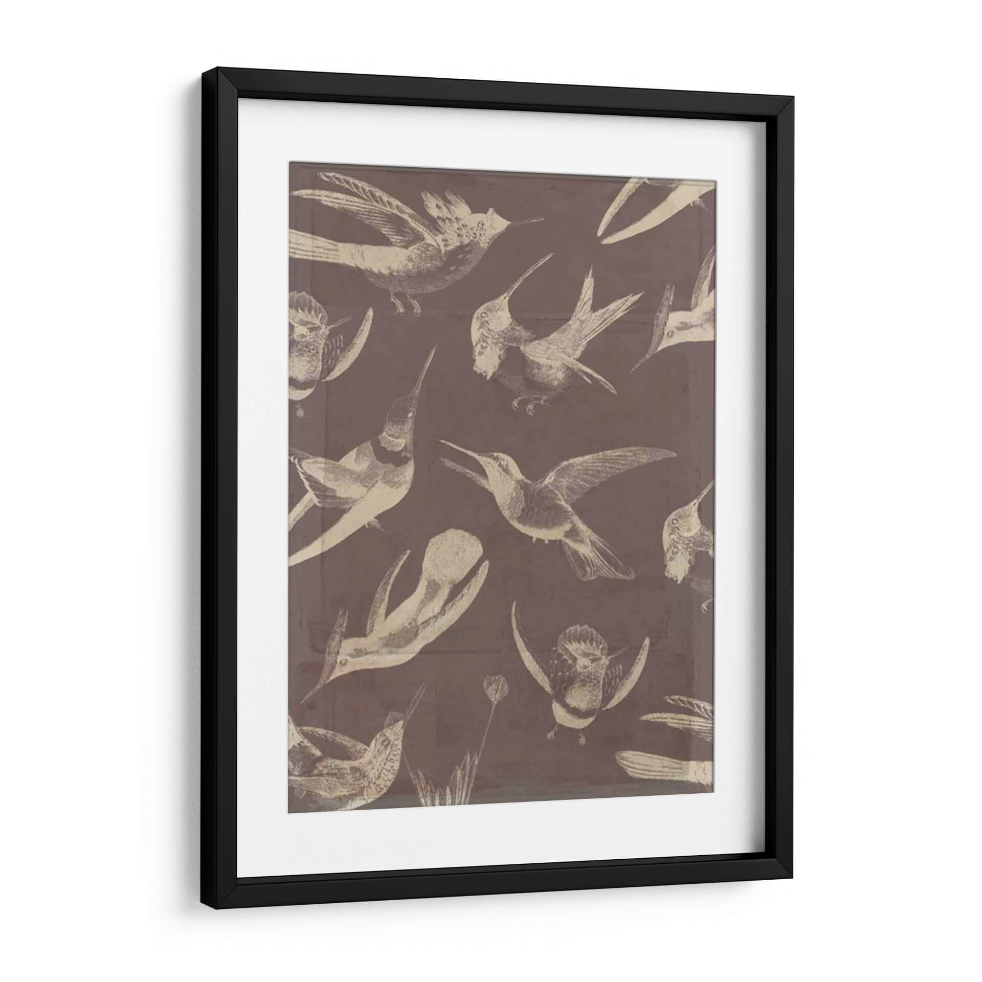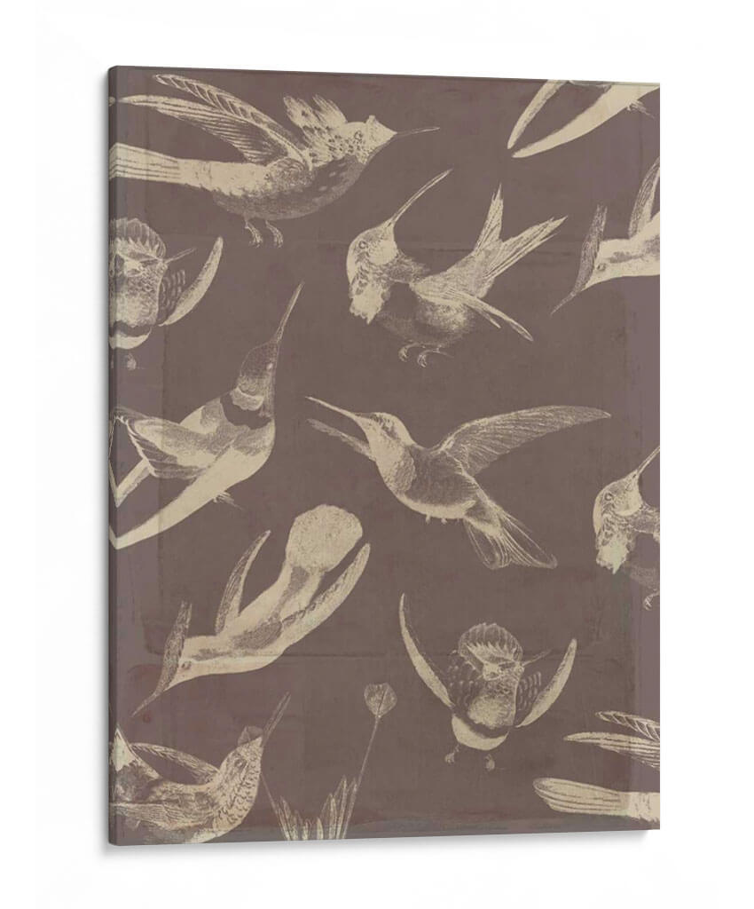 Sumérgete en la delicadeza y el movimiento con este cautivador cuadro decorativo de aves, "Patrón De Aves Iii" de Jennifer Goldberger. La obra presenta una fascinante colección de colibríes y otras aves pequeñas, representados con un estilo que evoca ilustraciones científicas antiguas, pero con un toque contemporáneo. La paleta de colores, dominada por tonos tierra y un sutil contraste entre el fondo sepia y las figuras en beige o blanco roto, crea una atmósfera de serenidad y elegancia atemporal. Cada ave está capturada en diferentes fases de vuelo, lo que aporta una sensación de dinamismo y vida a la composición. Este cuadro es ideal para añadir un toque de naturaleza y sofisticación a cualquier espacio, ya sea un salón moderno, una oficina tranquila o un dormitorio acogedor. Su diseño versátil permite integrarlo fácilmente en diversas decoraciones, desde la más clásica hasta la vanguardista. Deja que la gracia de estas aves llene tu hogar de inspiración y belleza.