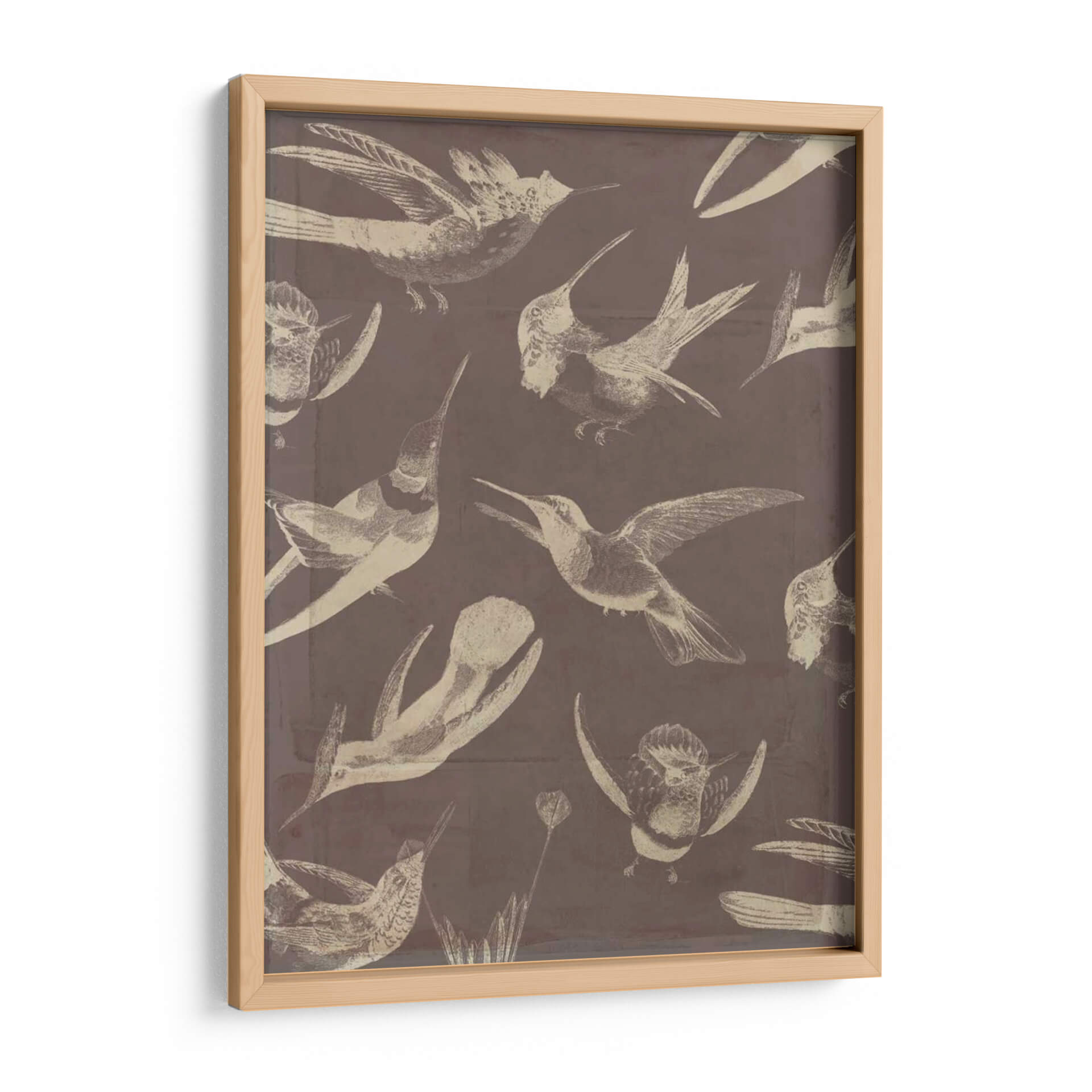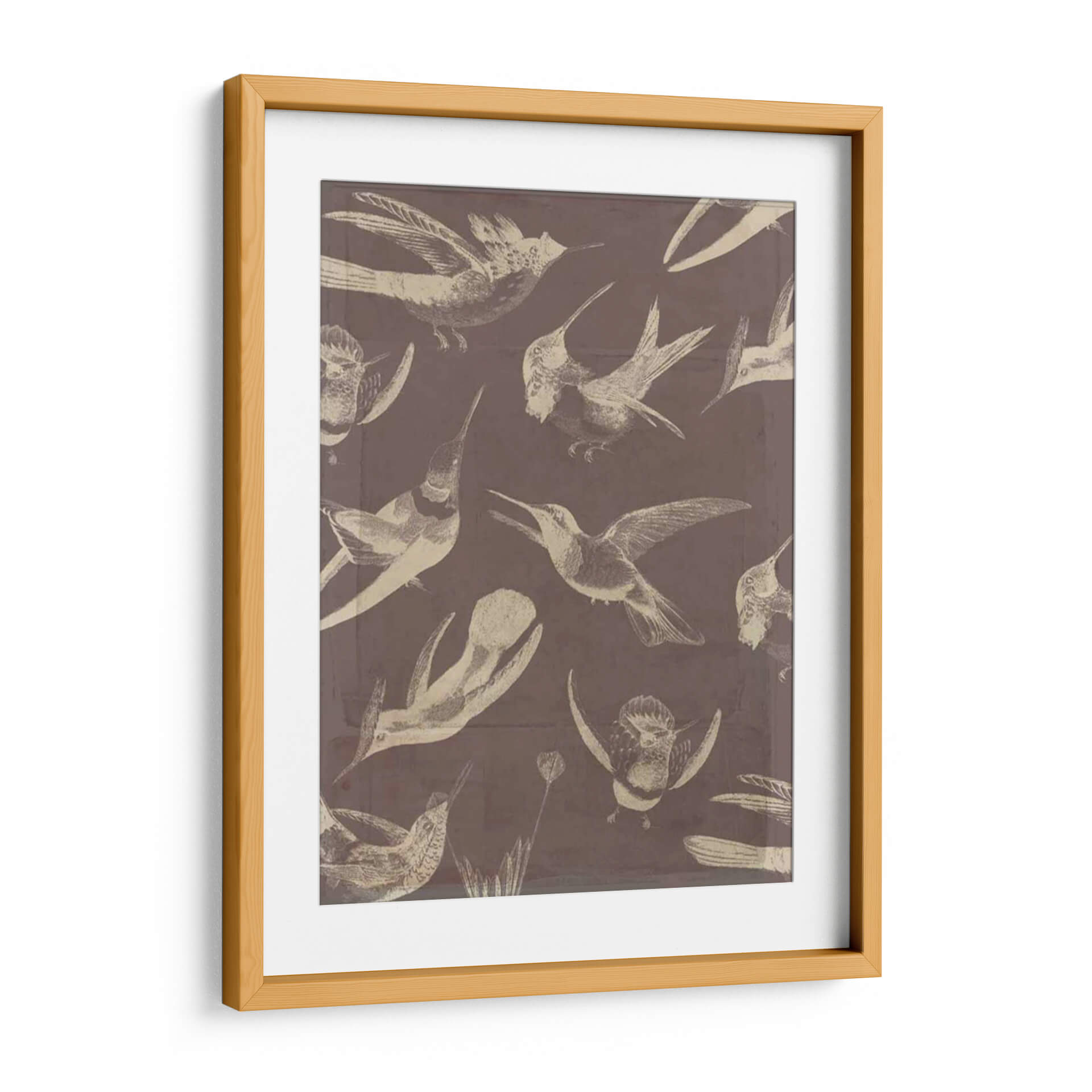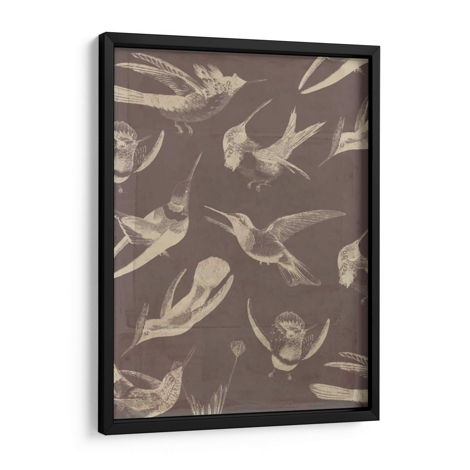 Sumérgete en la delicadeza y el movimiento con este cautivador cuadro decorativo de aves, "Patrón De Aves Iii" de Jennifer Goldberger. La obra presenta una fascinante colección de colibríes y otras aves pequeñas, representados con un estilo que evoca ilustraciones científicas antiguas, pero con un toque contemporáneo. La paleta de colores, dominada por tonos tierra y un sutil contraste entre el fondo sepia y las figuras en beige o blanco roto, crea una atmósfera de serenidad y elegancia atemporal. Cada ave está capturada en diferentes fases de vuelo, lo que aporta una sensación de dinamismo y vida a la composición. Este cuadro es ideal para añadir un toque de naturaleza y sofisticación a cualquier espacio, ya sea un salón moderno, una oficina tranquila o un dormitorio acogedor. Su diseño versátil permite integrarlo fácilmente en diversas decoraciones, desde la más clásica hasta la vanguardista. Deja que la gracia de estas aves llene tu hogar de inspiración y belleza.