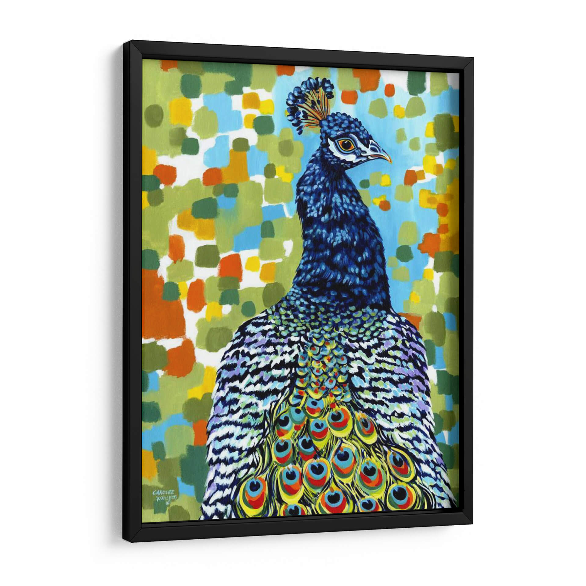 Embellece tu hogar con "Pavo Real Plumado II", una obra de arte vibrante y cautivadora de Carolee Vitaletti. Este cuadro decorativo captura la majestuosidad de un pavo real en todo su esplendor, con un enfoque detallado en sus plumas iridiscentes y un diseño contemporáneo que aporta un toque de color y sofisticación a cualquier estancia. La paleta de colores, rica en azules profundos, verdes esmeralda y acentos de amarillo, naranja y rojo, crea una composición dinámica y alegre que atrae la mirada y estimula los sentidos. El fondo abstracto, con sus bloques de color audaces y texturizados, complementa perfectamente la figura central del pavo real, añadiendo profundidad y un aire moderno a la pieza. Ideal para quienes buscan una decoración de pared única que combine la belleza de la naturaleza con un estilo artístico distintivo, esta obra es perfecta para salones, comedores o incluso oficinas, añadiendo un punto focal lleno de vida y elegancia. Añade un toque de exotismo y arte contemporáneo a tu espacio con este impresionante cuadro decorativo.