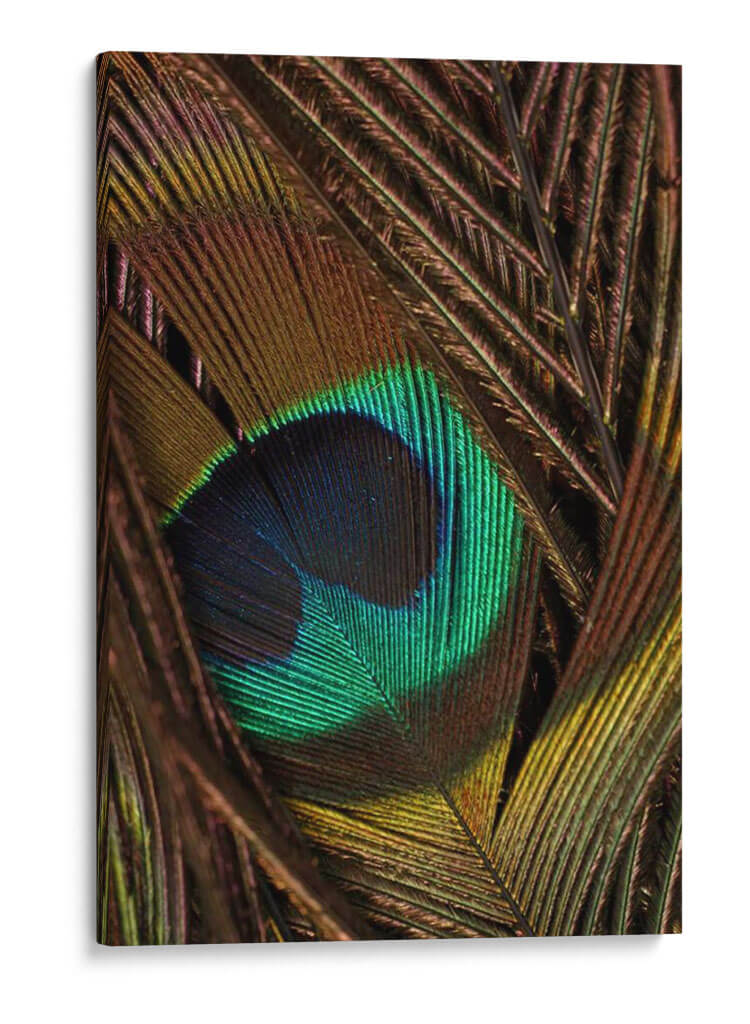Sumérgete en la magnificencia de la naturaleza con "Plumas de Pavo Real II", una obra de arte que captura la esencia etérea de estas icónicas plumas. Este cuadro decorativo es un primer plano detallado que revela la intrincada textura y los vibrantes colores iridiscentes que caracterizan a las plumas de pavo real. Predominan los tonos profundos de verde esmeralda y azul zafiro, que contrastan sutilmente con los marrones cálidos y dorados de las barbas, creando una composición visualmente rica y cautivadora. La luz parece danzar sobre cada filamento, resaltando su delicadeza y su brillo natural. Esta pieza evoca una sensación de elegancia, exotismo y un toque de misterio, perfecta para añadir un acento sofisticado a cualquier estancia. Ideal para salas de estar, dormitorios o estudios que busquen un punto focal orgánico y lleno de color. "Plumas de Pavo Real II" es más que una decoración; es una invitación a contemplar la belleza oculta en los detalles más finos del mundo natural, transformando tu hogar en una galería personal de maravillas.