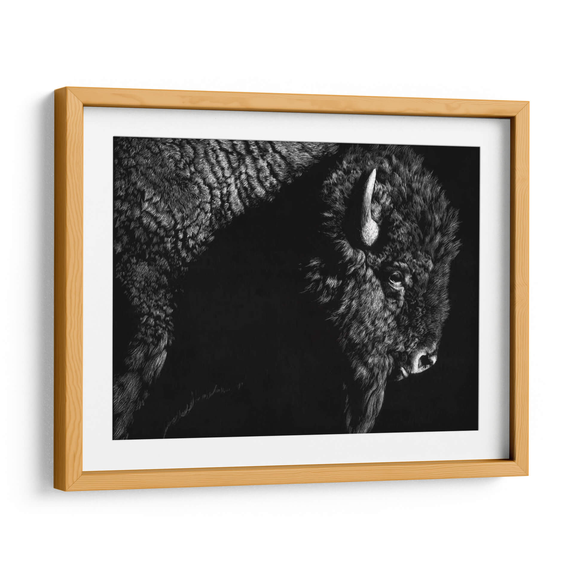 Este cuadro decorativo, "Perdurable II" de Julie T. Chapman, captura la imponente presencia de un bisonte en un retrato cautivador y lleno de fuerza. La obra se distingue por su detallada representación del pelaje y la intensidad de la mirada, logradas a través de un contraste dramático entre luces y sombras que resalta la majestuosidad del animal. La paleta de colores, predominantemente en blanco y negro, confiere a la pieza una atemporalidad y un aire de sofisticación, permitiendo que se integre armónicamente en una amplia variedad de estilos decorativos, desde lo rústico hasta lo contemporáneo. La composición en primer plano, centrada en la cabeza del bisonte, genera una conexión íntima y poderosa con el espectador, evocando sentimientos de resistencia, naturaleza salvaje y la belleza intrínseca de la fauna. Ideal para quienes buscan añadir un toque de carácter y elegancia a su hogar u oficina, este cuadro decorativo es una pieza que invita a la reflexión y admiración. Se convierte en un punto focal impactante en cualquier espacio, transmitiendo una sensación de solidez y perdurabilidad.