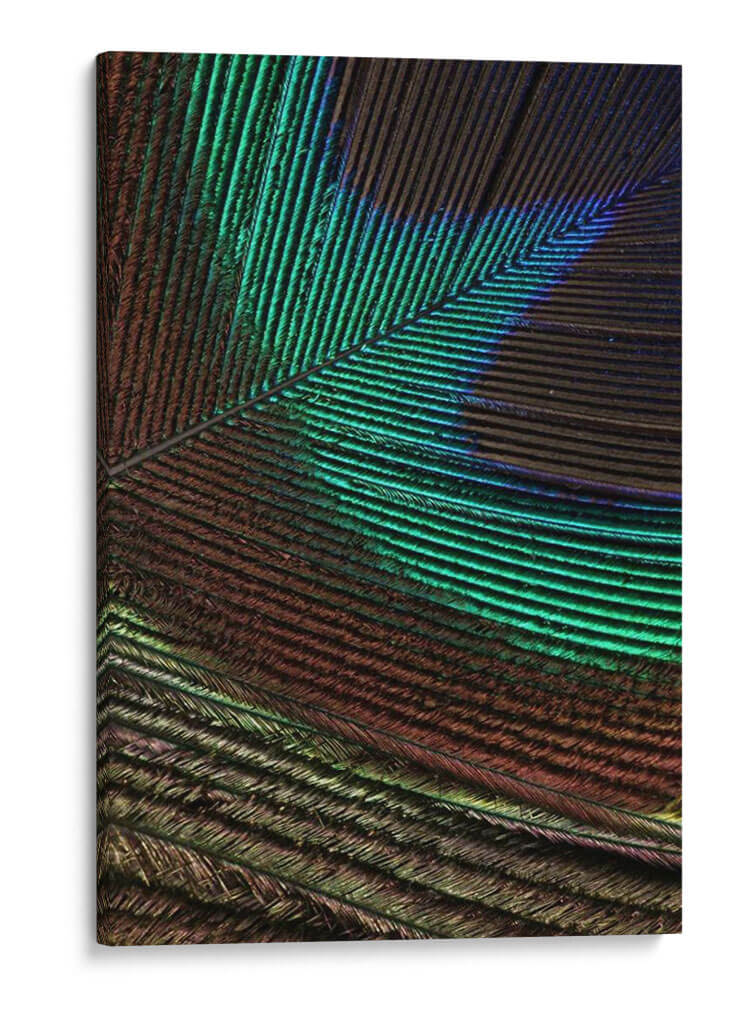 Sumérgete en la deslumbrante belleza de "Plumas de Pavo Real I", una obra de arte que captura la majestuosidad y el detalle intrincado de estas icónicas plumas. Este cuadro decorativo presenta un primer plano macroscópico de una pluma de pavo real, donde las hebras finas se entrelazan para crear texturas ricas y vibrantes. La paleta de colores es un festín visual, con intensos tonos de verde esmeralda y azul turquesa que brillan y cambian con la luz, contrastando con los profundos marrones y ocres que aportan calidez y profundidad. El estilo se inclina hacia lo abstracto y lo orgánico, celebrando la complejidad natural de la forma. La composición, centrada en la diagonal de la pluma, guía la mirada del espectador a través de sus delicados detalles, evocando una sensación de asombro y admiración por la naturaleza. Esta pieza es perfecta para añadir un toque de elegancia exótica y sofisticación a cualquier espacio, ya sea una sala de estar moderna, un dormitorio sereno o una oficina con estilo. El cuadro "Plumas de Pavo Real I" no es solo una decoración, sino una ventana a la intrincada maravilla del mundo natural, ofreciendo una dosis diaria de inspiración y lujo visual para tu hogar.