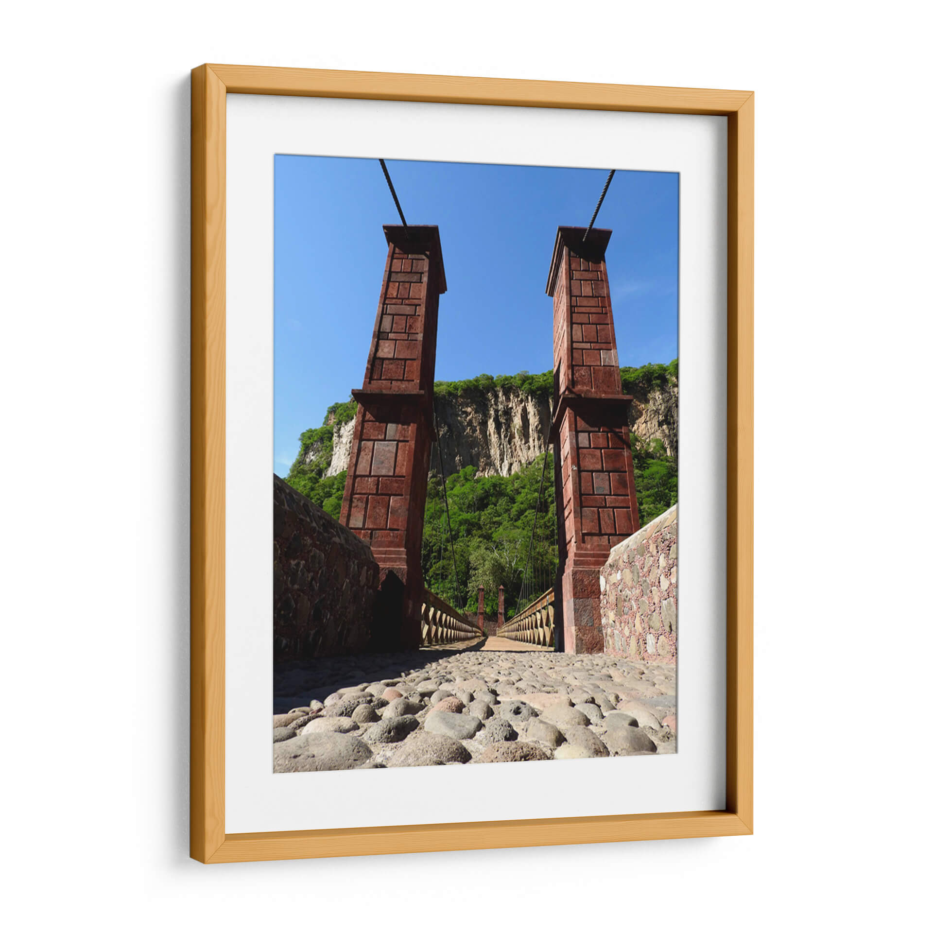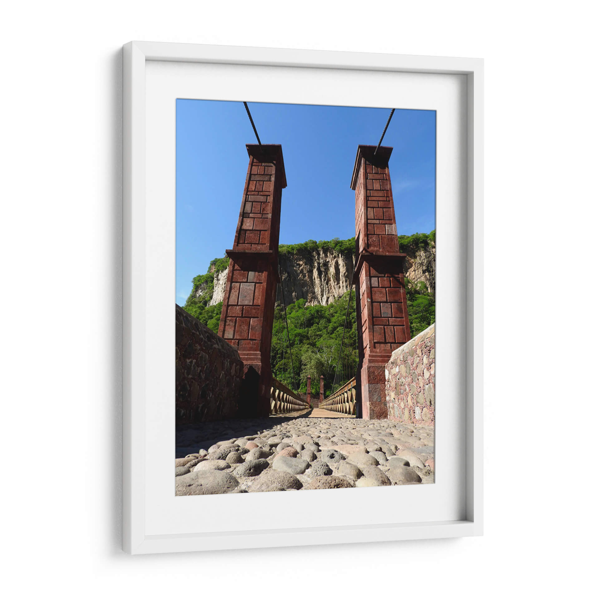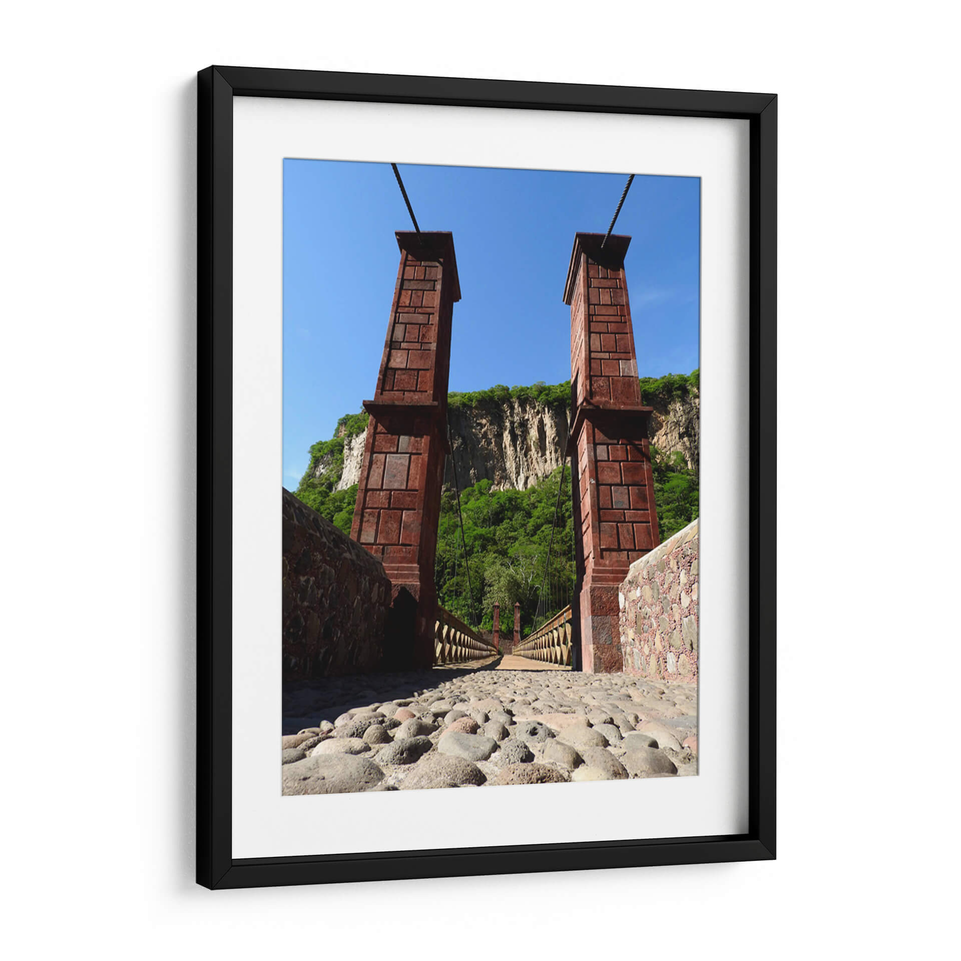 Sumérgete en la majestuosidad de 'Puente', una obra de arte de Hugo Segura que captura la esencia de la aventura y la conexión. Este cuadro decorativo te transporta a un paisaje imponente donde la arquitectura rústica de un puente de suspensión se alza contra un cañón verde vibrante bajo un cielo azul radiante. La perspectiva baja y el camino empedrado invitan a un viaje visual, invitando al espectador a cruzar hacia lo desconocido. Los pilares de ladrillo y piedra, con sus tonos cálidos y terrosos, contrastan maravillosamente con el verdor exuberante de la vegetación que rodea el cañón y el azul intenso del firmamento. La composición, que evoca una sensación de profundidad y escala, es perfecta para añadir un toque de grandeza y exploración a cualquier espacio. Ideal para salones, estudios o recibidores, este lienzo es una invitación a la contemplación y al descubrimiento, añadiendo carácter y una atmósfera de serenidad aventurera a tu hogar u oficina. Descubre la belleza de la ingeniería humana en armonía con la naturaleza y deja que este cuadro decorativo sea el punto focal de tu decoración.