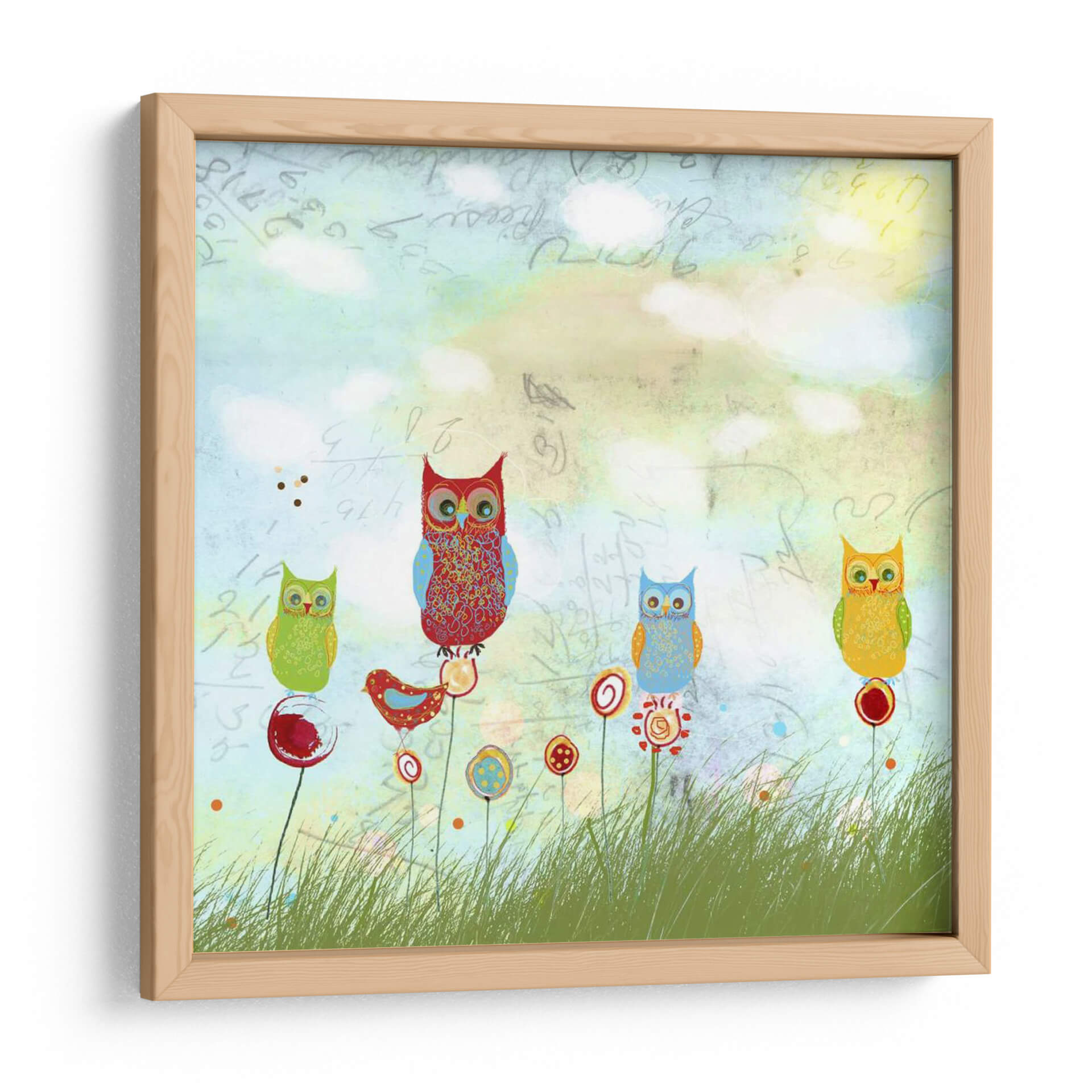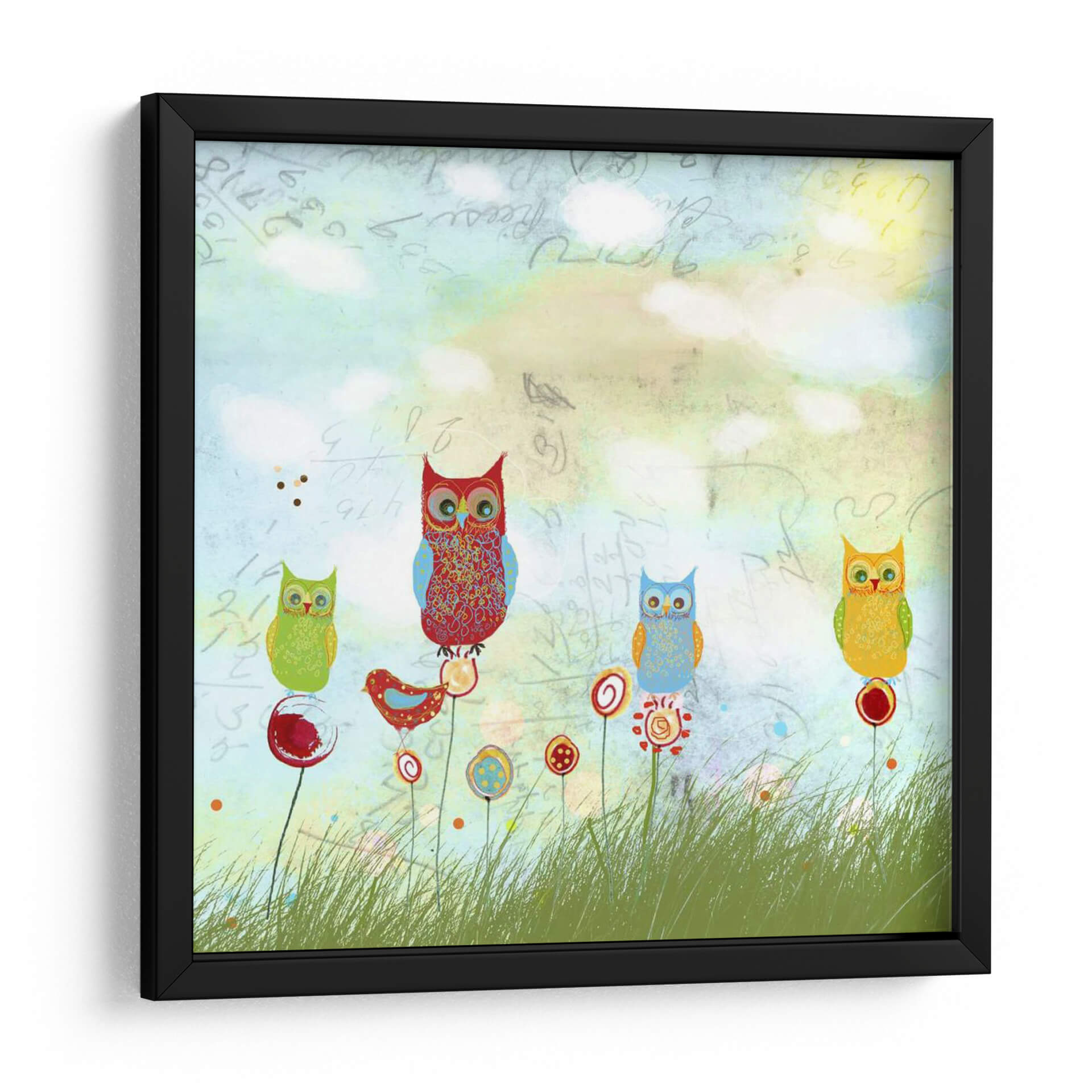 Adéntrate en un mundo de fantasía y encanto con "Tierra de Búho", una obra de arte digital que evoca la magia de la naturaleza y la imaginación. Este cautivador cuadro decorativo presenta una hilera de búhos de vibrantes colores y patrones intrincados, cada uno con una personalidad única, posados sobre capullos florales de diseño lúdico. La escena se desarrolla en un prado exuberante, con pinceladas de hierba verde que aportan textura y profundidad, mientras que el cielo de fondo, salpicado de nubes etéreas y sutiles anotaciones manuscritas, añade un toque de ensueño y misterio. La paleta de colores, dominada por tonos pastel suaves y toques brillantes, crea una atmósfera alegre y serena, ideal para cualquier espacio que necesite una dosis de calidez y fantasía. El estilo artístico combina elementos ilustrativos y abstractos, resultando en una pieza única que estimula la conversación y la admiración. "Tierra de Búho" es perfecto para añadir un toque de color y originalidad a dormitorios infantiles, salas de estar modernas o incluso oficinas que buscan un ambiente más inspirador y acogedor. Transforma tu hogar en un refugio de creatividad con este encantador cuadro decorativo.