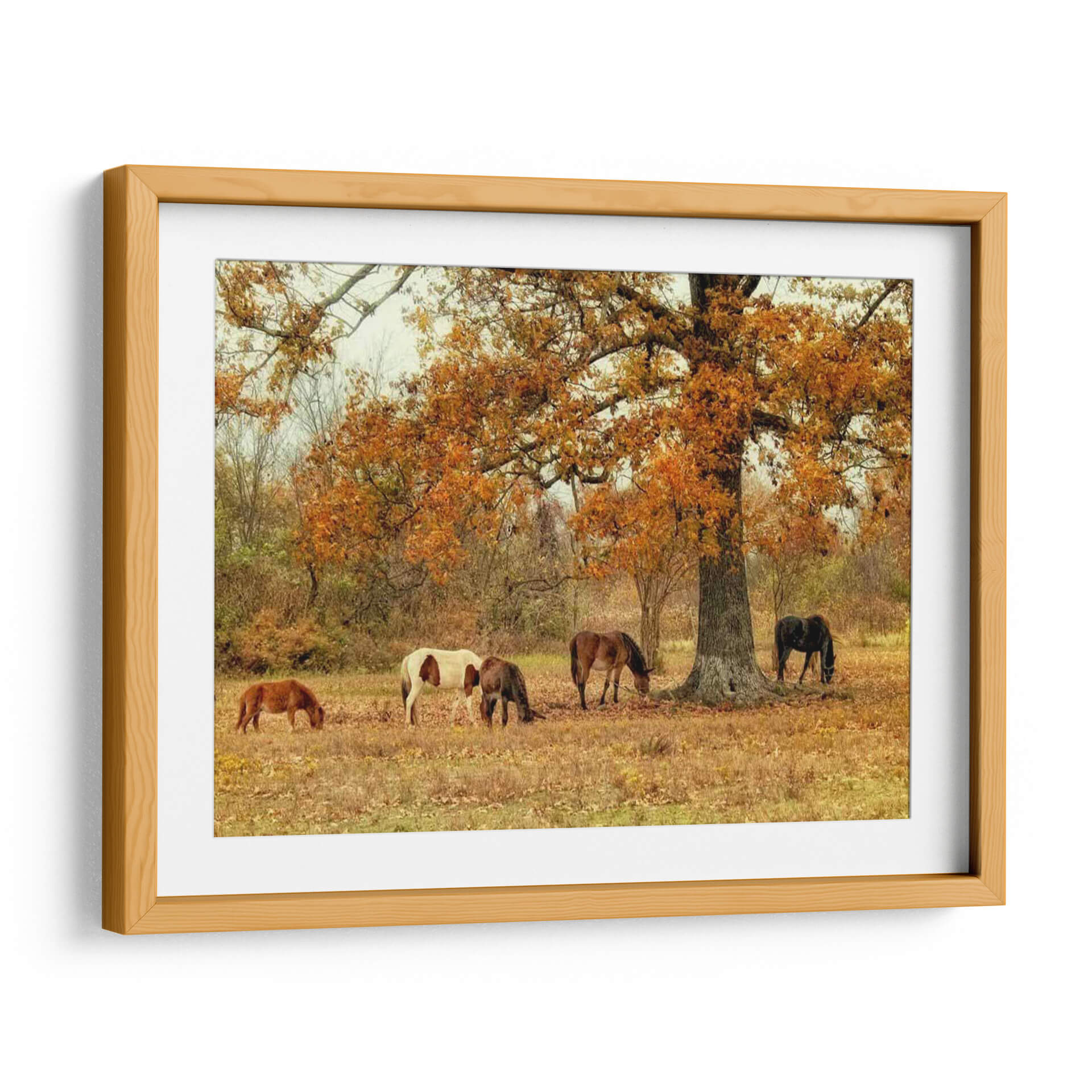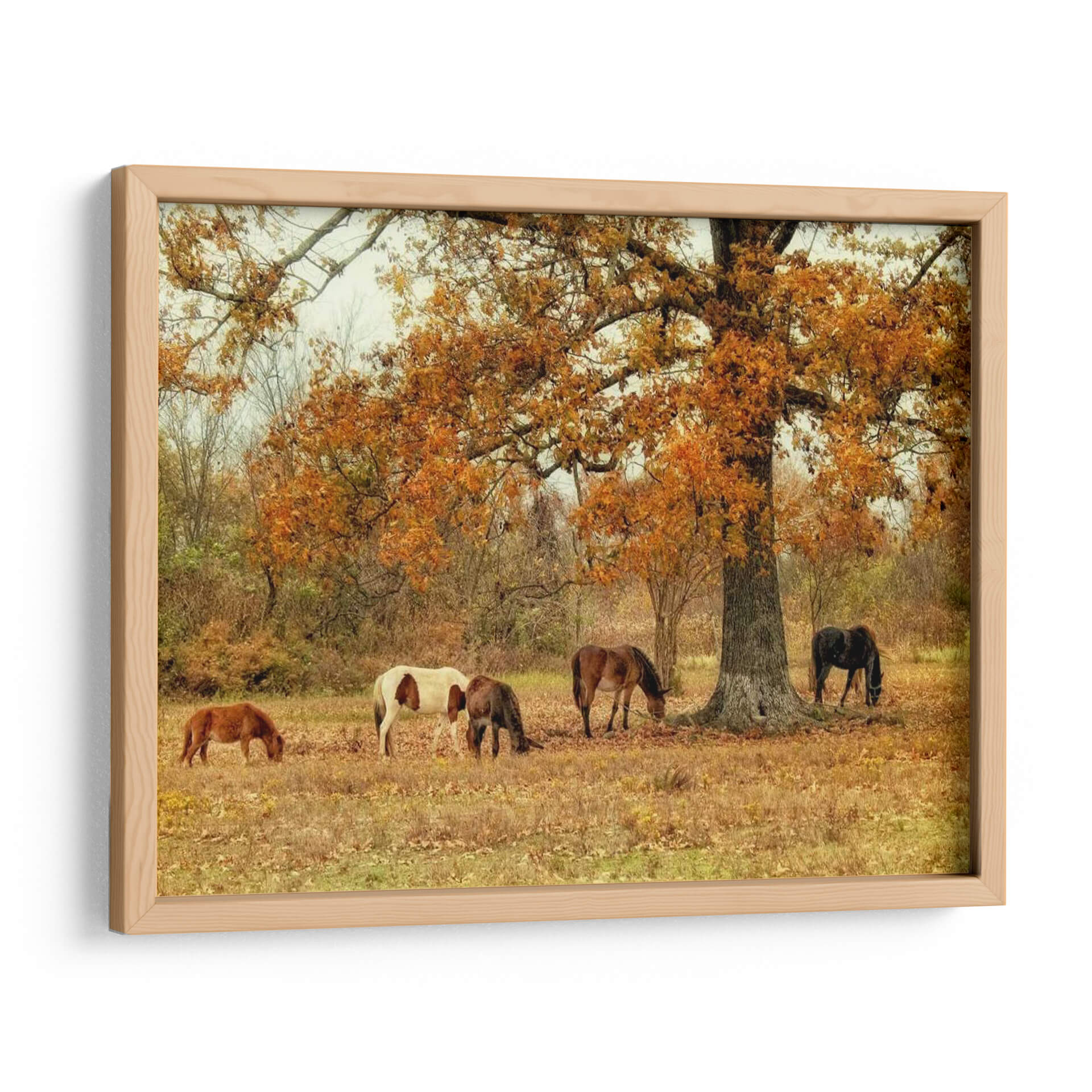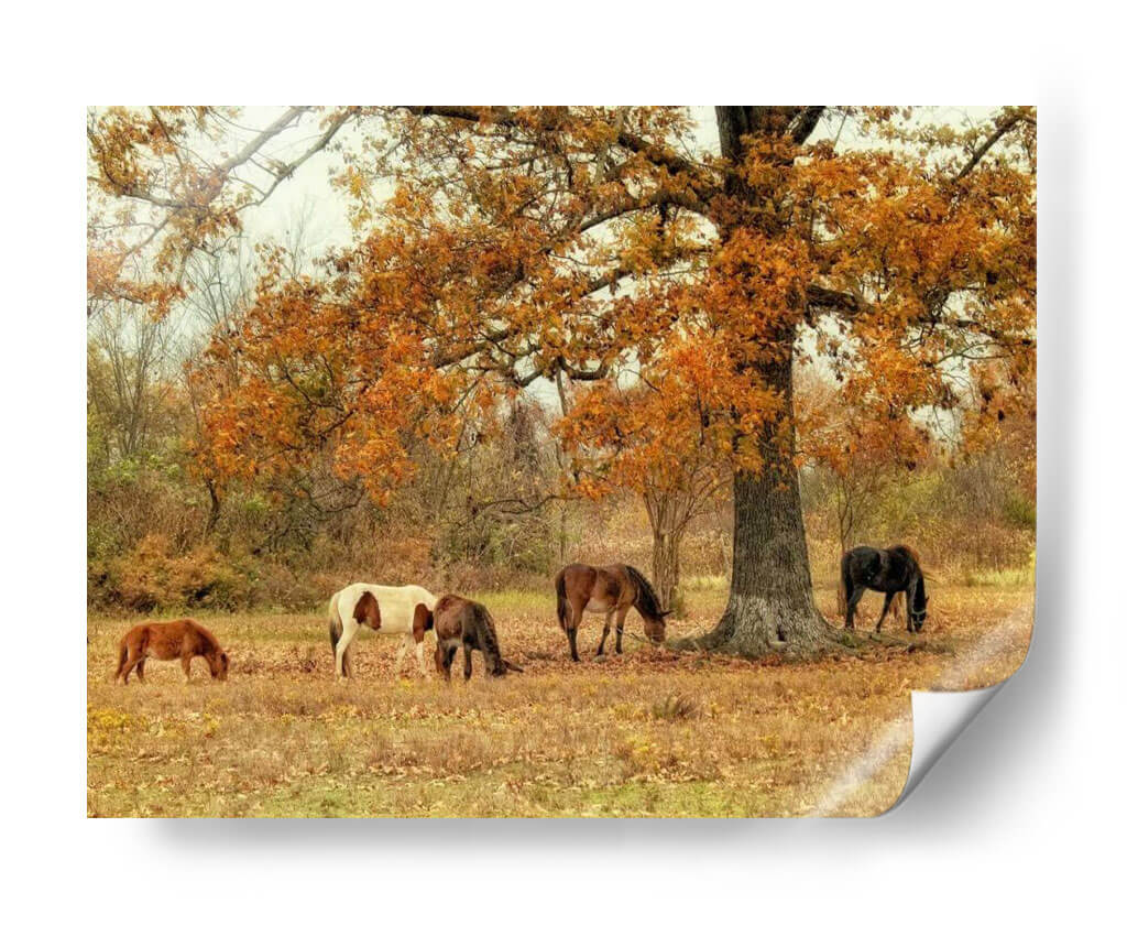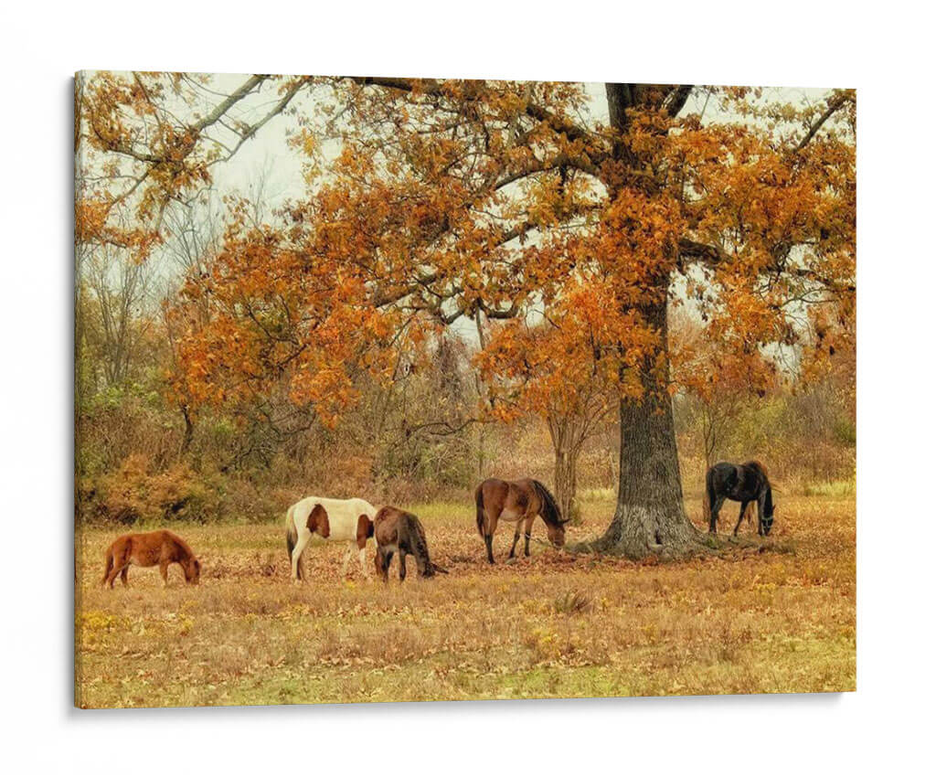 Sumérgete en la serena belleza de la naturaleza con "Tranquilizando", una obra de arte que captura la esencia de un apacible atardecer otoñal. El cuadro decorativo presenta un majestuoso árbol de roble con follaje en vibrantes tonos naranjas y dorados, proyectando una sombra acogedora sobre un prado cubierto de hierba seca. En este idílico escenario, varios caballos pastan pacíficamente, creando una escena de armonía y conexión con el entorno natural. La paleta de colores cálidos y terrosos evoca una sensación de calma y nostalgia, perfecta para añadir un toque de paz a cualquier espacio. La composición, con el árbol como punto focal y los caballos distribuidos de manera natural, invita a la contemplación y al disfrute de la tranquilidad del campo. Ideal para salones, dormitorios o estudios, este cuadro decorativo es una ventana a un momento de pura serenidad. Deja que la calma de "Tranquilizando" inunde tu hogar y transforme tu ambiente en un refugio de paz y belleza natural.