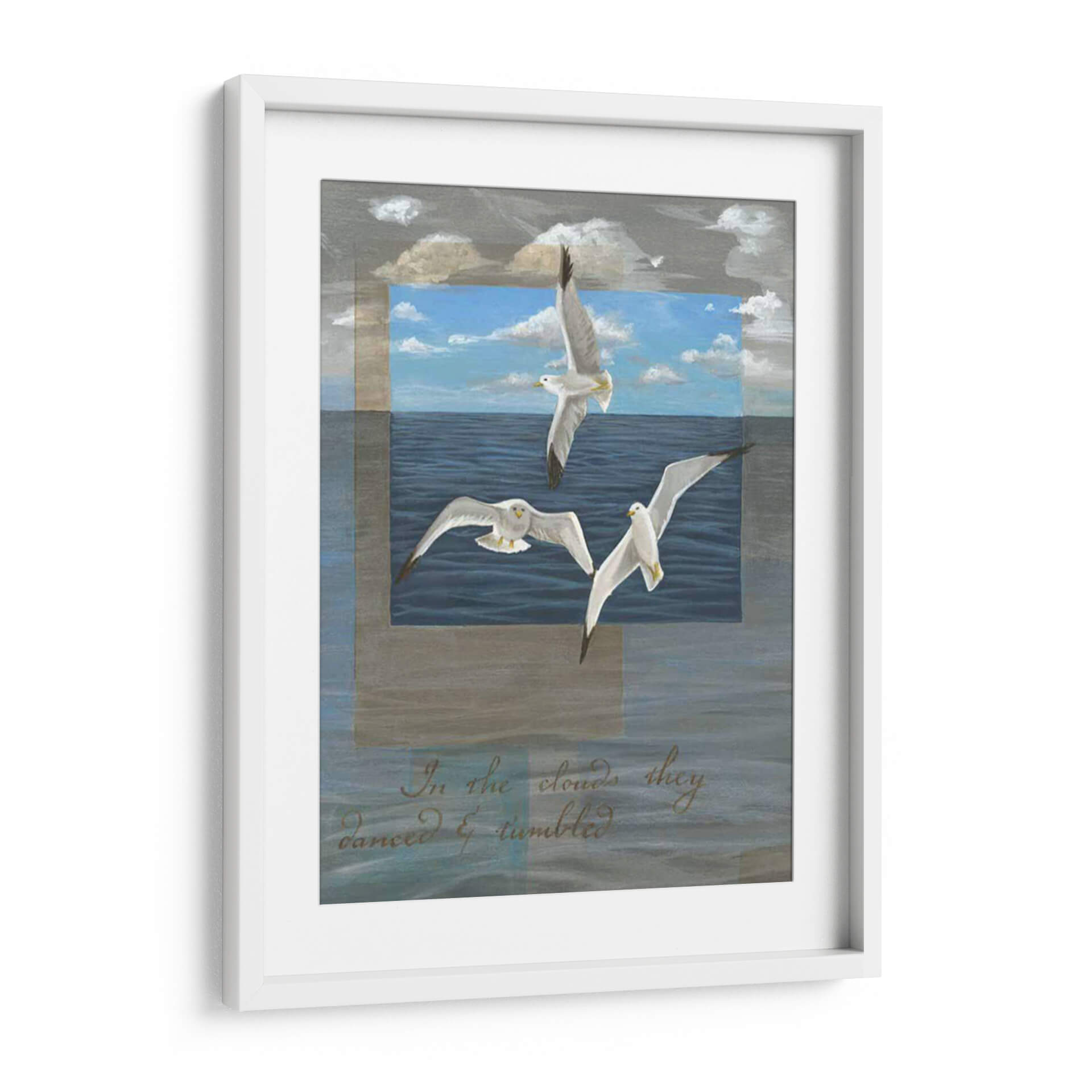 Captura la esencia de la libertad y la serenidad con "Tres Gaviotas Blancas II", una obra de arte que evoca la vastedad del océano y la gracia del vuelo. Esta pieza presenta tres gaviotas blancas en pleno movimiento, suspendidas sobre un mar azul profundo y tranquilo, con un cielo nublado que añade profundidad y textura al fondo. Los tonos azules y grises predominantes crean una atmósfera de calma y contemplación, perfecta para añadir un toque de paz a cualquier espacio. El estilo artístico, que combina elementos figurativos con una pincelada expresiva, permite que la obra sea tanto detallada como evocadora. La composición, con las aves formando un triángulo dinámico, guía la mirada del espectador a través de la escena, invitando a la reflexión sobre la naturaleza y la libertad. Este cuadro decorativo es ideal para salones, dormitorios o estudios, aportando un aire de sofisticación y tranquilidad. Las gaviotas, símbolos de libertad y aventura, añaden un toque inspirador, mientras que los matices del mar invitan a la relajación. Una elección perfecta para quienes buscan una decoración de pared que combine belleza estética con un significado profundo y emotivo, aportando un soplo de aire fresco y calma a tu hogar u oficina. Encuentra en esta obra un refugio visual que te transportará a la costa con cada mirada.
