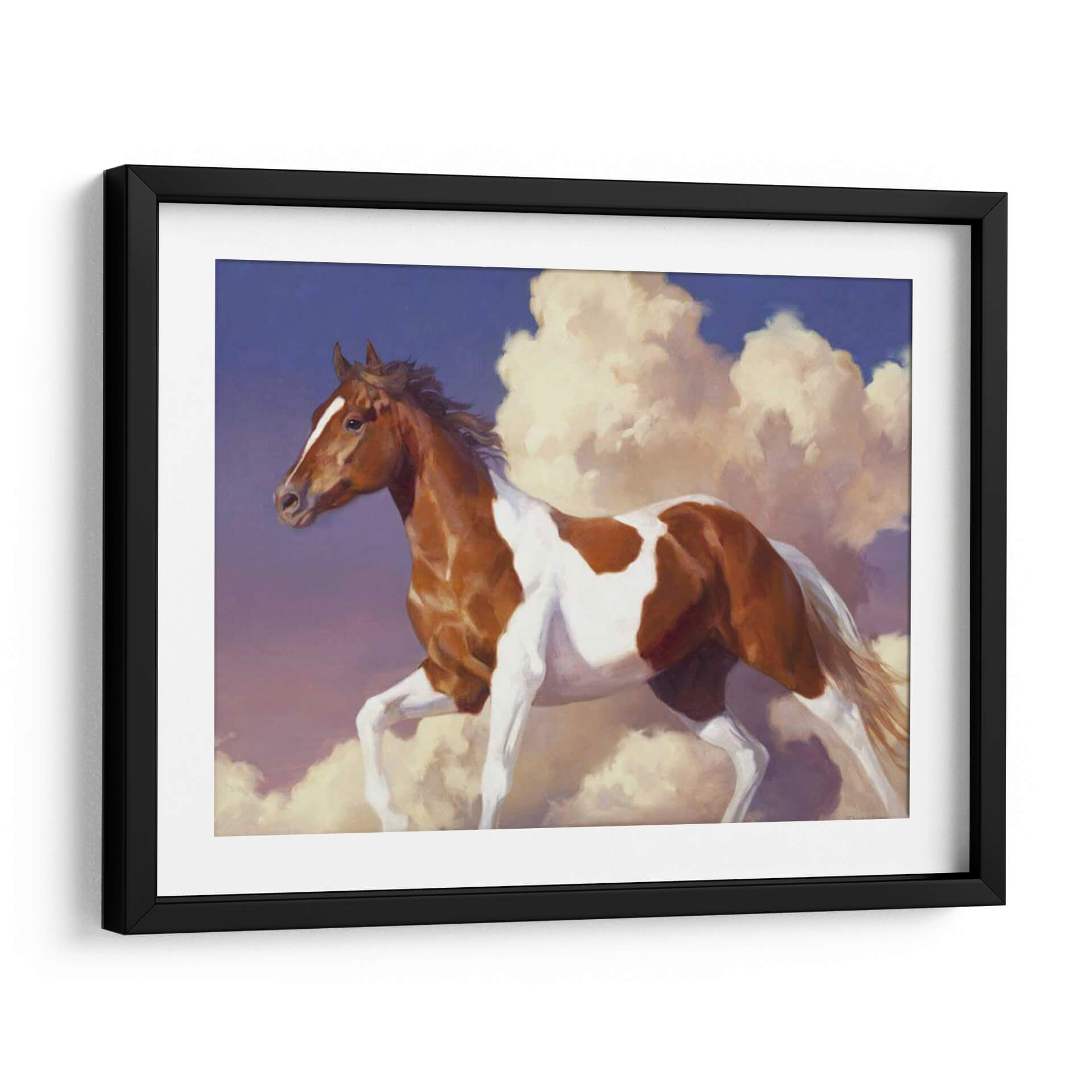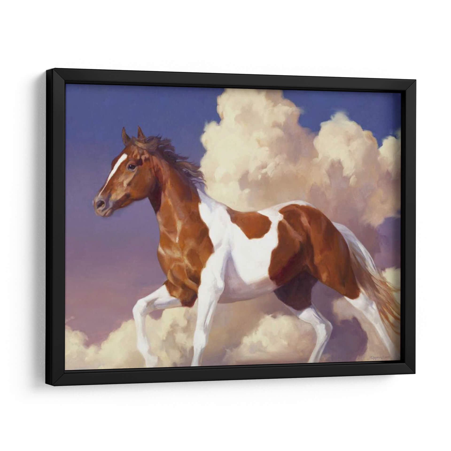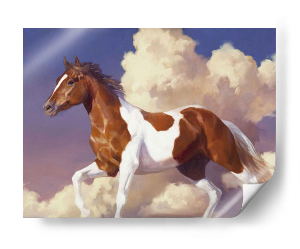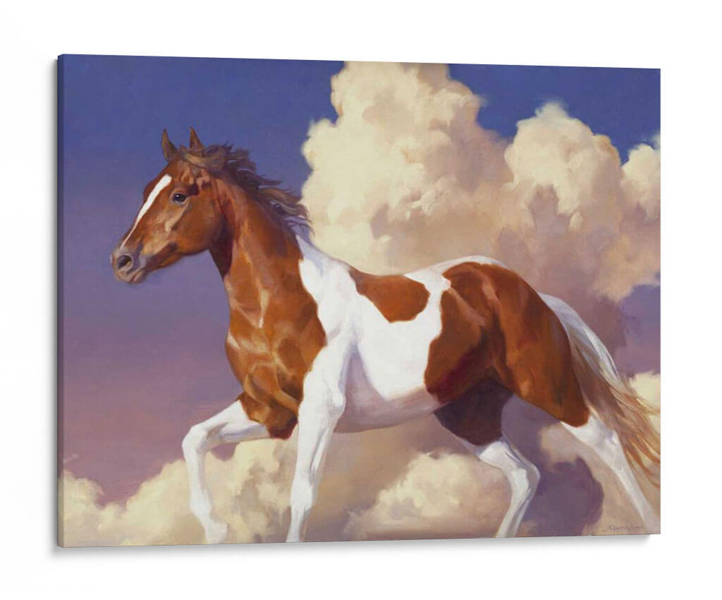 Sumérgete en la majestuosidad y la libertad con "Vuelo Sin Alas", una obra de arte cautivadora de Julie T. Chapman. Este impresionante cuadro decorativo captura la esencia de un corcel pinto en pleno movimiento, con su pelaje cobrizo y blanco resaltando contra un cielo vibrante y nubes etéreas. La composición dinámica y la paleta de colores, que combina azules profundos, tonos tierra y blancos luminosos, crean una atmósfera de energía y gracia. El estilo realista con toques expresivos de Chapman da vida a la fuerza y la belleza del animal, invitando a la contemplación de su espíritu indomable. Ideal para quienes buscan infundir vitalidad y un toque de naturaleza salvaje en sus espacios, este cuadro es perfecto para salones, estudios u oficinas, transformando cualquier pared en una ventana a la libertad. Añade una pieza de arte que inspire movimiento y pasión a tu decoración.