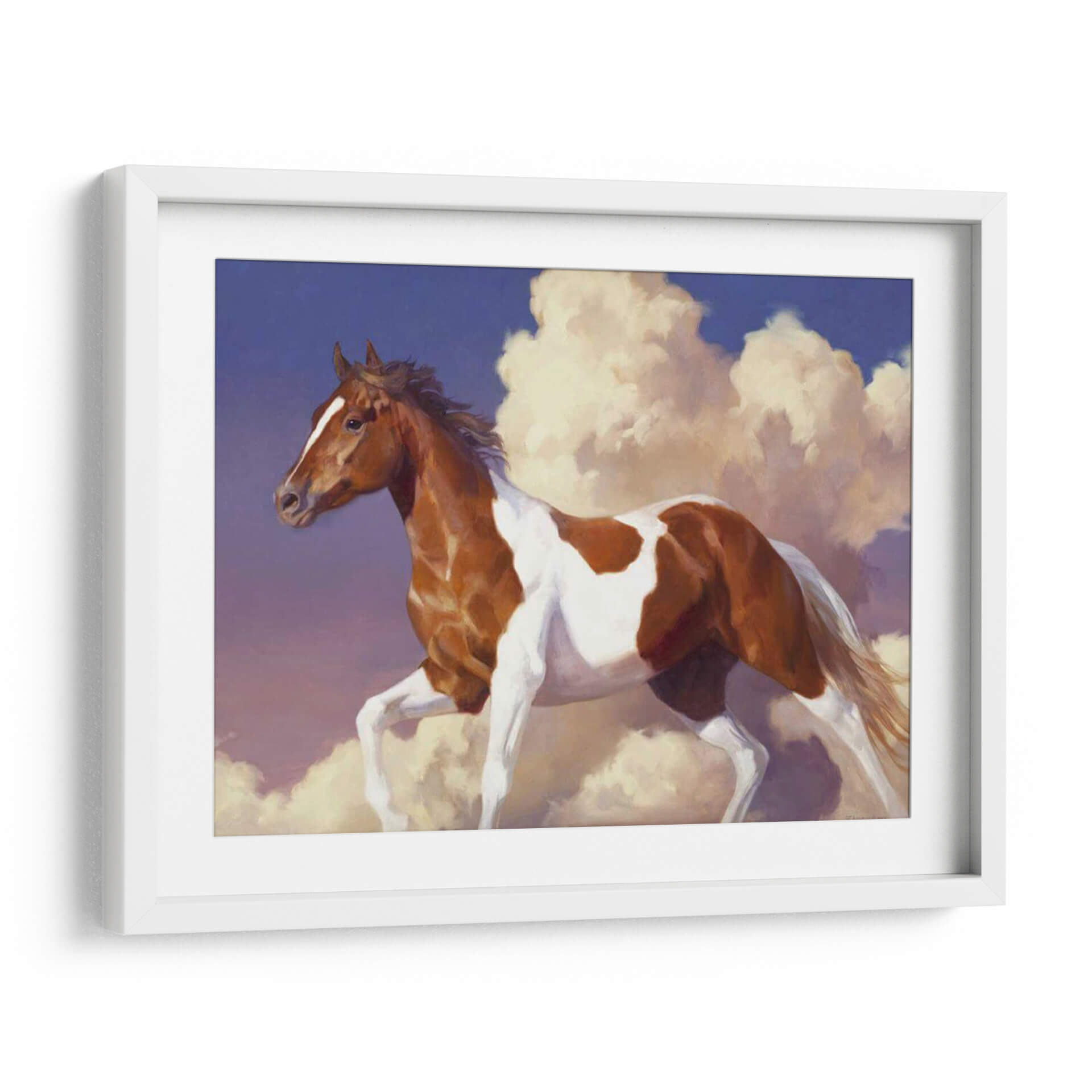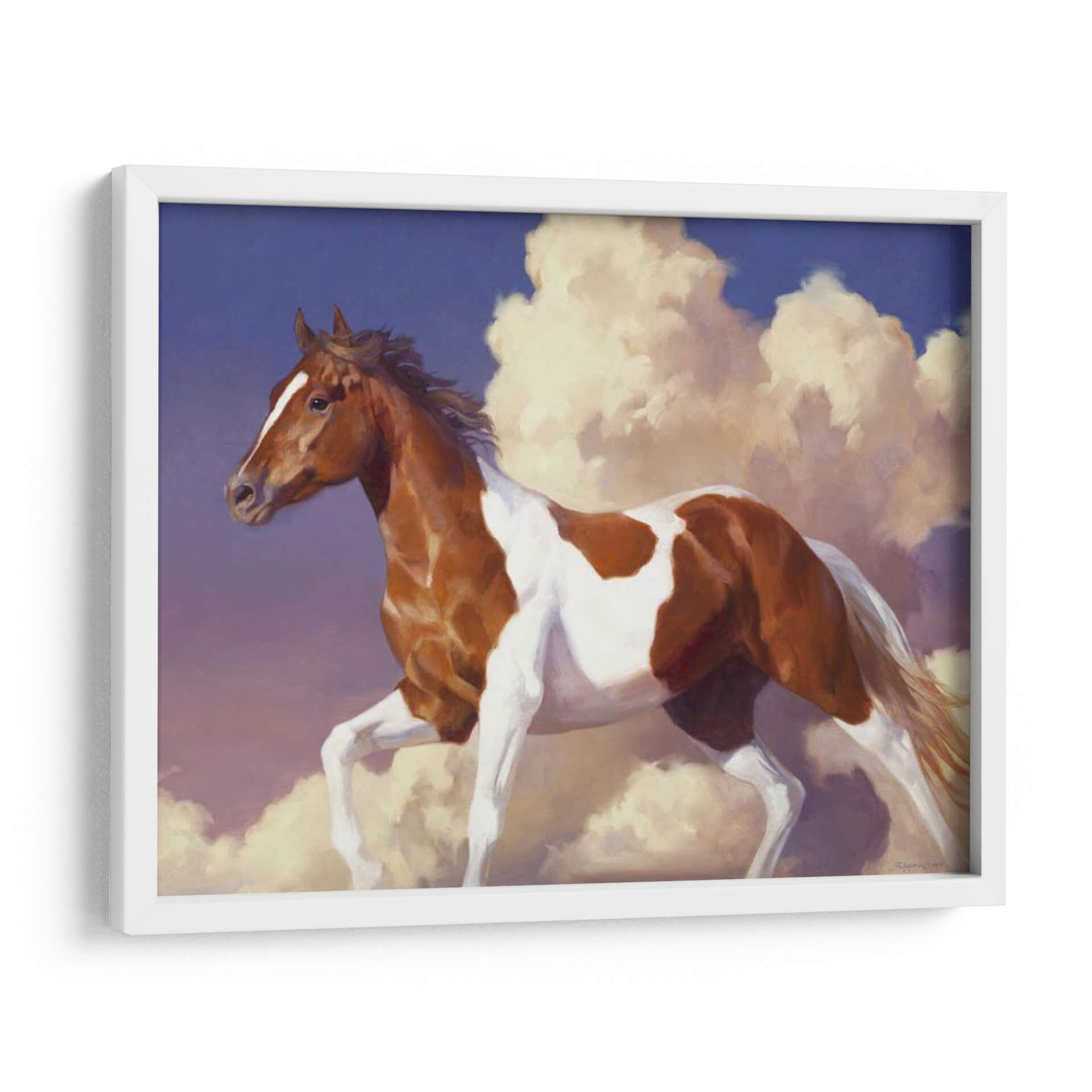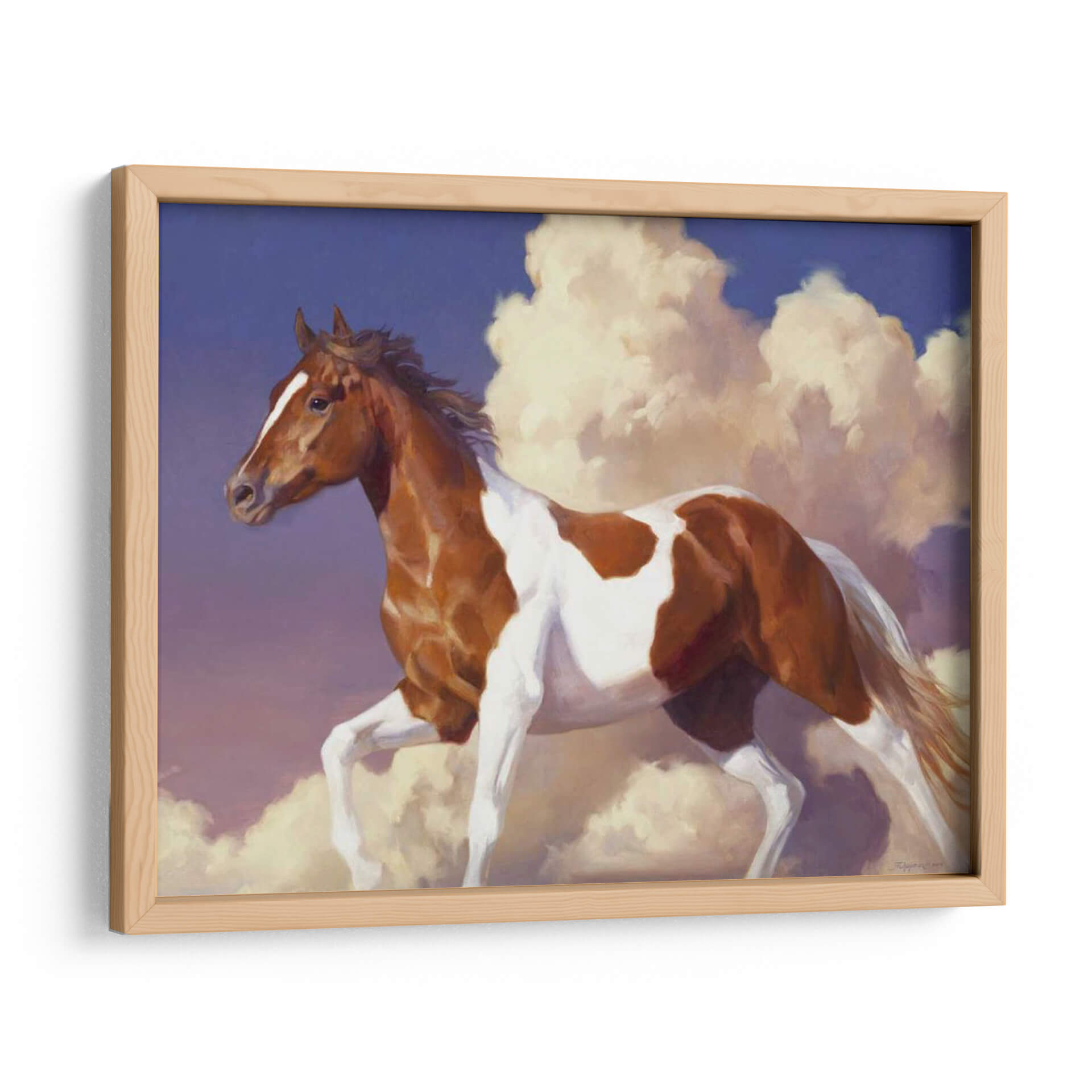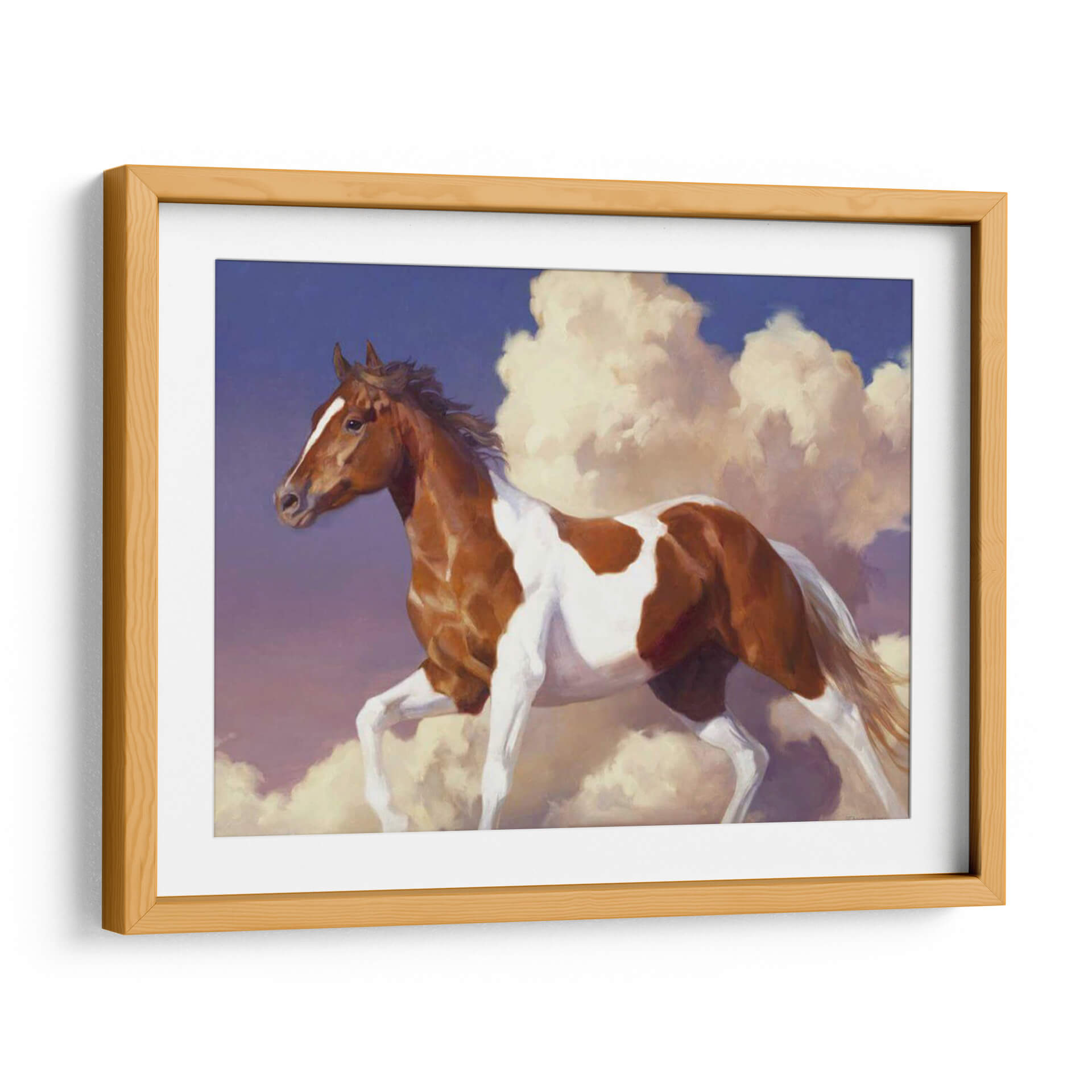 Sumérgete en la majestuosidad y la libertad con "Vuelo Sin Alas", una obra de arte cautivadora de Julie T. Chapman. Este impresionante cuadro decorativo captura la esencia de un corcel pinto en pleno movimiento, con su pelaje cobrizo y blanco resaltando contra un cielo vibrante y nubes etéreas. La composición dinámica y la paleta de colores, que combina azules profundos, tonos tierra y blancos luminosos, crean una atmósfera de energía y gracia. El estilo realista con toques expresivos de Chapman da vida a la fuerza y la belleza del animal, invitando a la contemplación de su espíritu indomable. Ideal para quienes buscan infundir vitalidad y un toque de naturaleza salvaje en sus espacios, este cuadro es perfecto para salones, estudios u oficinas, transformando cualquier pared en una ventana a la libertad. Añade una pieza de arte que inspire movimiento y pasión a tu decoración.