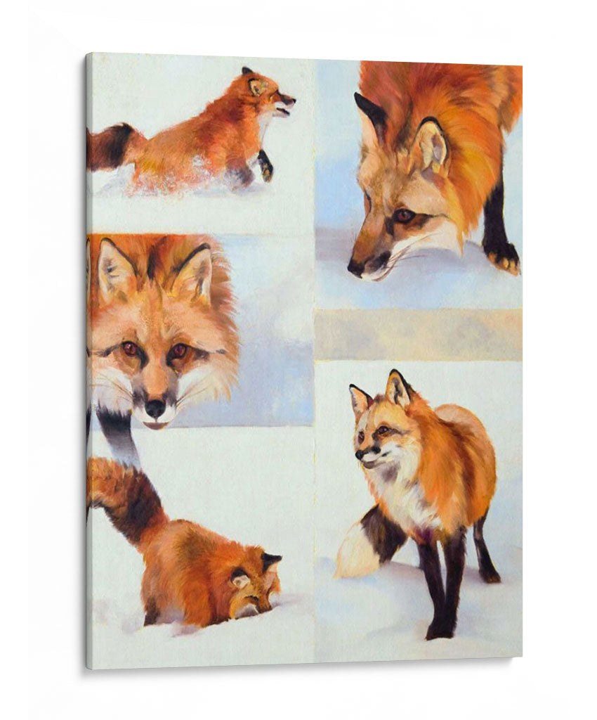 Capture la esencia del ingenio y la gracia de la naturaleza con el cuadro decorativo "Vulpes V" de Julie T. Chapman. Esta cautivadora obra de arte presenta una composición dividida en paneles que muestra a un zorro rojo en diversas actitudes sobre un fondo nevado. Cada panel revela un detalle distinto de este fascinante animal: su silueta ágil en movimiento, la intensa mirada de su rostro, y su cuerpo peludo y vibrante contrastando con la blancura serena de la nieve. La paleta de colores, dominada por los cálidos tonos anaranjados y rojizos del zorro y el frío y puro blanco de la nieve, crea un contraste visual impactante y evoca una atmósfera de vitalidad salvaje y al mismo tiempo de paz invernal. El estilo pictórico, con pinceladas que sugieren textura y movimiento, añade profundidad y realismo a la escena. "Vulpes V" es una pieza ideal para quienes aprecian la fauna y buscan añadir un toque de carácter y elegancia natural a su hogar u oficina. Su versatilidad permite integrarla en decoraciones rústicas, modernas o minimalistas, aportando un punto de interés único y una conexión con el mundo natural. Este cuadro decorativo no solo embellece un espacio, sino que también cuenta una historia de astucia, resiliencia y la belleza indómita de la vida salvaje en su hábitat invernal.