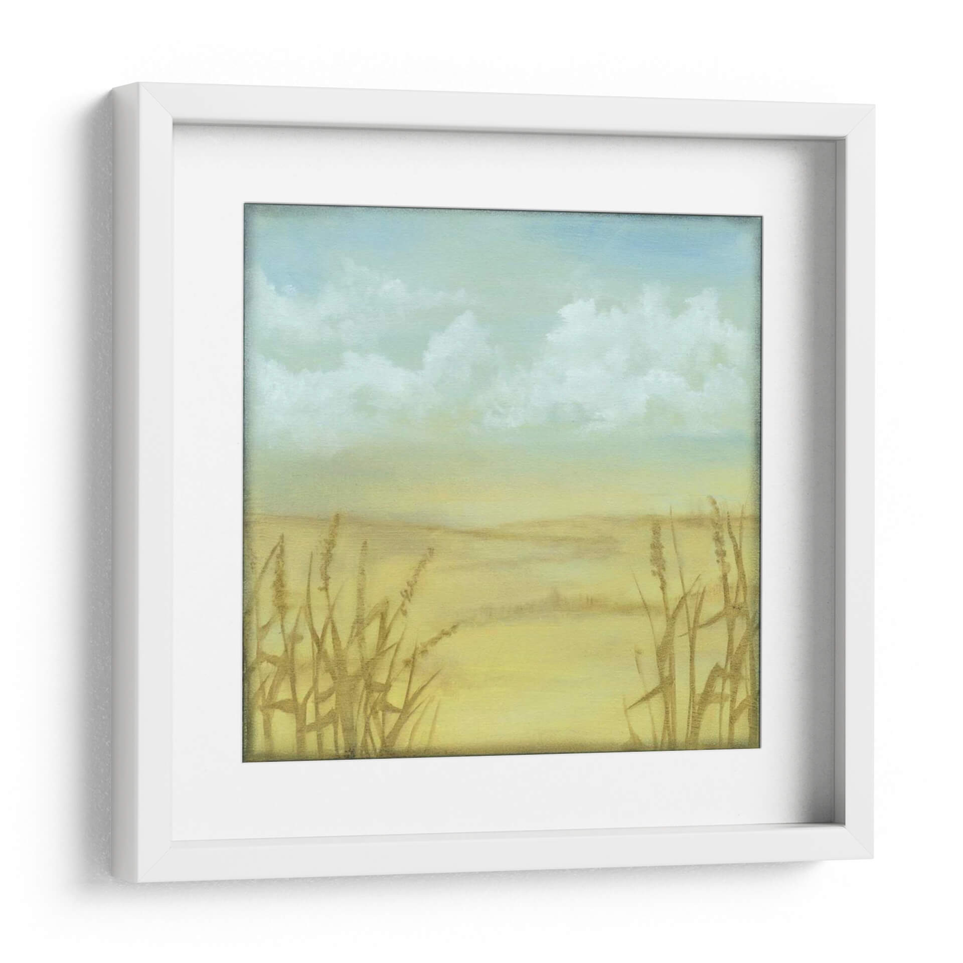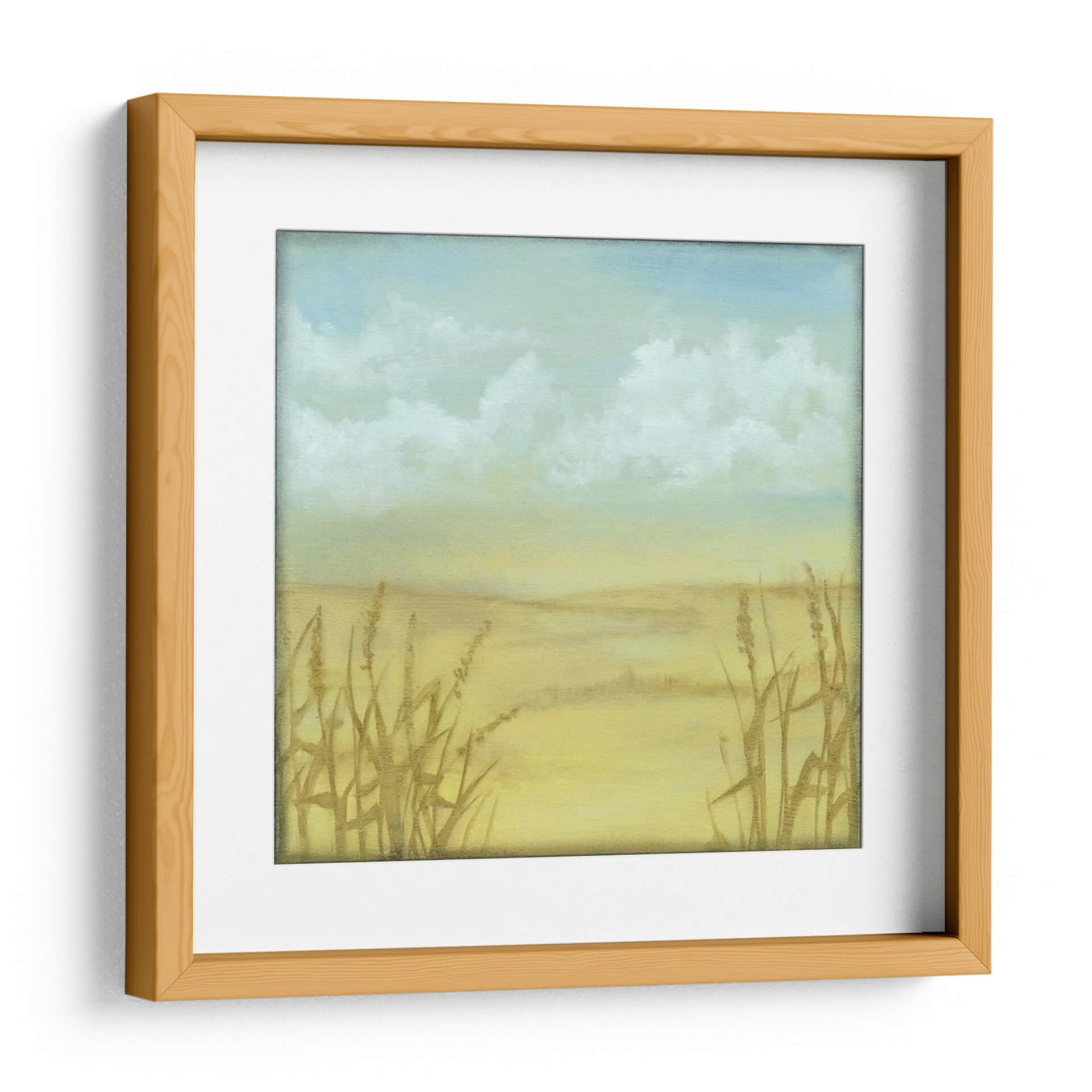 Sumérgete en la serena belleza de "A Través De La Hierba De Trigo II", una obra de arte cautivadora que evoca la tranquilidad de un campo dorado bajo un cielo expansivo. El cuadro decorativo presenta una paleta de colores suaves y terrosos, dominada por tonos cálidos de amarillo y ocre que representan la hierba madura, contrastando suavemente con el cielo azul pálido salpicado de nubes etéreas. La composición, con la hierba de trigo en primer plano actuando como un marco natural, dirige la mirada hacia un paisaje de colinas ondulantes y un horizonte difuso, creando una sensación de profundidad y paz. La pincelada sutil y la atmósfera onírica de esta pieza la convierten en una adición perfecta para cualquier espacio que busque transmitir calma y conexión con la naturaleza. Ideal para salones, dormitorios o estudios, este cuadro decorativo invita a la contemplación y añade un toque de sofisticación natural a tu decoración.