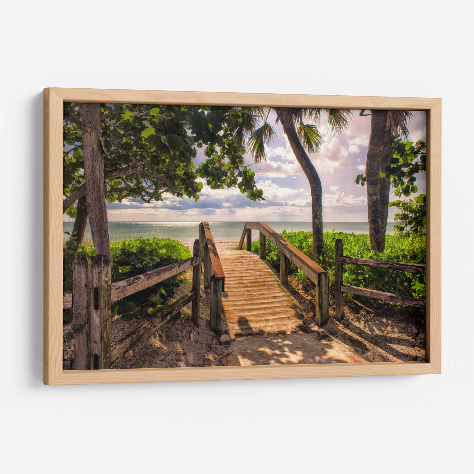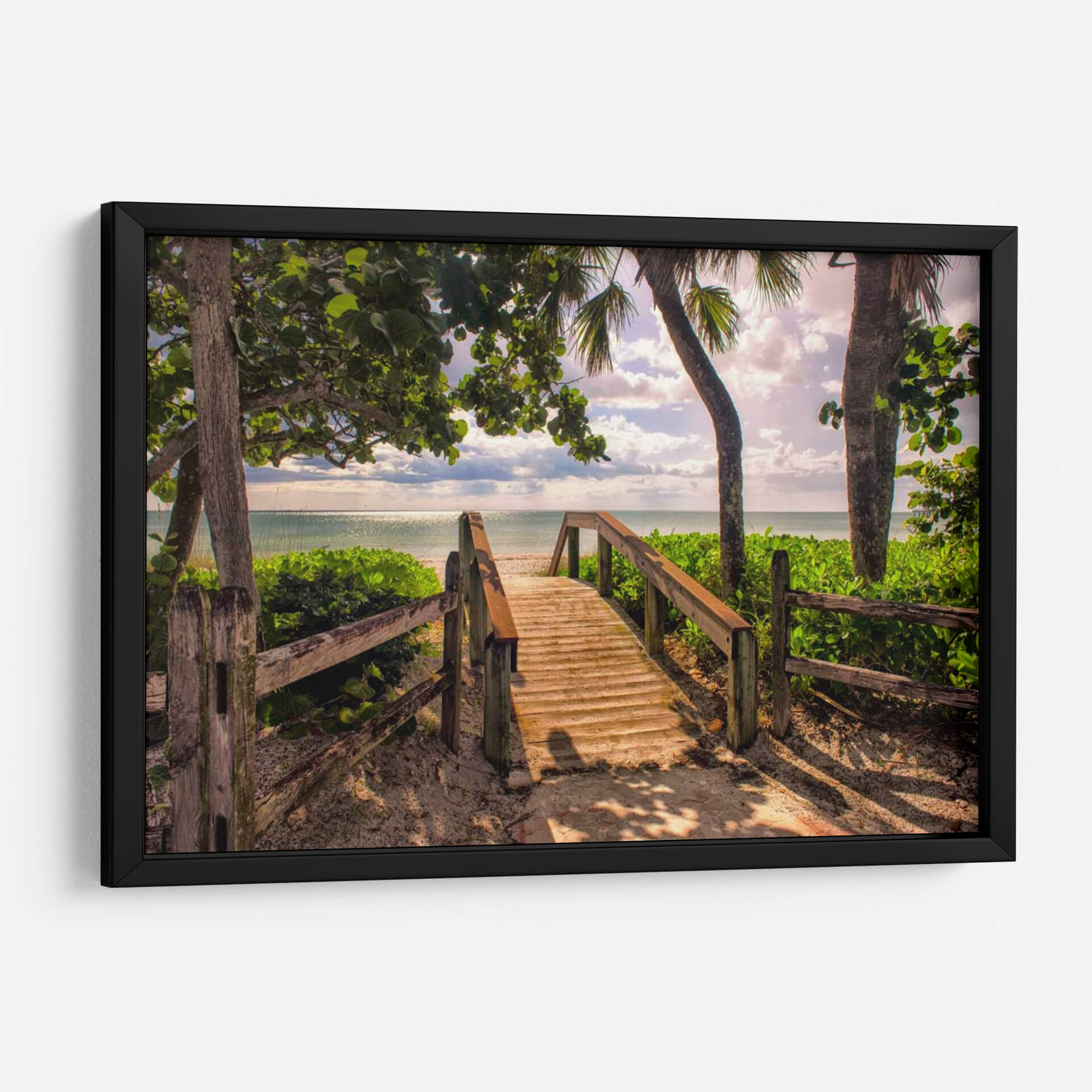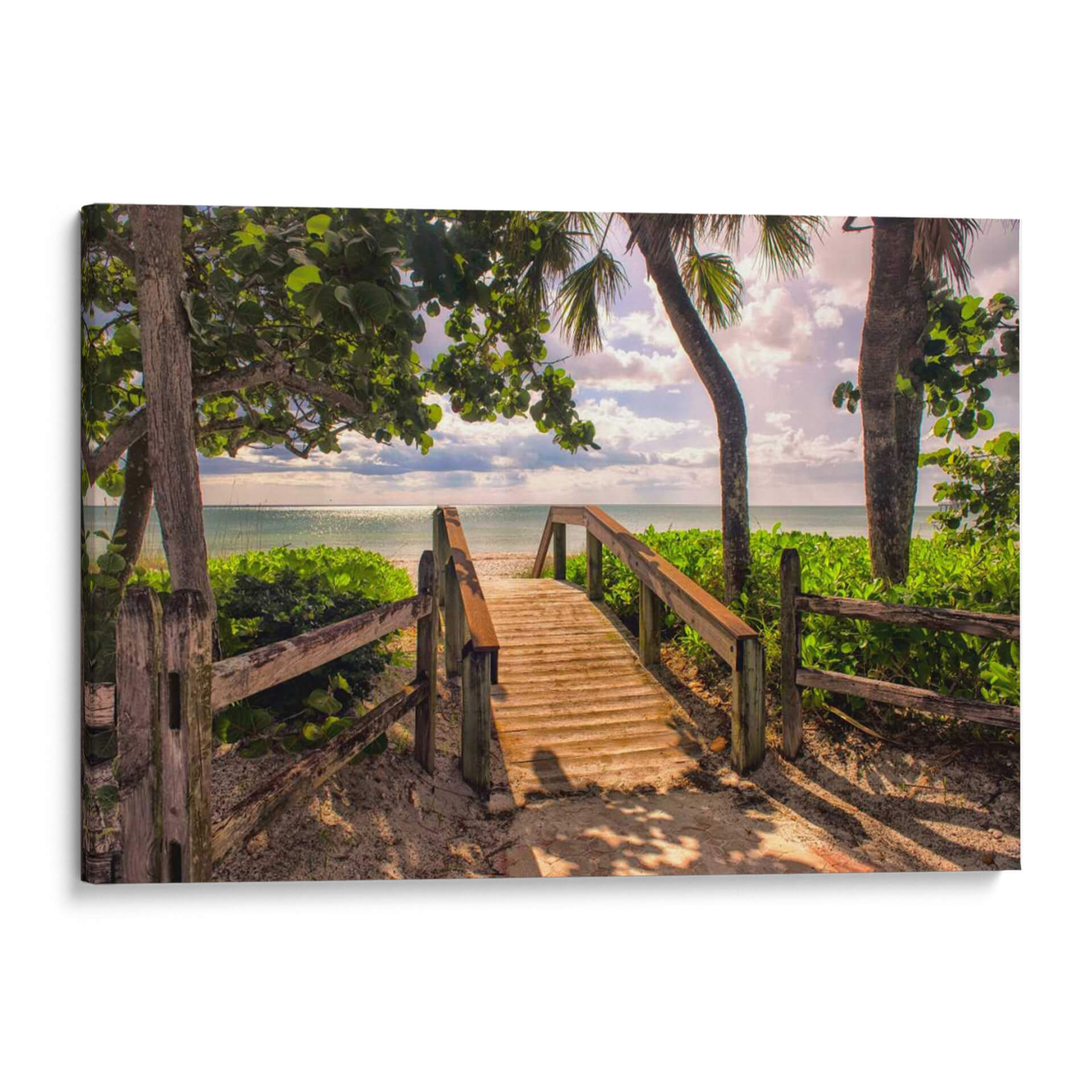 Embárquese en un viaje sensorial hacia la serenidad con "Acceso a la Playa", una obra maestra visual que captura la esencia del paraíso costero. Esta pieza, creada por Danny Head, te transporta a un idílico camino de madera que serpentea entre exuberante vegetación y palmeras, conduciendo hacia el abrazo tranquilizador del océano. La luz del sol se filtra a través de las hojas, creando un juego de sombras danzantes sobre la arena, mientras las tranquilas aguas reflejan un cielo de nubes suaves y doradas. Los tonos verdes vibrantes de la naturaleza se entrelazan con los cálidos marrones de la madera y los azules serenos del mar y el cielo, creando una paleta de colores armoniosa que invita a la calma y la contemplación. El estilo fotográfico y detallado de Head, con un toque de realismo mágico, dota a la escena de una profundidad y una atmósfera inmersiva. "Acceso a la Playa" es más que un simple cuadro decorativo; es una invitación a desconectar, a respirar la brisa marina y a encontrar la paz en la belleza natural. Ideal para añadir un toque de evasión y tranquilidad a tu sala de estar, dormitorio o cualquier espacio que necesite un respiro visual y emocional. Descubre la puerta a tu propio refugio personal con esta cautivadora obra de arte de pared.