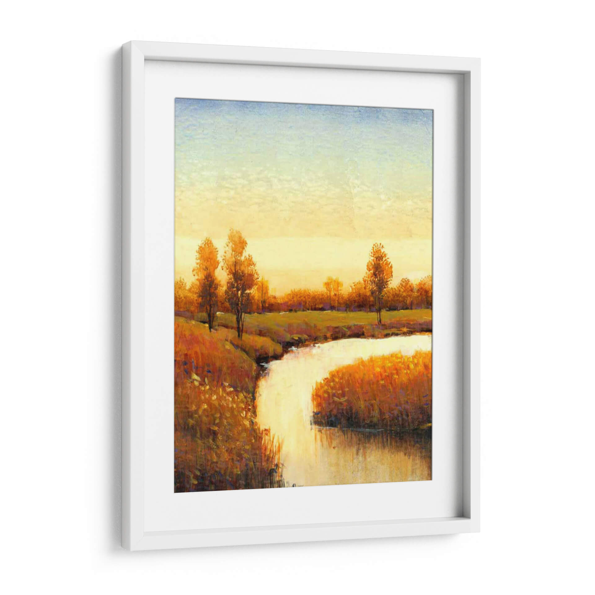 Sumérgete en la serena belleza de 'Aguas De Primavera I', una obra de arte que captura la esencia de un paisaje fluvial bañado por la luz cálida de la primavera. El artista Tim O'Toole nos transporta a un idílico escenario natural donde un sinuoso río refleja los tonos dorados y ocres de la vegetación circundante y un cielo despejado y azulado. La paleta de colores, dominada por amarillos vibrantes, naranjas intensos y verdes terrosos, evoca una sensación de calidez, renovación y vitalidad, perfecta para infundir energía y optimismo en cualquier espacio. La pincelada suelta y expresiva, con toques impresionistas, aporta textura y profundidad, invitando al espectador a contemplar los detalles sutiles de la naturaleza. Este cuadro decorativo es ideal para crear un ambiente acogedor y relajante en salones, comedores o dormitorios, añadiendo un toque de sofisticación y conexión con el mundo natural. 'Aguas De Primavera I' no es solo una pieza decorativa, sino una ventana a un momento de paz y esplendor primaveral, diseñada para inspirar y elevar tu entorno. Su composición armoniosa y los colores evocadores la convierten en una elección excepcional para quienes buscan añadir carácter y un toque de arte contemporáneo a su hogar u oficina.