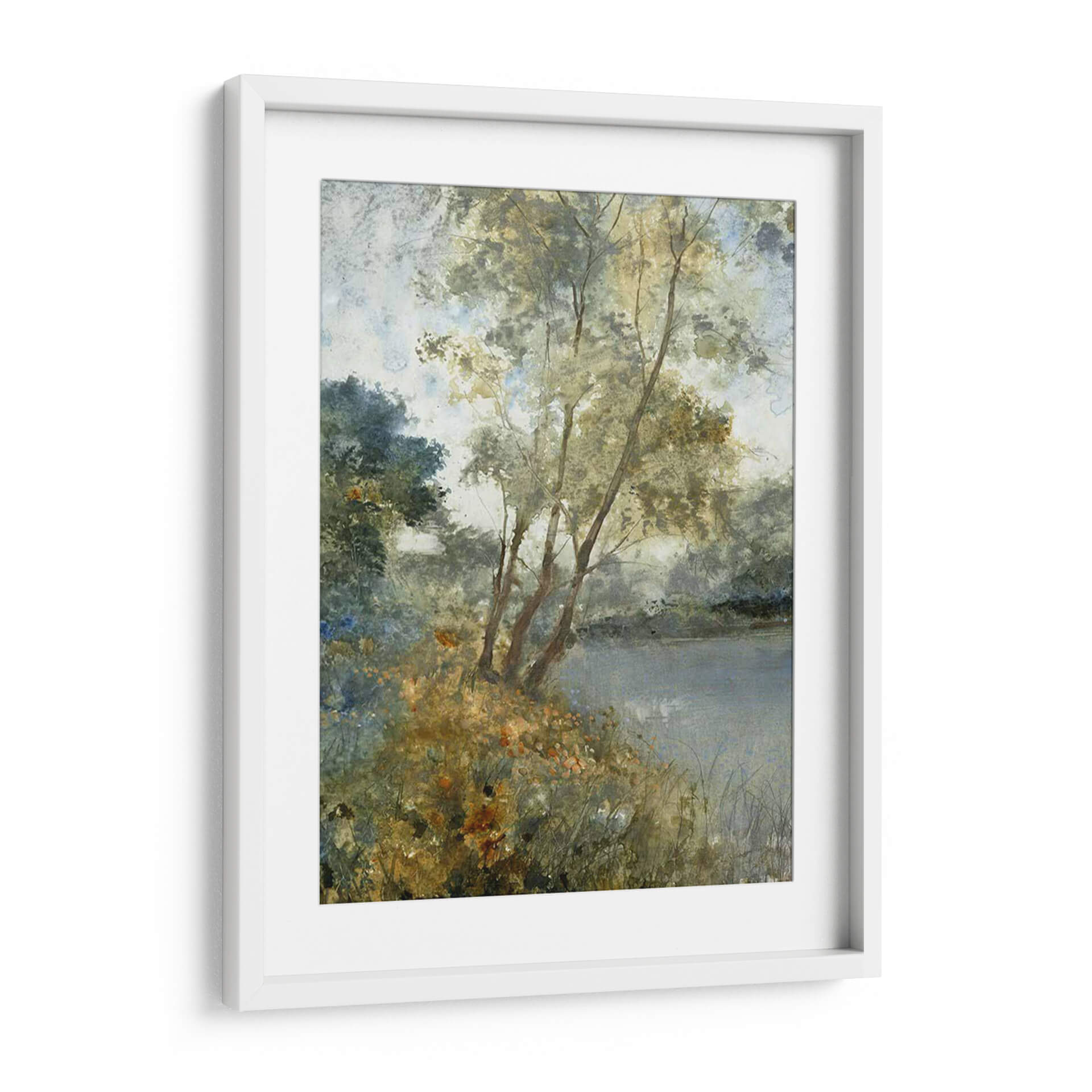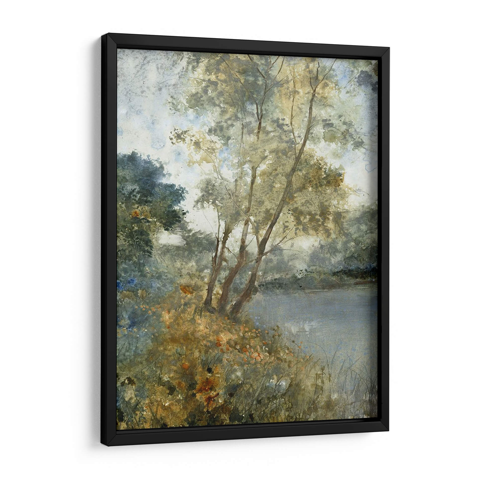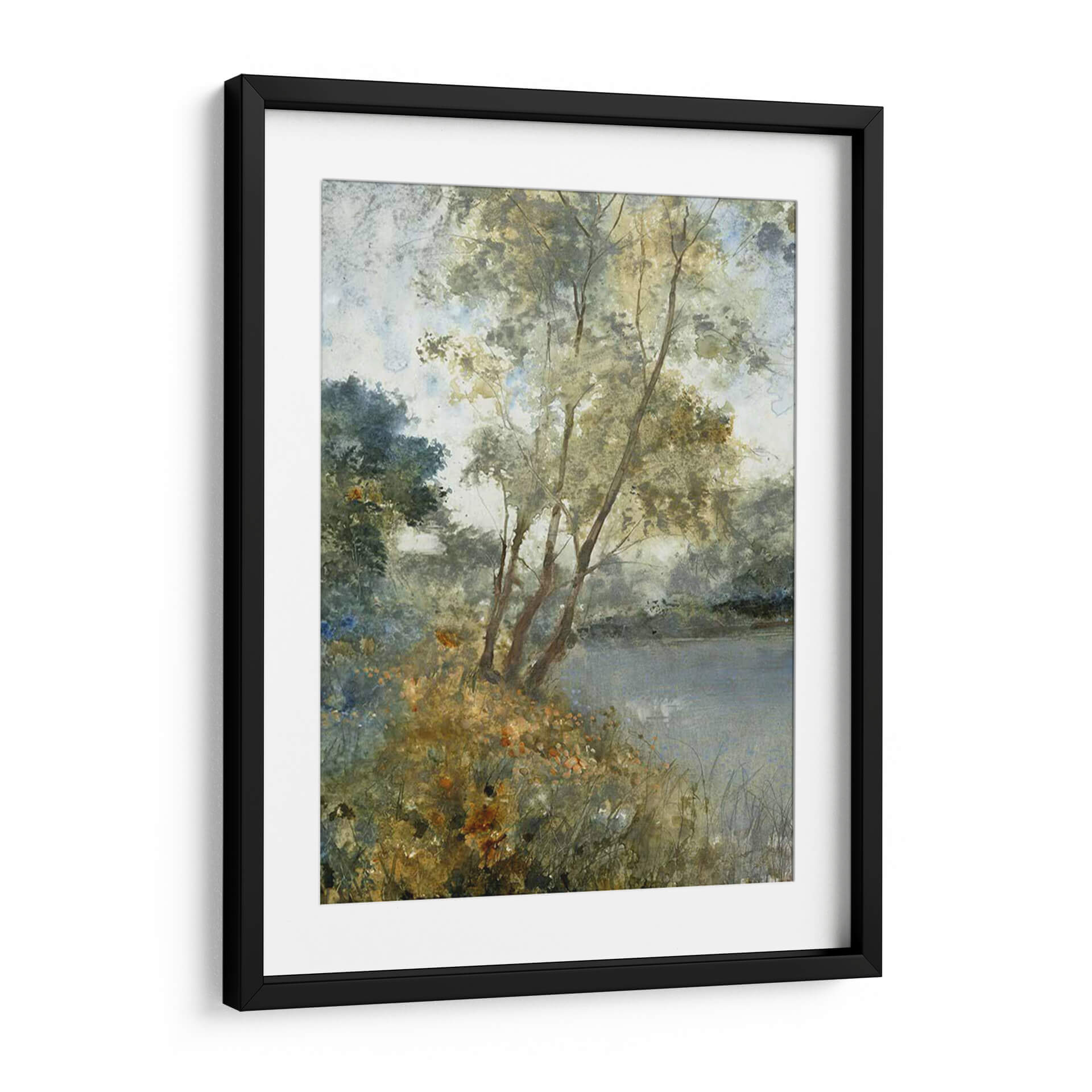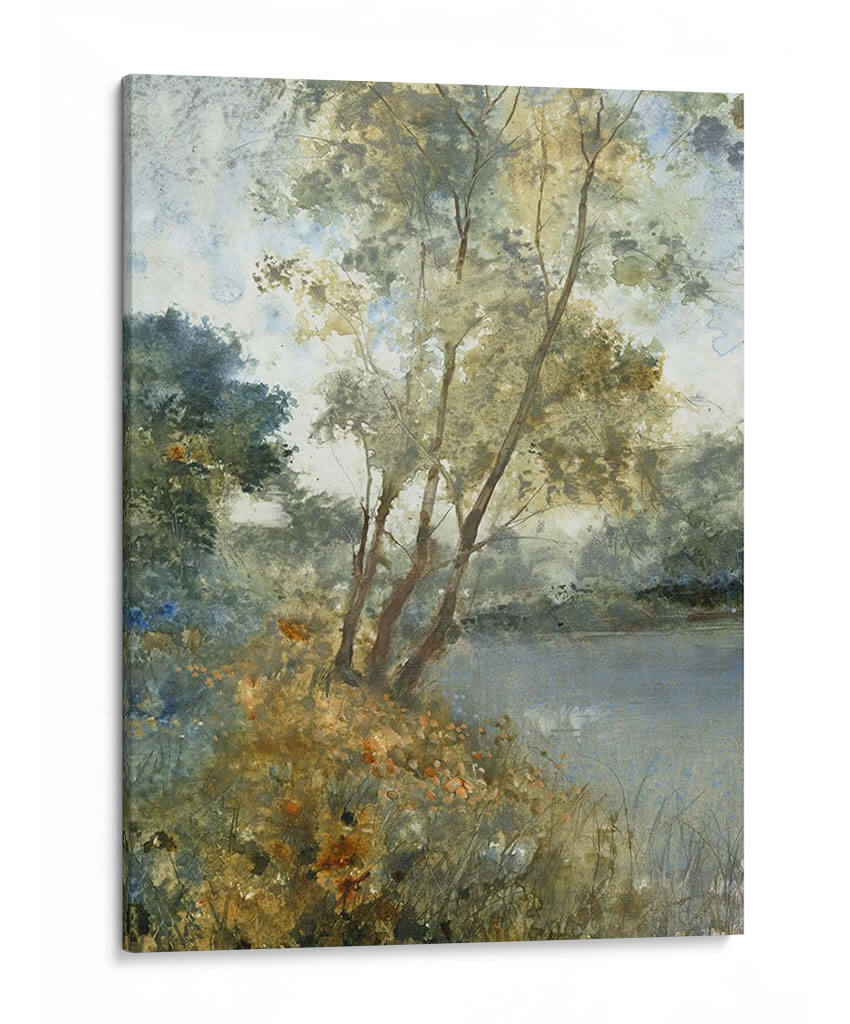 Sumérgete en la serena belleza de "Aguas Etéreas Personalizadas I (Ash)" de Tim OToole, una obra de arte que captura la esencia de un paisaje acuático envolvente. A través de pinceladas delicadas y una paleta de colores suaves y armoniosos, la pieza evoca una atmósfera de profunda calma y contemplación. Los tonos tierra, verdes apagados y azules tenues se entrelazan para crear una sensación de profundidad y serenidad, invitando al espectador a perderse en sus detalles sutiles. La composición, con árboles esbeltos reflejados en aguas tranquilas y la exuberante vegetación en primer plano, sugiere un rincón idílico y apartado de la naturaleza. Este cuadro decorativo es ideal para infundir paz y sofisticación en cualquier espacio, desde una sala de estar moderna hasta un dormitorio o una oficina que busque un toque de tranquilidad natural. La técnica pictórica recuerda a las acuarelas o al óleo con una textura sutil, aportando una cualidad artística atemporal. Añade una pieza de arte que inspire reflexión y eleve tu entorno, un verdadero refugio visual para el alma.