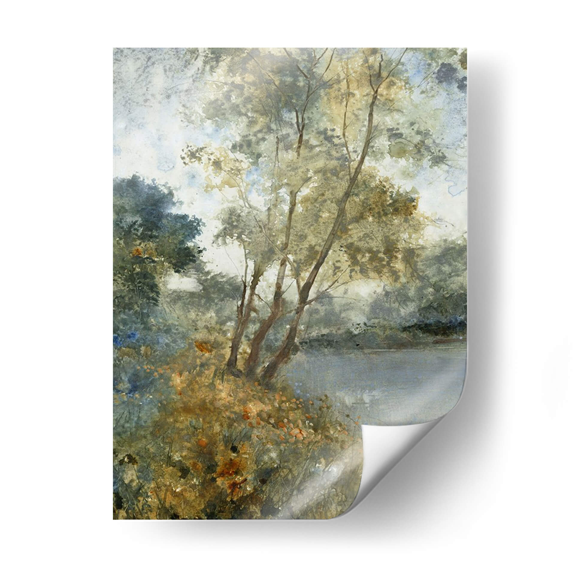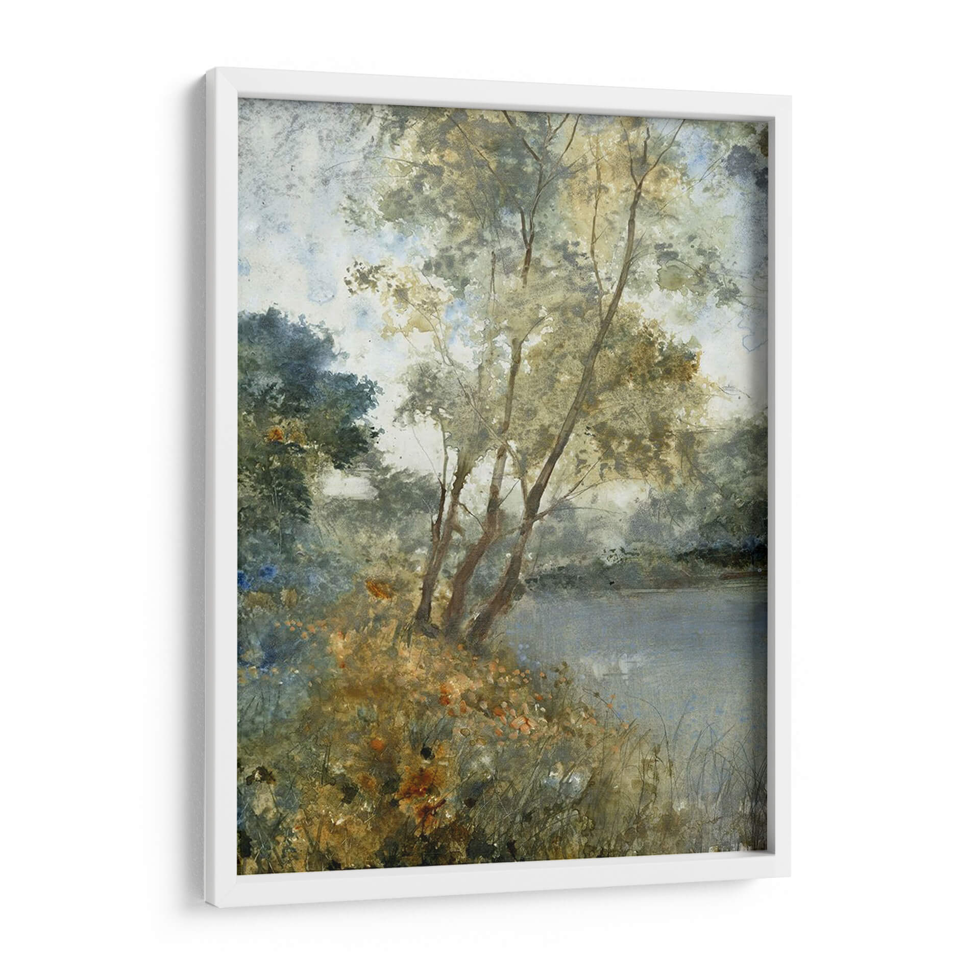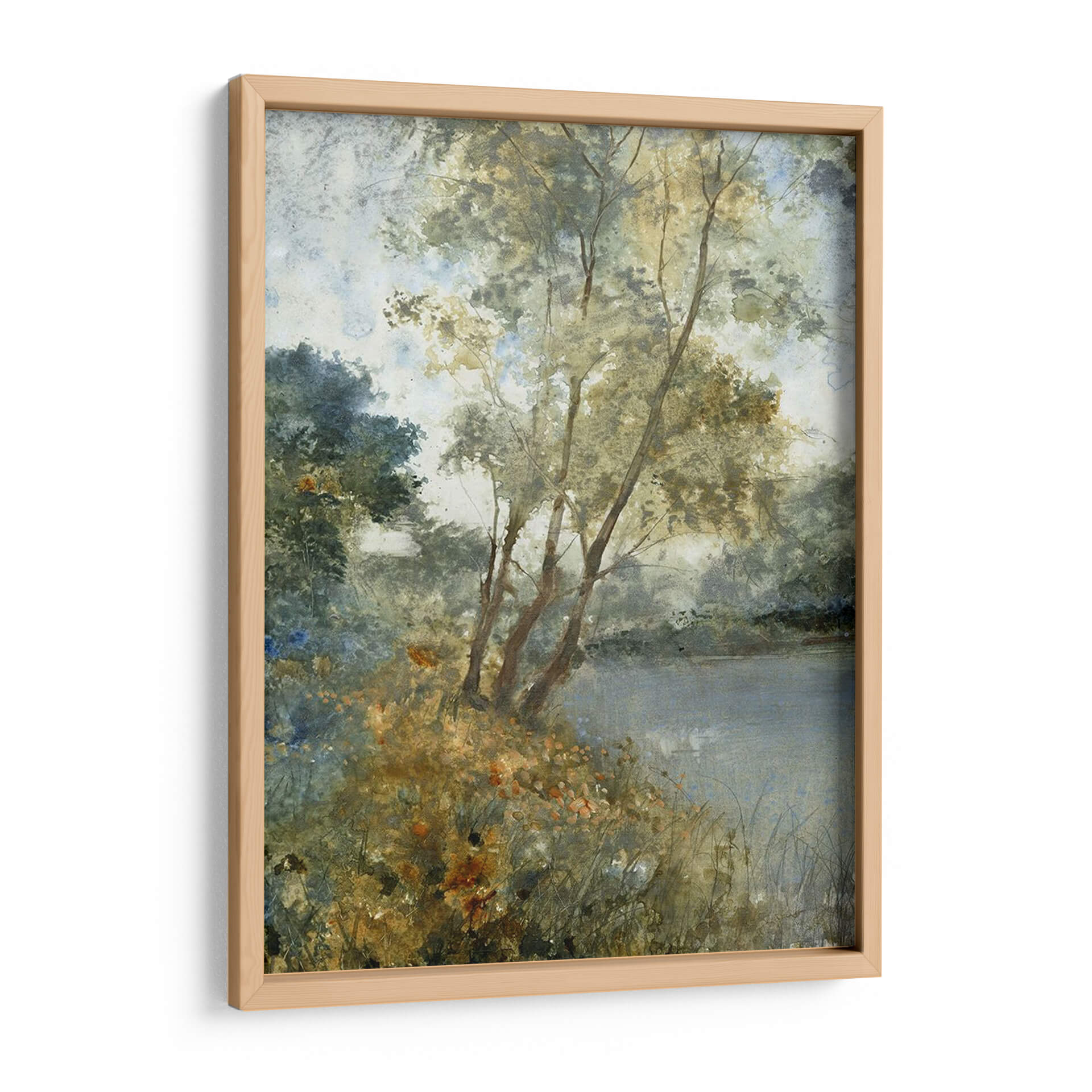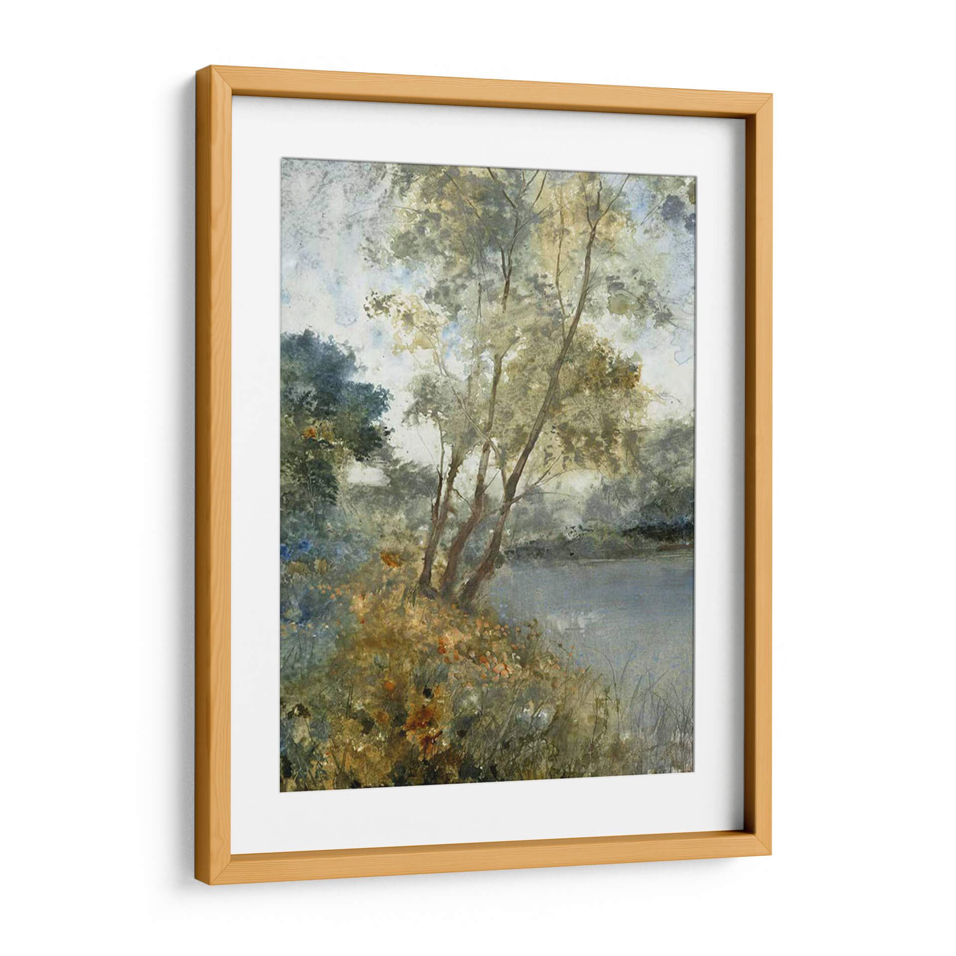 Sumérgete en la serena belleza de "Aguas Etéreas Personalizadas I (Ash)" de Tim OToole, una obra de arte que captura la esencia de un paisaje acuático envolvente. A través de pinceladas delicadas y una paleta de colores suaves y armoniosos, la pieza evoca una atmósfera de profunda calma y contemplación. Los tonos tierra, verdes apagados y azules tenues se entrelazan para crear una sensación de profundidad y serenidad, invitando al espectador a perderse en sus detalles sutiles. La composición, con árboles esbeltos reflejados en aguas tranquilas y la exuberante vegetación en primer plano, sugiere un rincón idílico y apartado de la naturaleza. Este cuadro decorativo es ideal para infundir paz y sofisticación en cualquier espacio, desde una sala de estar moderna hasta un dormitorio o una oficina que busque un toque de tranquilidad natural. La técnica pictórica recuerda a las acuarelas o al óleo con una textura sutil, aportando una cualidad artística atemporal. Añade una pieza de arte que inspire reflexión y eleve tu entorno, un verdadero refugio visual para el alma.