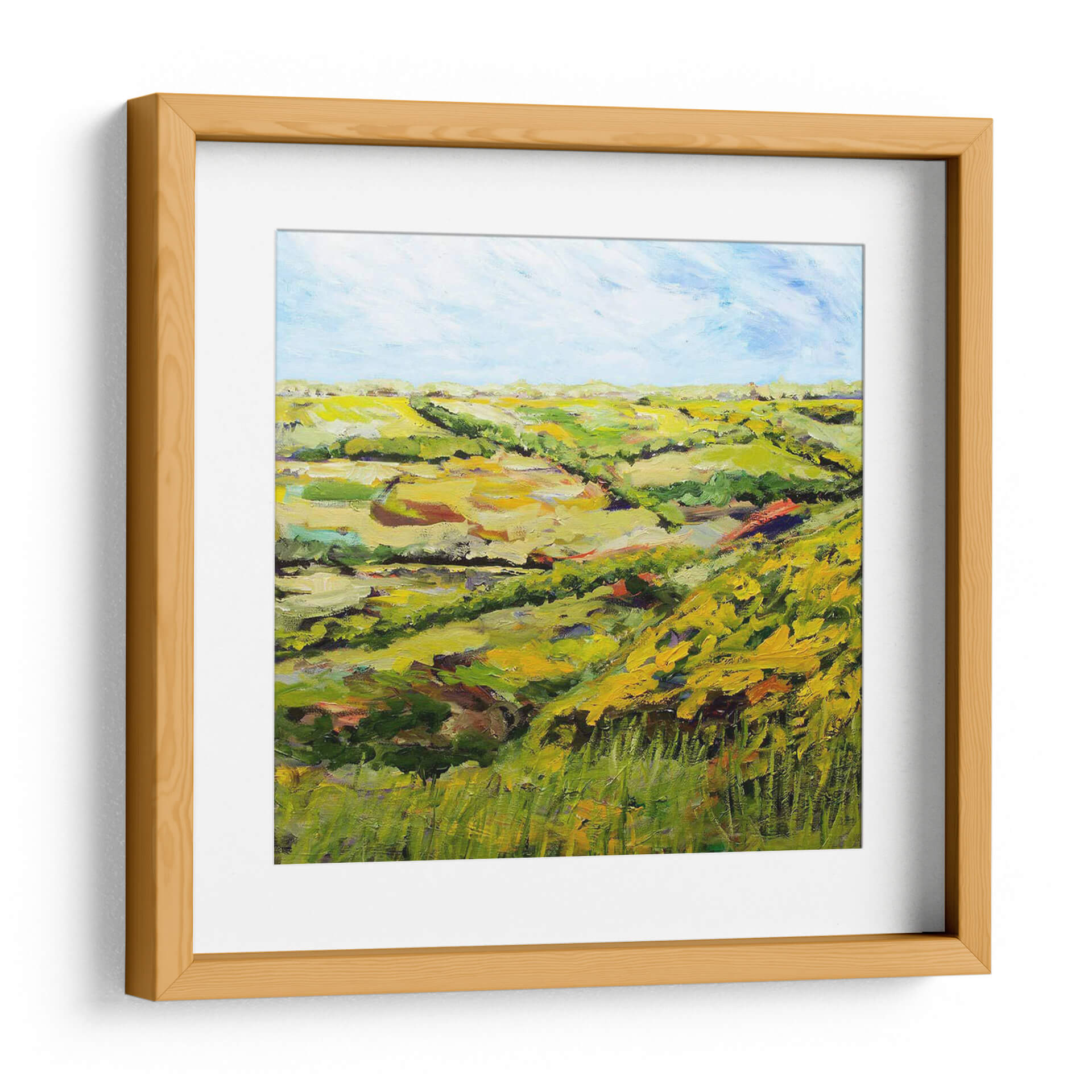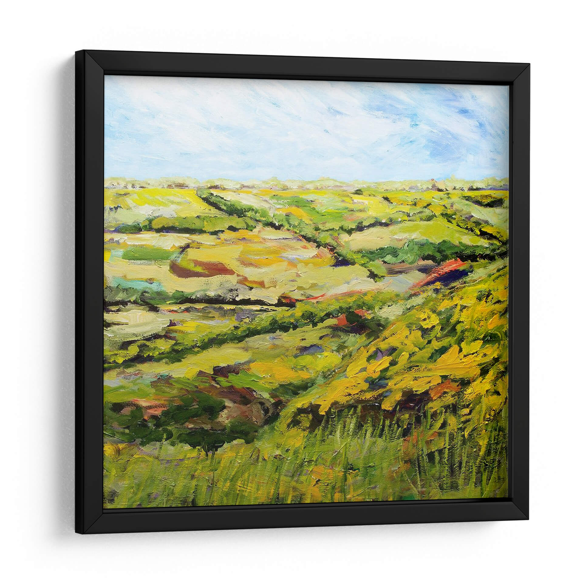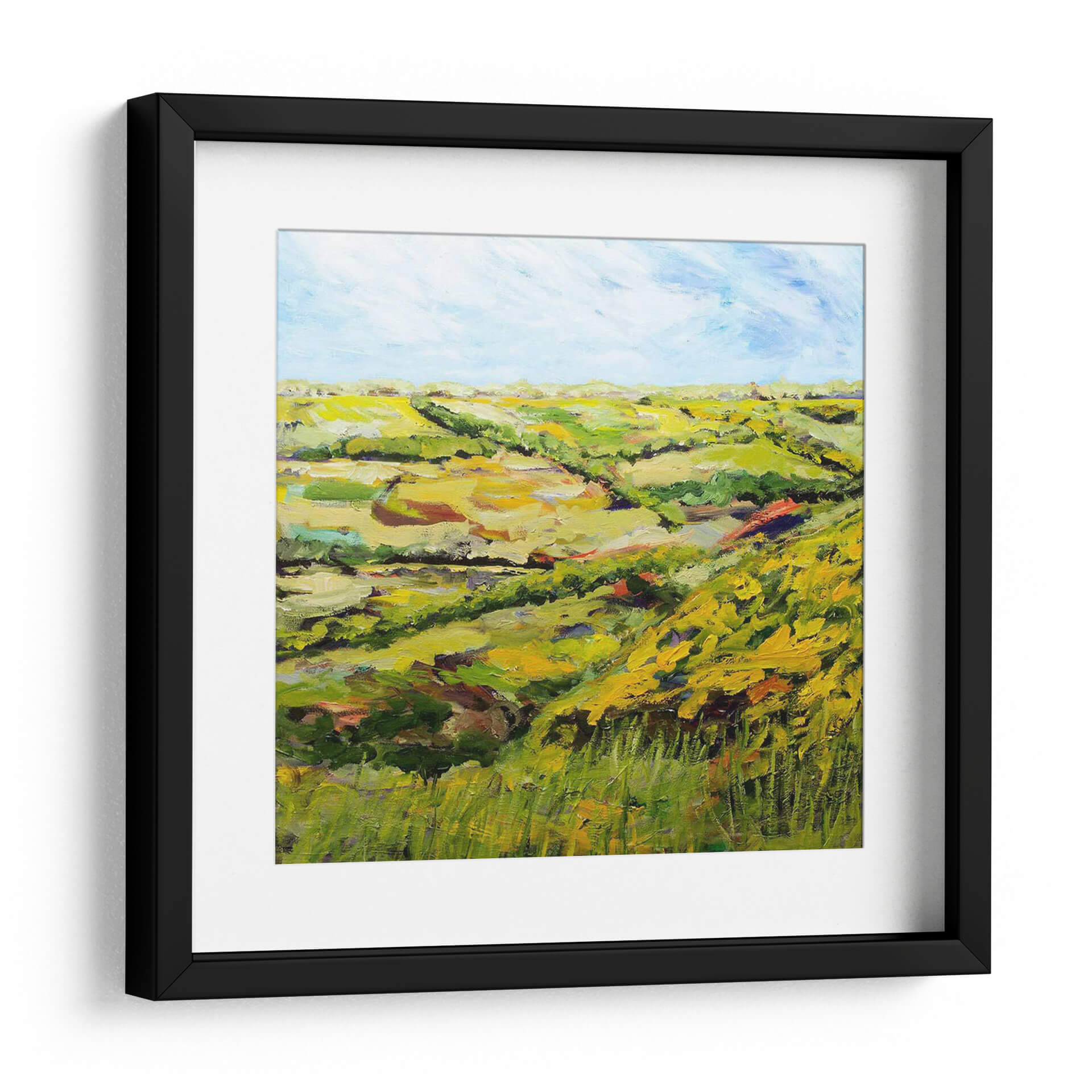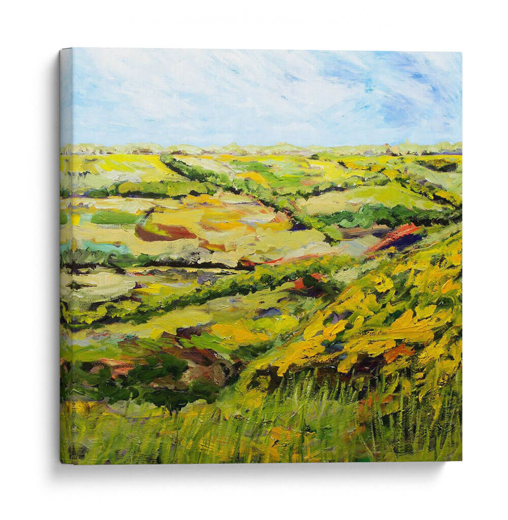 Sumérgete en la serena belleza del paisaje inglés con "Ambleside" de Allan Friedlander, un cuadro decorativo que captura la esencia de la campiña con pinceladas vibrantes y una paleta de colores terrosos y verdes exuberantes. Esta obra, que evoca la tranquilidad de una tarde soleada, presenta colinas ondulantes y campos dorados bajo un cielo azul claro, salpicado de nubes etéreas. La técnica expresiva de Friedlander, con su textura rica y empastada, da vida al lienzo, invitando a la contemplación y al disfrute de la naturaleza. "Ambleside" es más que una simple decoración; es una ventana a un mundo de paz y armonía natural, perfecta para infundir calma en tu hogar u oficina. Su estilo impresionista contemporáneo lo convierte en una pieza versátil, ideal para salones modernos, dormitorios acogedores o estudios que buscan un toque de inspiración orgánica. Añade esta joya artística a tu colección y transforma cualquier espacio en un refugio de serenidad y belleza visual.