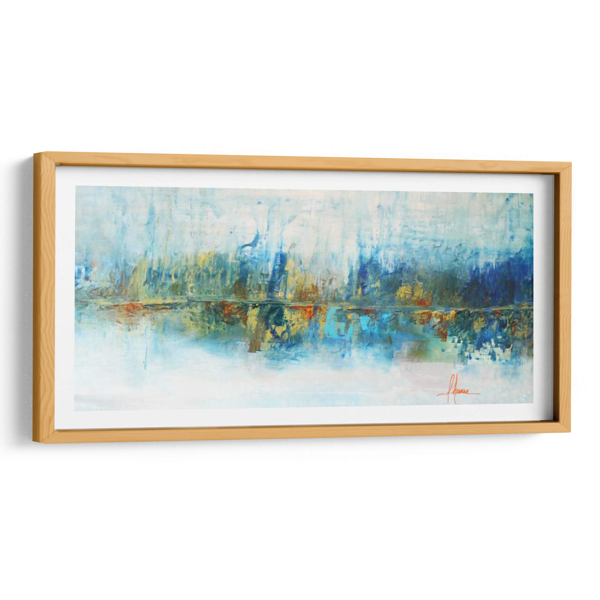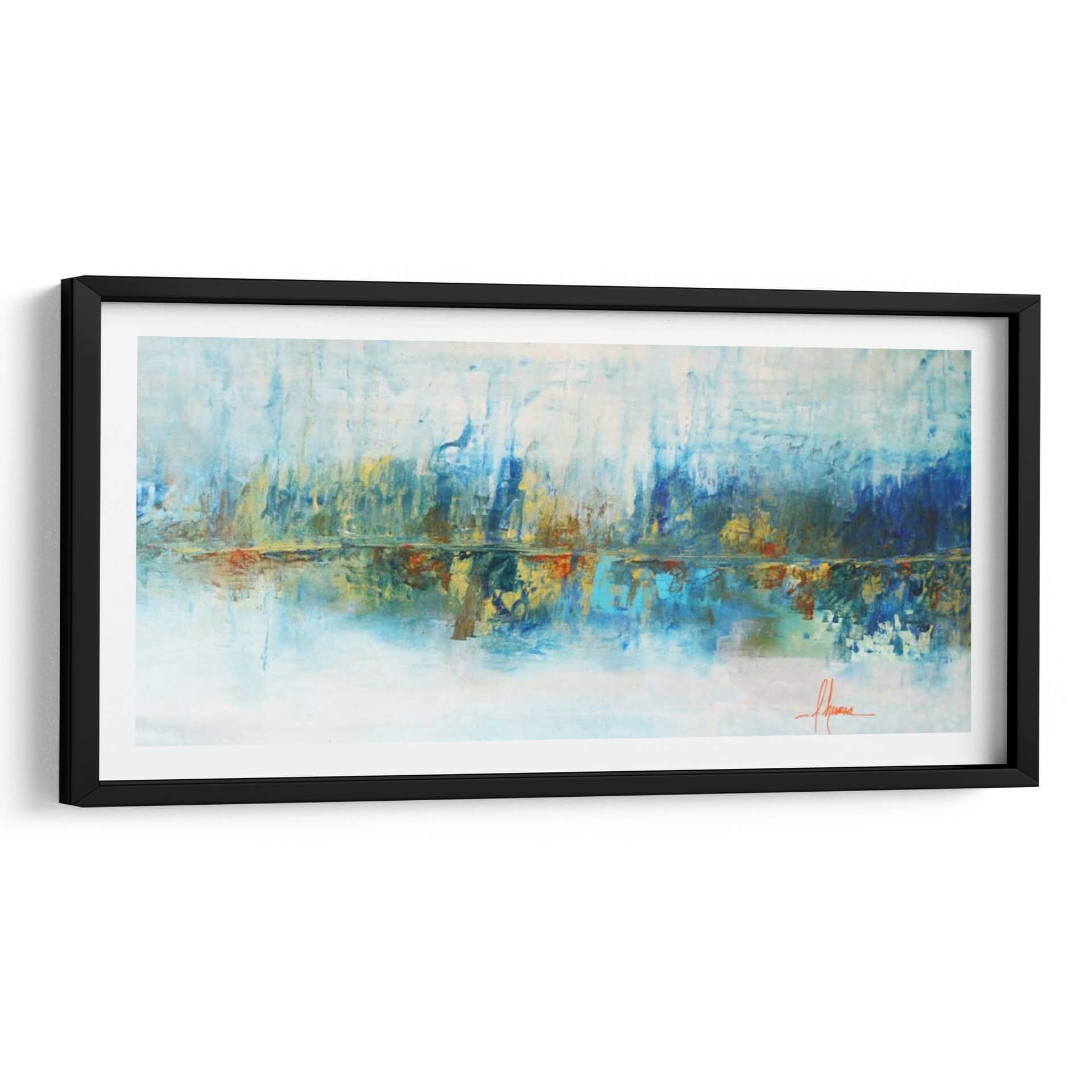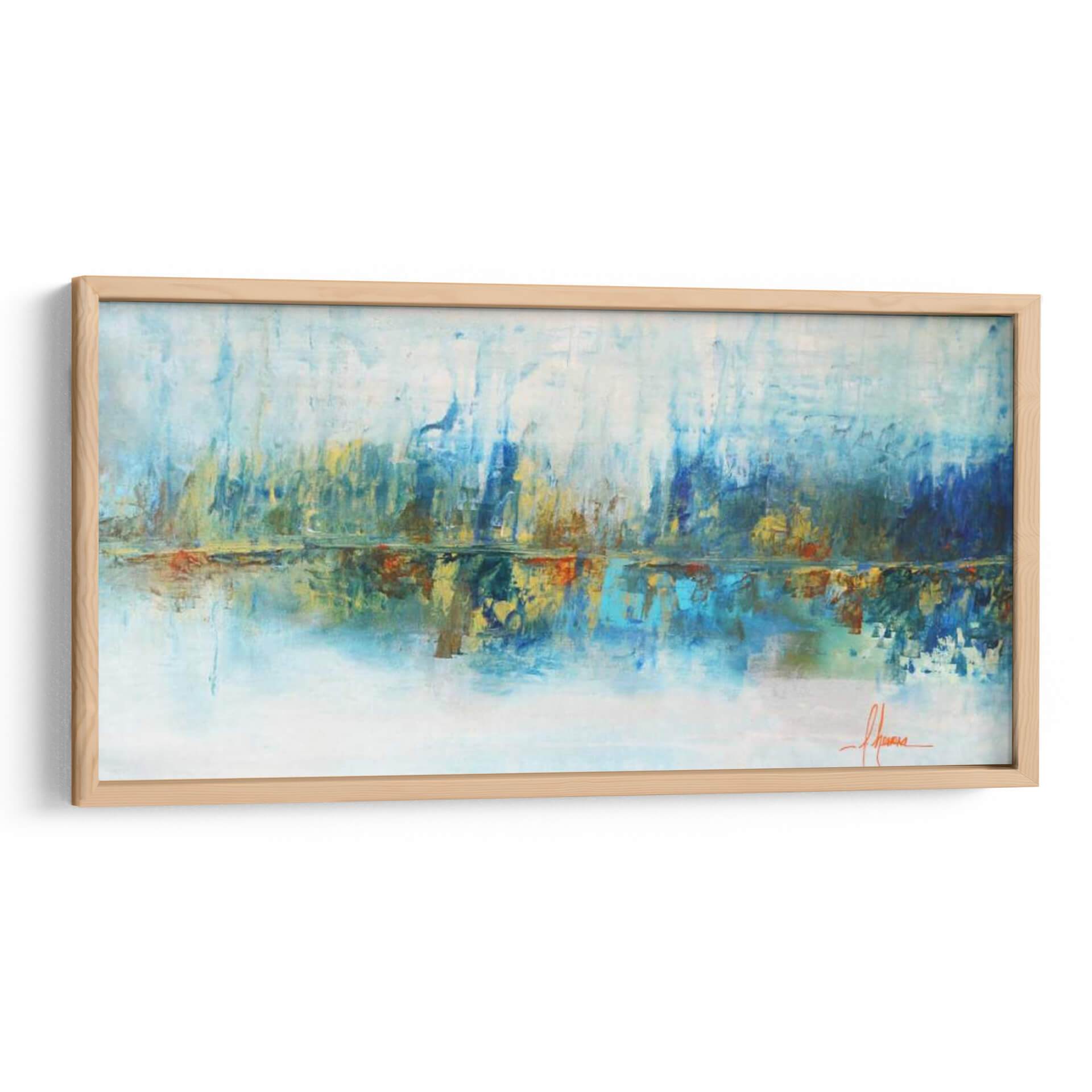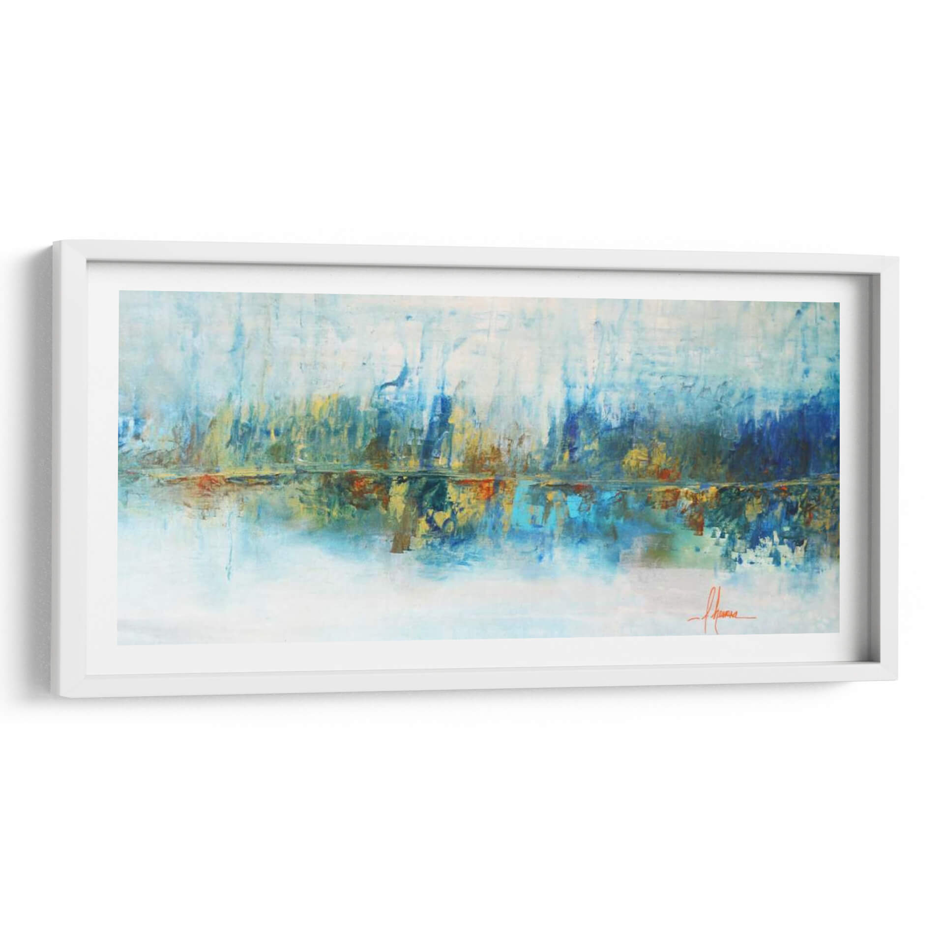 Sumérgete en la serenidad acuática con "Aqua Azul", una obra de arte abstracto que evoca la tranquilidad de un paisaje al amanecer. Las pinceladas audaces y la paleta de colores vibrantes, dominada por tonos azules profundos, celestes etéreos y toques cálidos de ocre y naranja, crean una atmósfera de calma y reflexión. La composición horizontal, con su sugerencia de un horizonte y su reflejo en aguas tranquilas, invita a la contemplación. Este cuadro decorativo es ideal para espacios que buscan un toque de sofisticación y paz, como salas de estar, dormitorios o estudios. Su estilo abstracto contemporáneo permite una interpretación personal, conectando emocionalmente con cada espectador. "Aqua Azul" no es solo una pieza decorativa, es una ventana a un mundo de sensaciones, perfecta para añadir profundidad y serenidad a tu hogar u oficina. La maestra Leticia Herrera captura la esencia del agua y la luz con una técnica expresiva que transformará cualquier ambiente, convirtiéndose en un punto focal inspirador y relajante. Añade esta pieza única a tu colección y experimenta la armonía de sus matices.