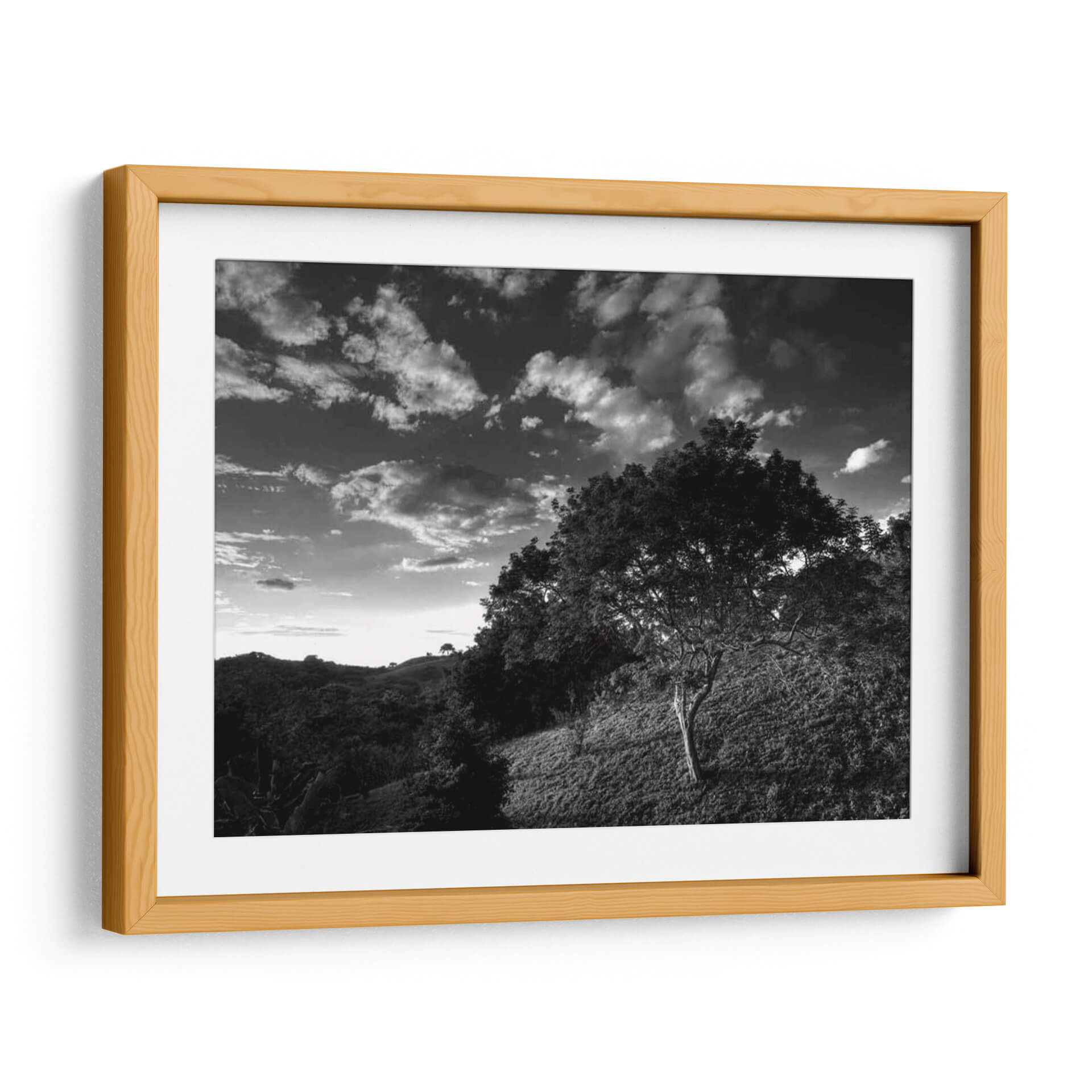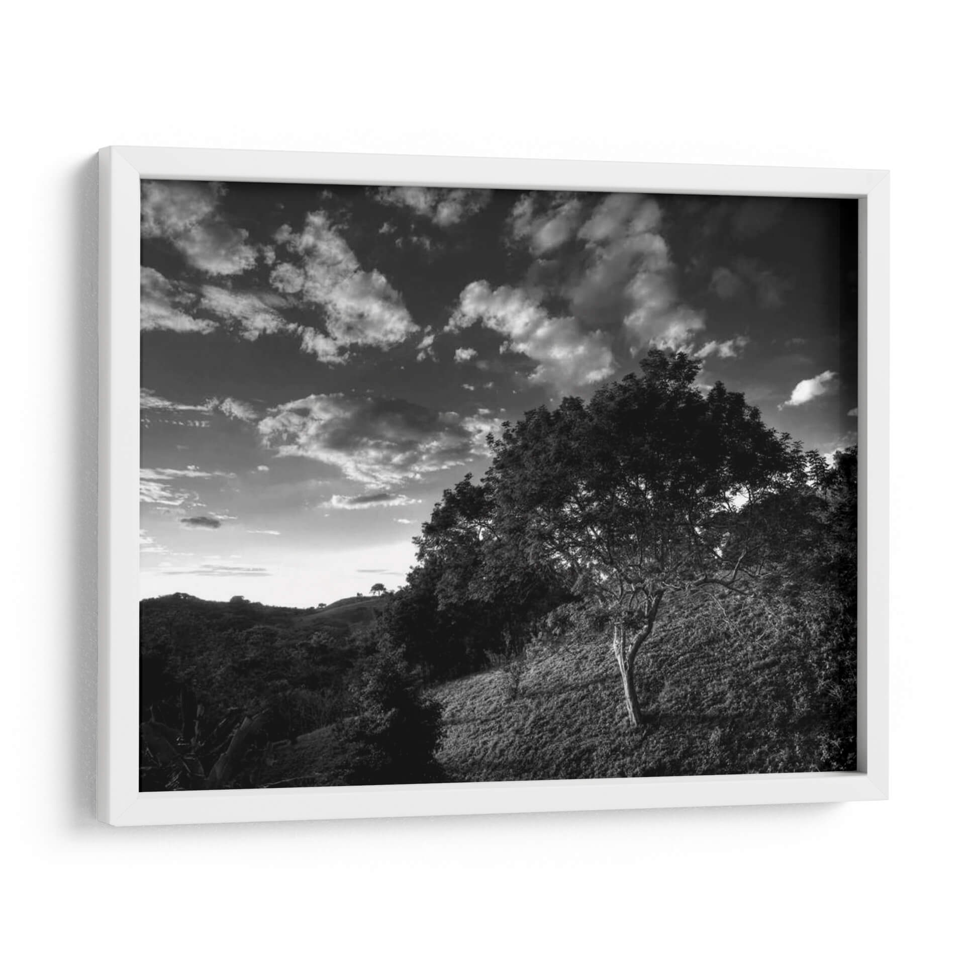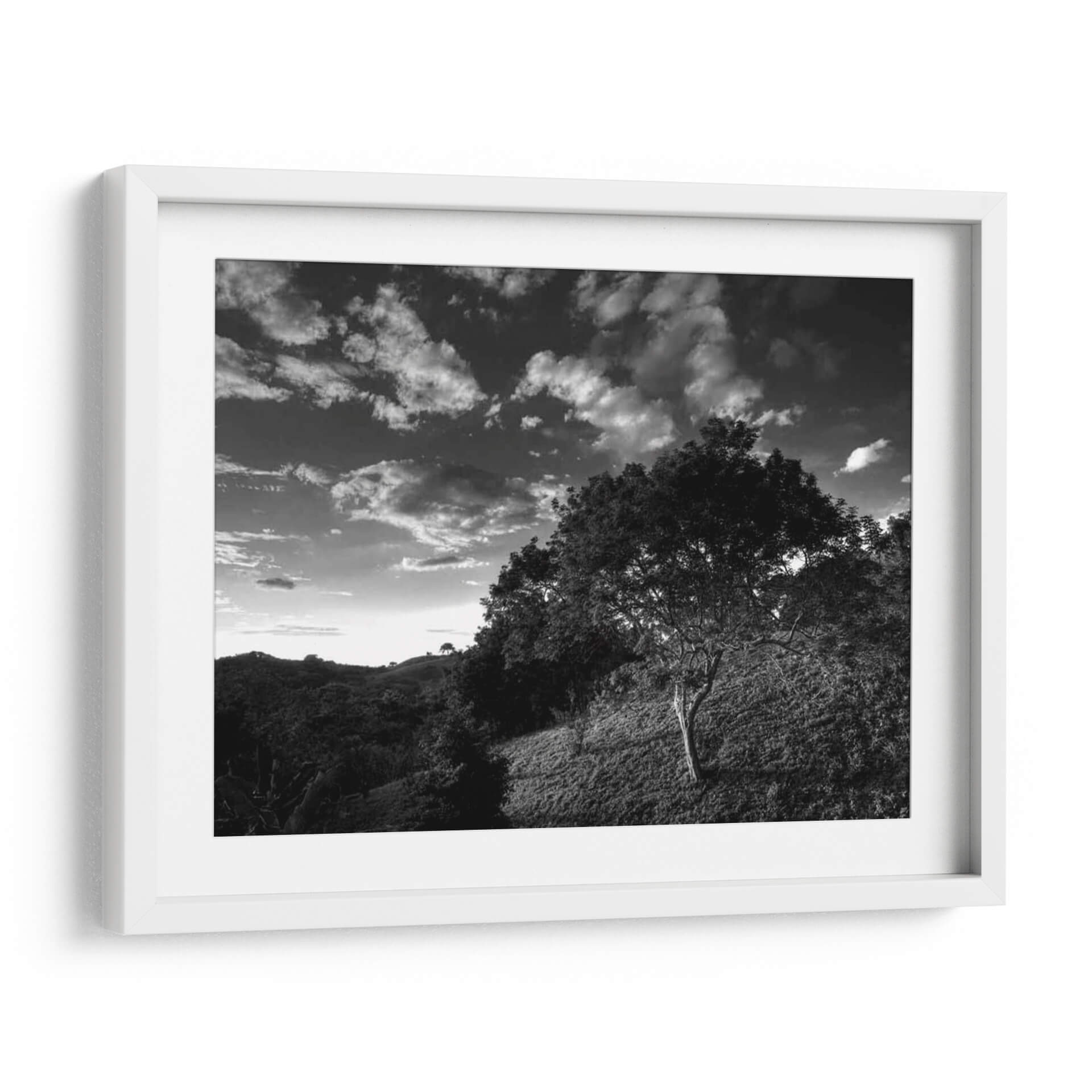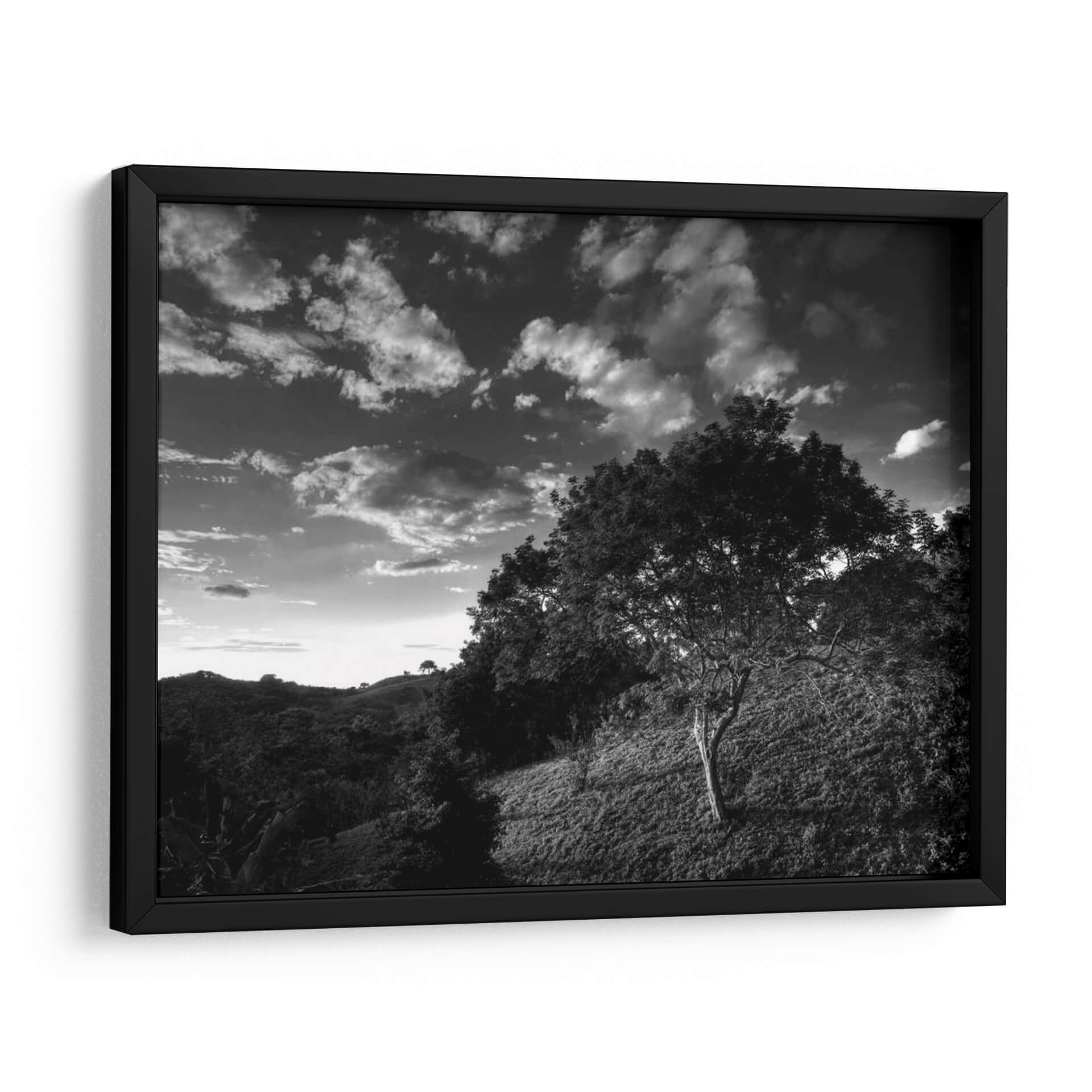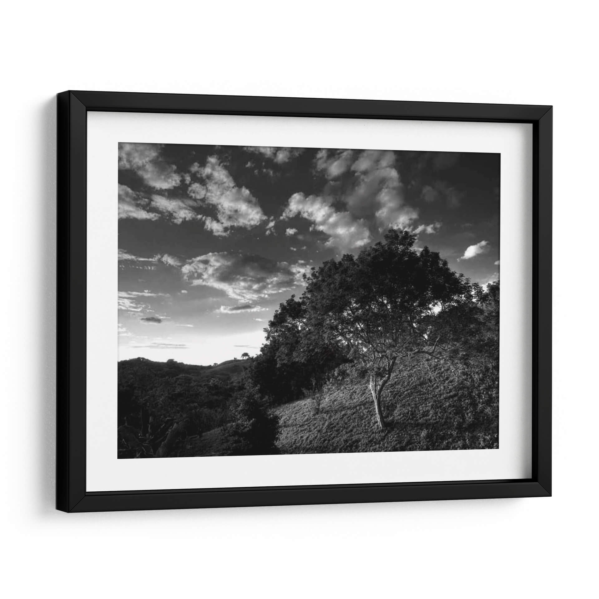 Adéntrate en la enigmática atmósfera de "Árboles De Selva De Noche", una obra maestra fotográfica de Nish Nalbandian. Este cuadro decorativo en blanco y negro captura la esencia profunda de un paisaje selvático al anochecer, donde la luz tenue se filtra a través de un cielo dramático cargado de nubes. La composición, dominada por la silueta de árboles frondosos y un terreno ondulado, evoca una sensación de misterio y tranquilidad. Cada detalle, desde la textura de la corteza hasta el juego de luces y sombras, invita a la contemplación. Es una pieza ideal para aquellos que buscan añadir un toque de serenidad y profundidad a su hogar u oficina, creando un punto focal que invita a la reflexión y transporta al espectador a un mundo de calma natural. El estilo fotográfico, con su fuerte contraste y riqueza tonal, aporta una elegancia atemporal que complementa cualquier decoración moderna o clásica, transformando cualquier espacio en un santuario visual.