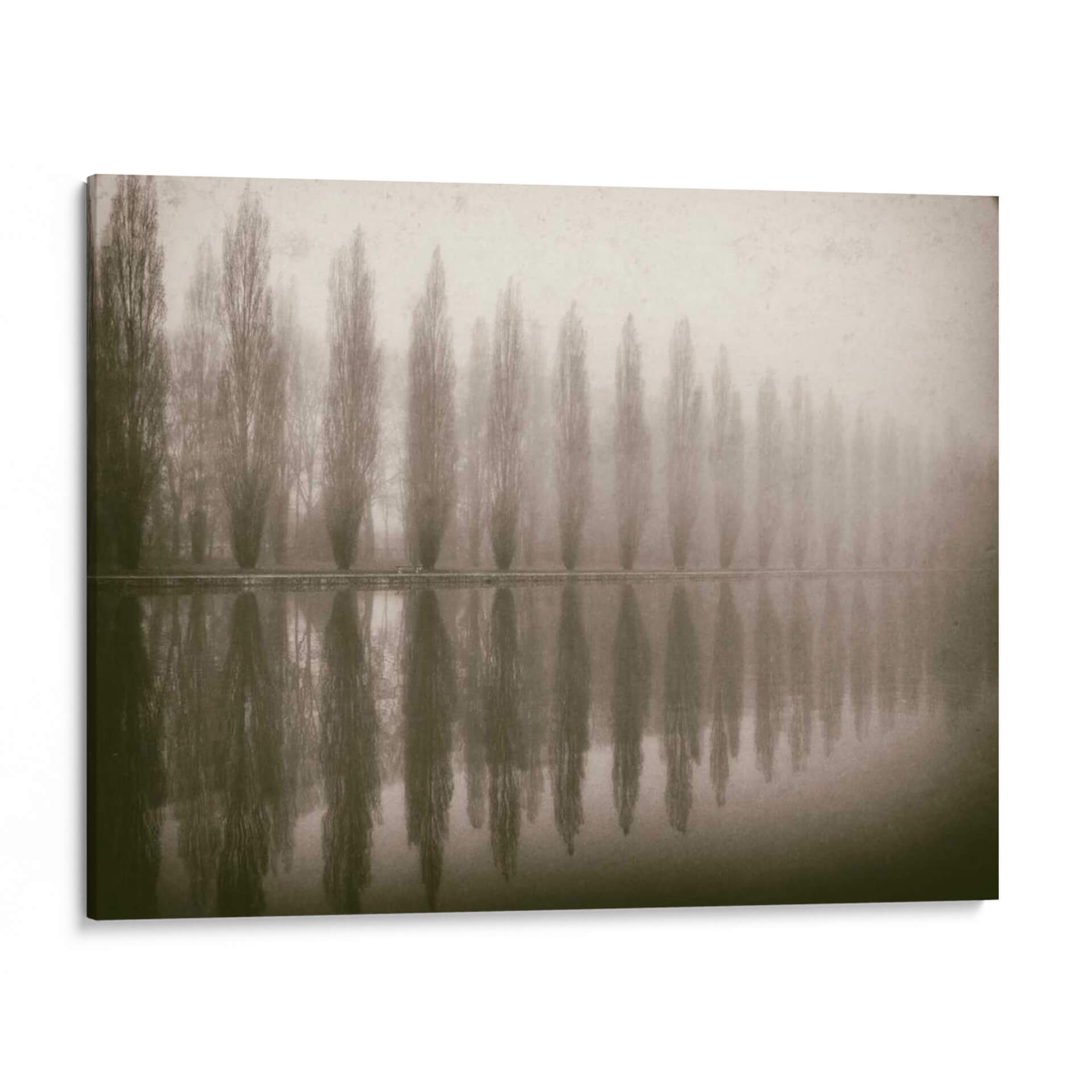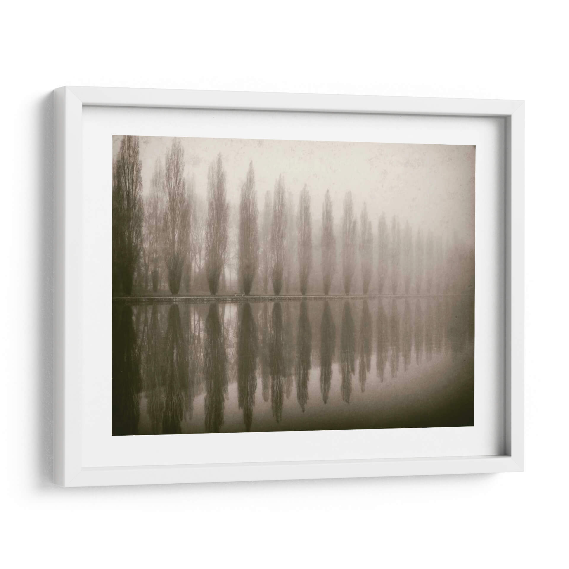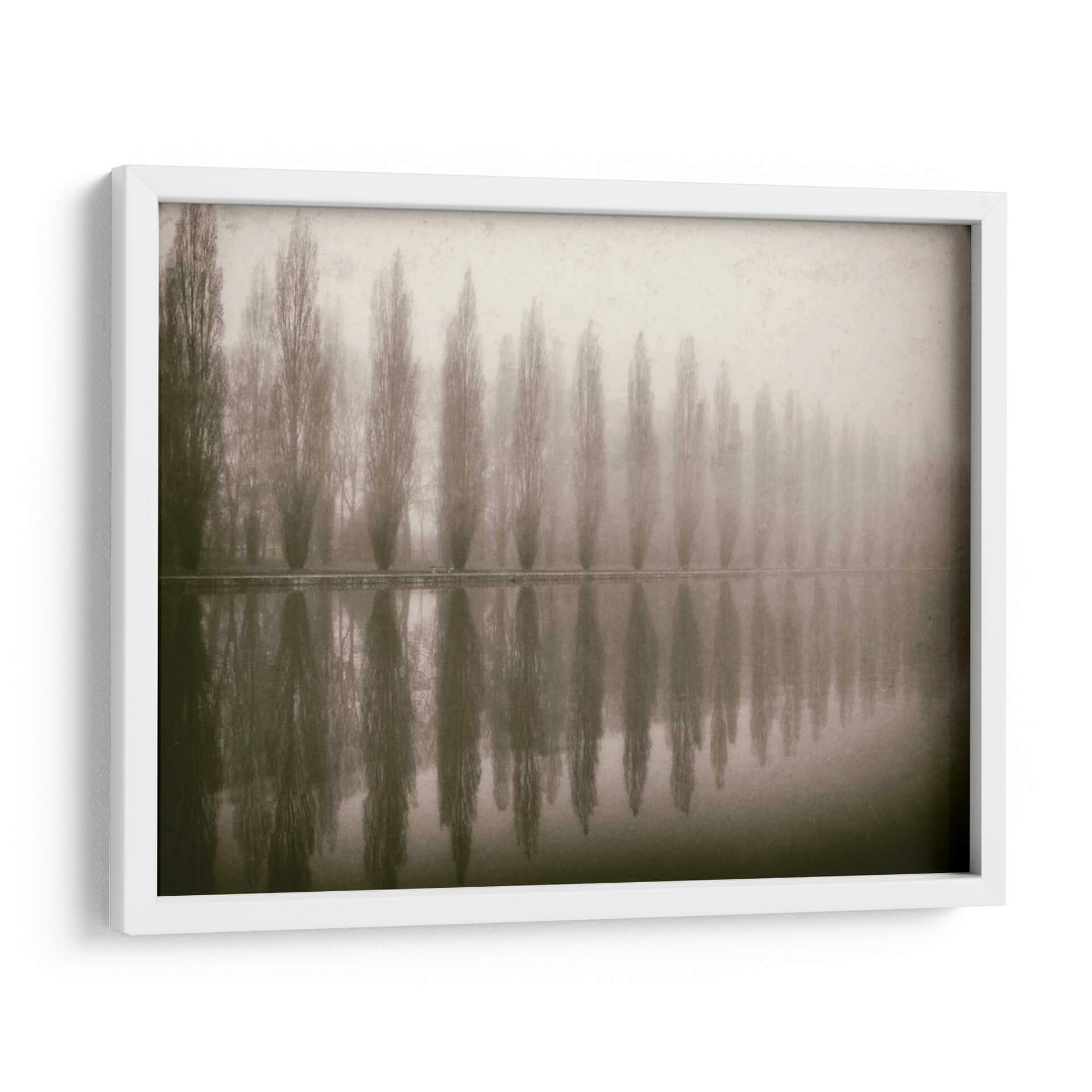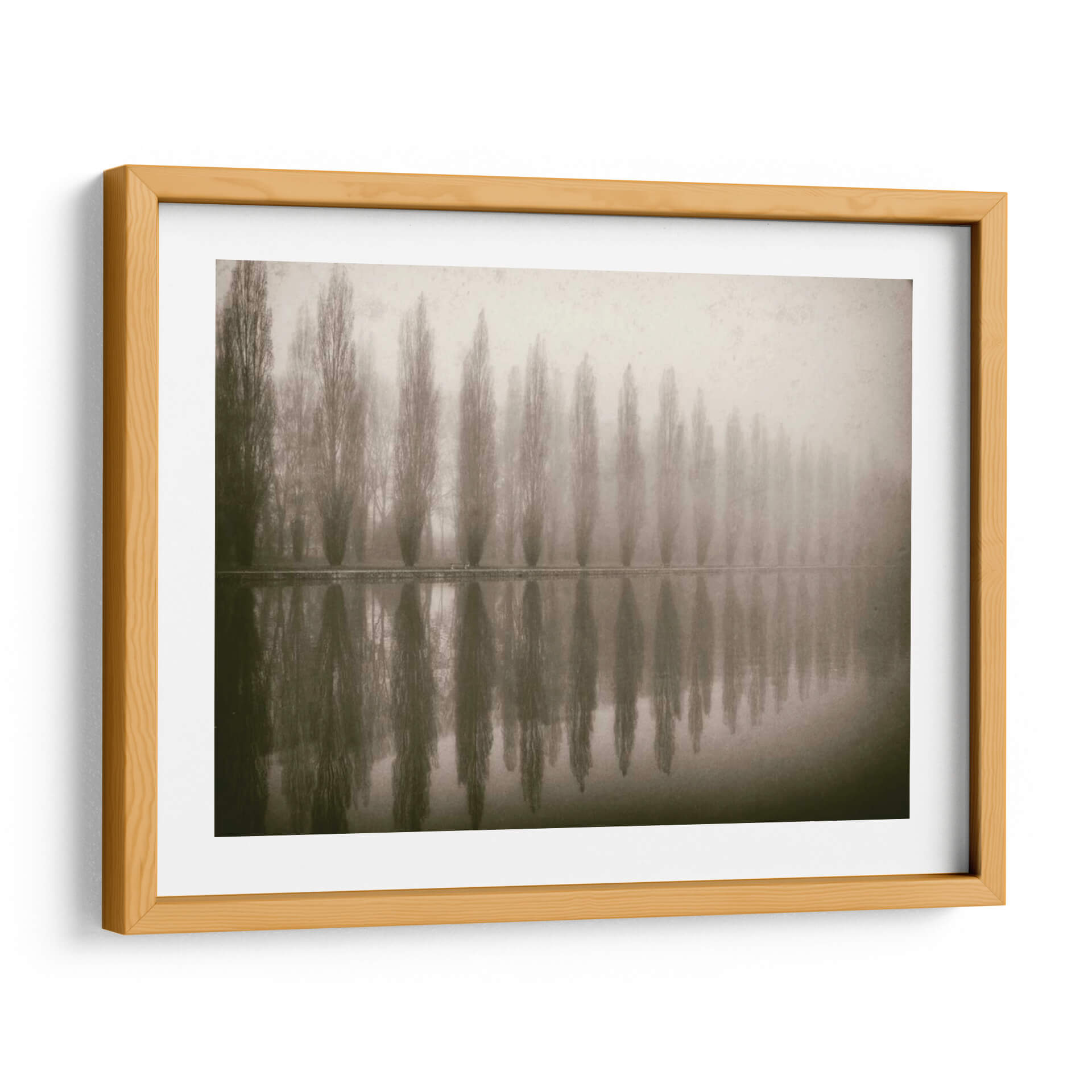 Sumérgete en la atmósfera etérea de "Árboles en Niebla V", una cautivadora obra de arte de Jody Stuart que evoca una profunda sensación de serenidad y misterio. Este cuadro decorativo presenta una línea de altos y esbeltos árboles despojados de hojas, envueltos en una densa niebla que difumina los contornos y crea una perspectiva onírica. El reflejo de los árboles en el agua calma que se extiende al frente duplica la escena, añadiendo una simetría inquietante y una sensación de profundidad. La paleta de colores se centra en tonos sepia y grises apagados, lo que refuerza la atmósfera melancólica y contemplativa. La composición, con su enfoque en la repetición vertical de los árboles y la línea horizontal del agua, aporta un equilibrio visual y un ritmo hipnótico. "Árboles en Niebla V" es ideal para añadir un toque de calma contemplativa a tu salón, un ambiente de introspección a tu estudio, o una nota de sofisticación serena a tu dormitorio. Transforma tu espacio en un refugio de tranquilidad con esta pieza evocadora que captura la belleza efímera de la naturaleza en un día brumoso. Una elección perfecta para quienes buscan arte que invite a la reflexión y aporte paz visual.