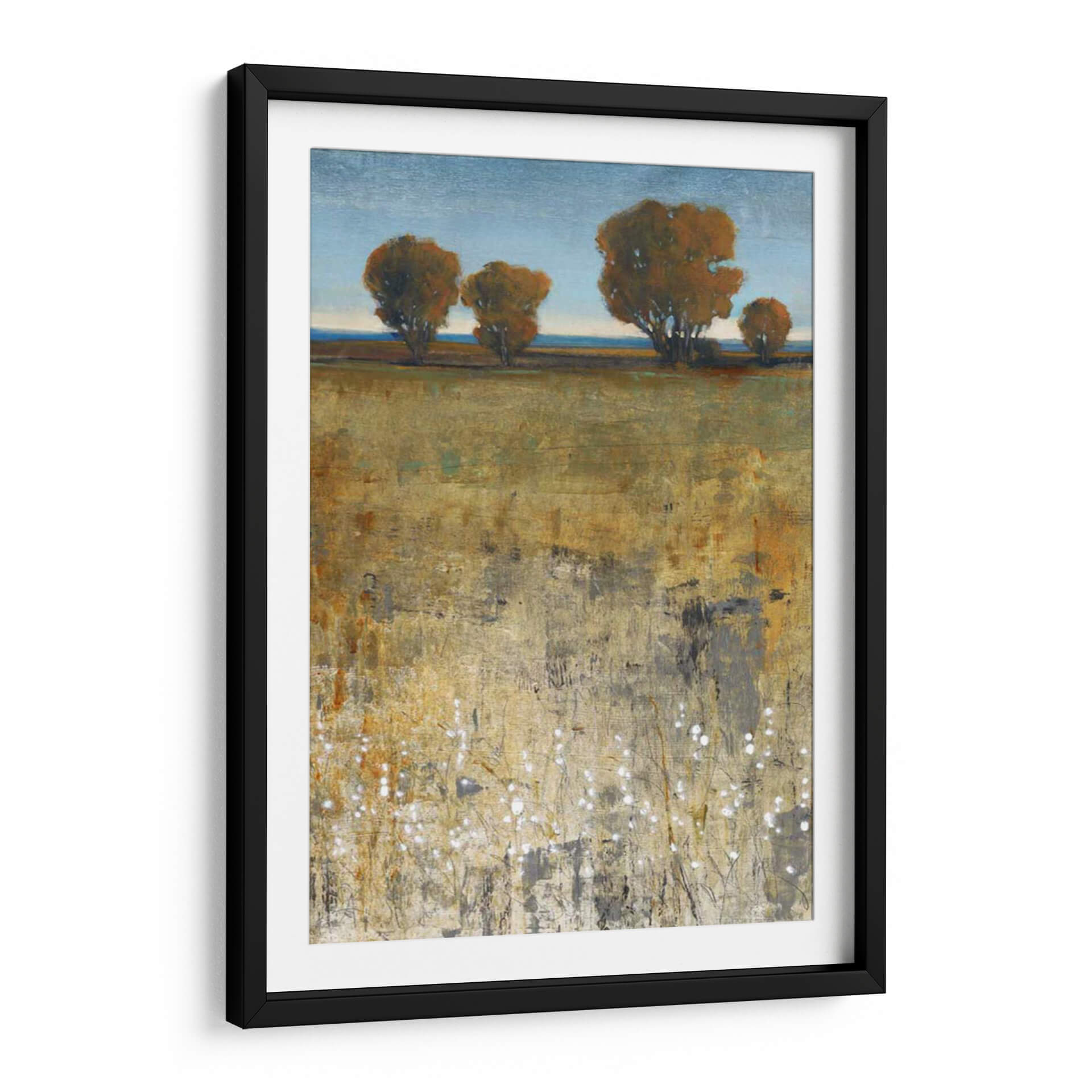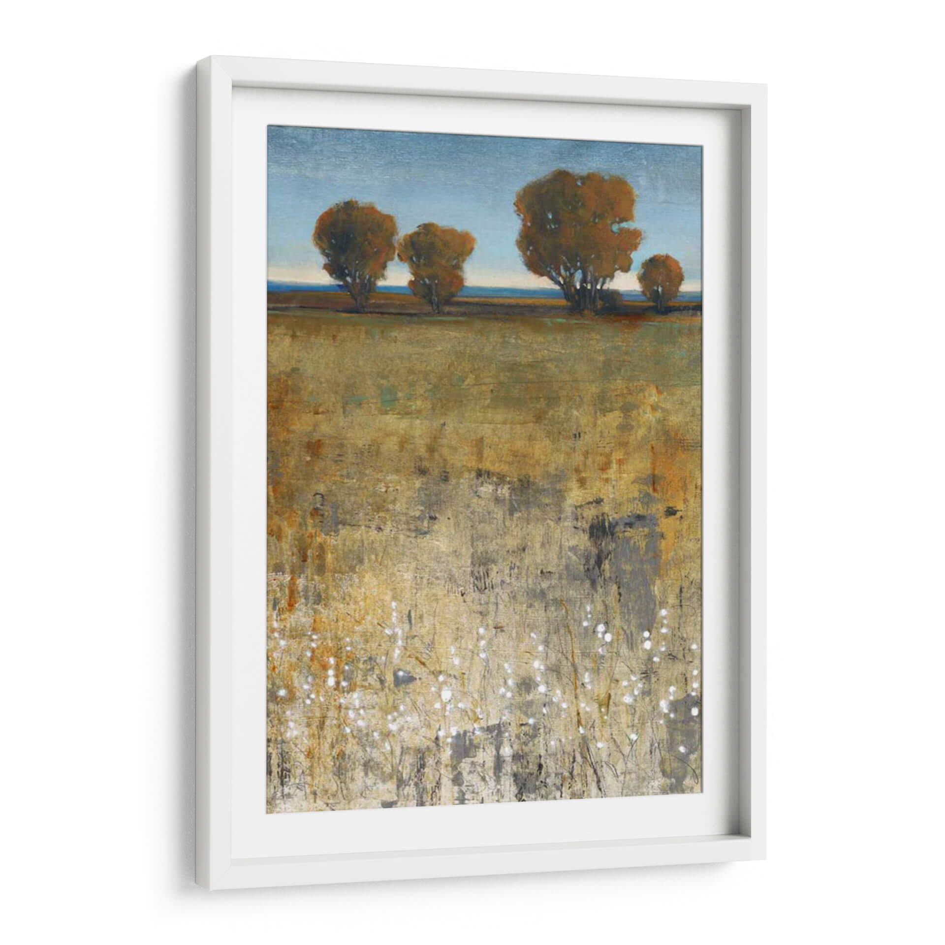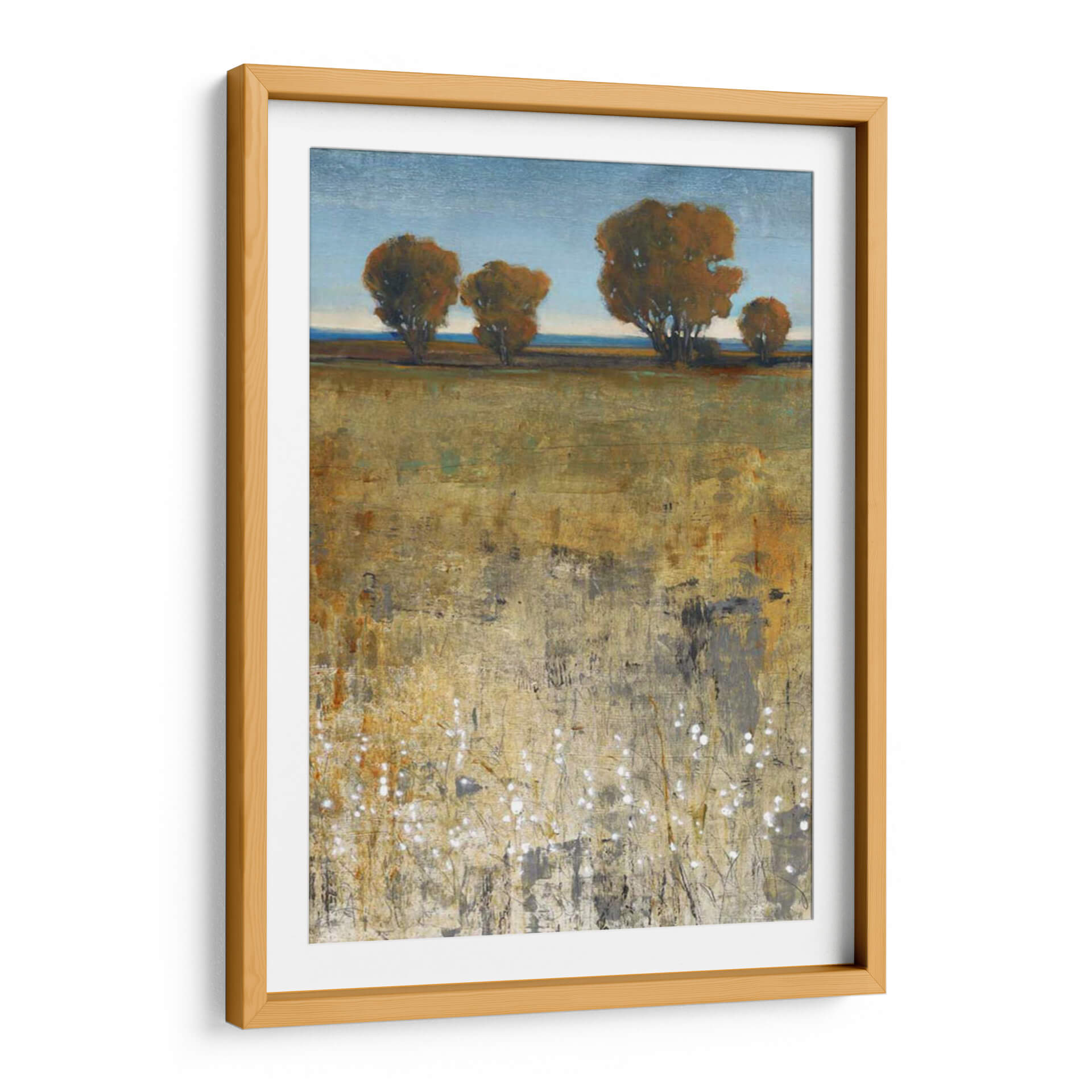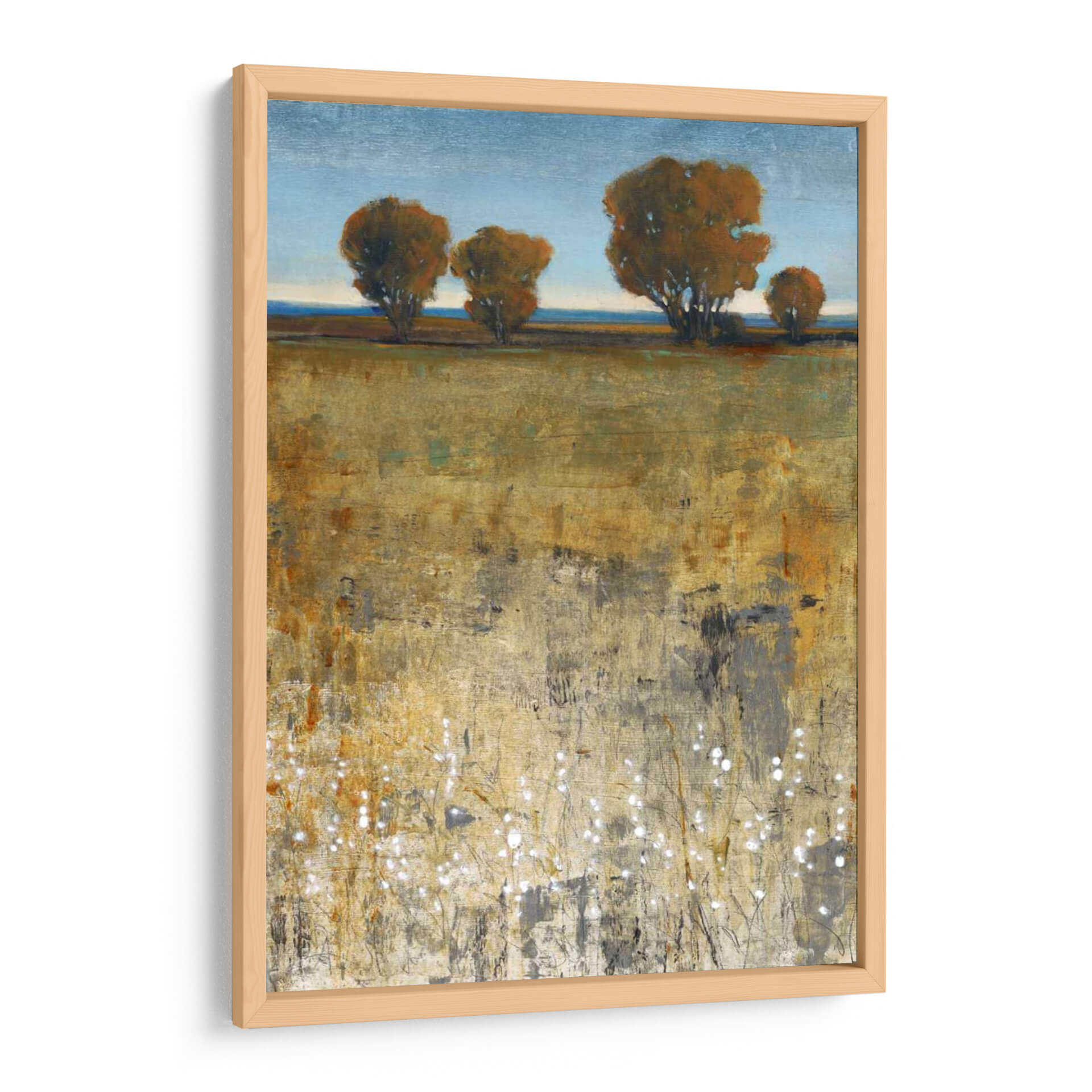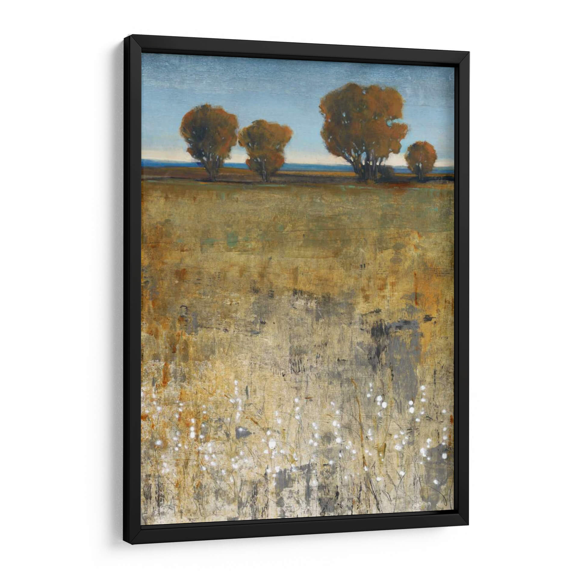 Sumérgete en la serena belleza de "Árboles Lejanos I", una obra de arte contemporáneo que captura la esencia de un paisaje otoñal con una técnica expresiva y texturizada. Los tonos tierra, ocres y dorados dominan la composición, evocando la calidez y la melancolía de la estación. La paleta se complementa con un cielo azul sereno y delicados toques de blanco en la maleza, creando un contraste sutil pero efectivo. La obra presenta una perspectiva atmosférica, con árboles silueteados en la distancia que se yerguen sobre un vasto campo, cuya textura rica y abstracta invita a la contemplación. Los pequeños puntos blancos dispersos en primer plano añaden un elemento de sorpresa y ligereza, rompiendo la monotonía del terreno. Este cuadro decorativo es ideal para infundir calma y sofisticación en cualquier espacio, desde una sala de estar moderna hasta un estudio o dormitorio tranquilo. Su estilo abstracto con reminiscencias paisajísticas permite que se integre a la perfección en diversas decoraciones, aportando profundidad y carácter. "Árboles Lejanos I" es más que una simple pieza decorativa; es una invitación a la reflexión y a la conexión con la naturaleza a través del arte.