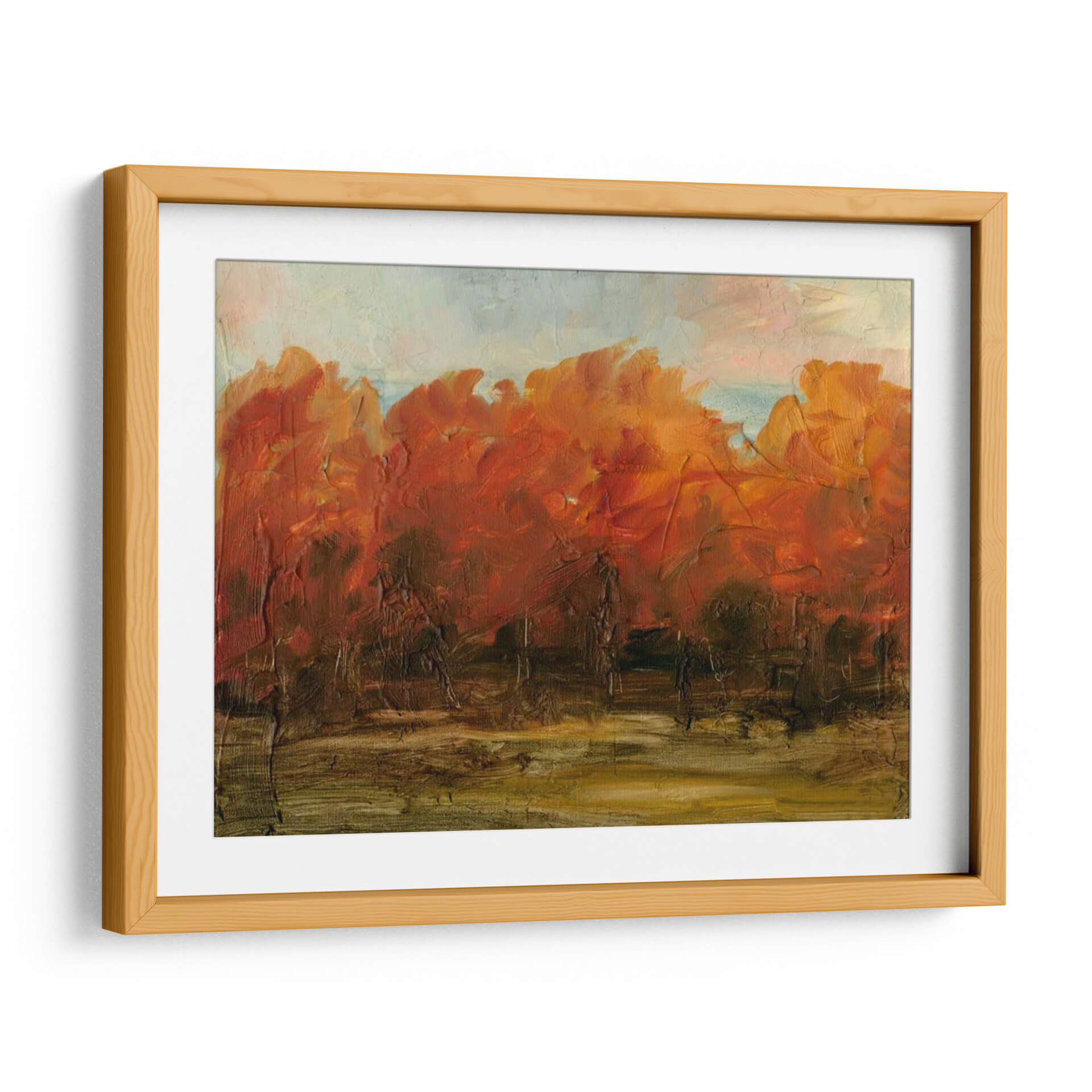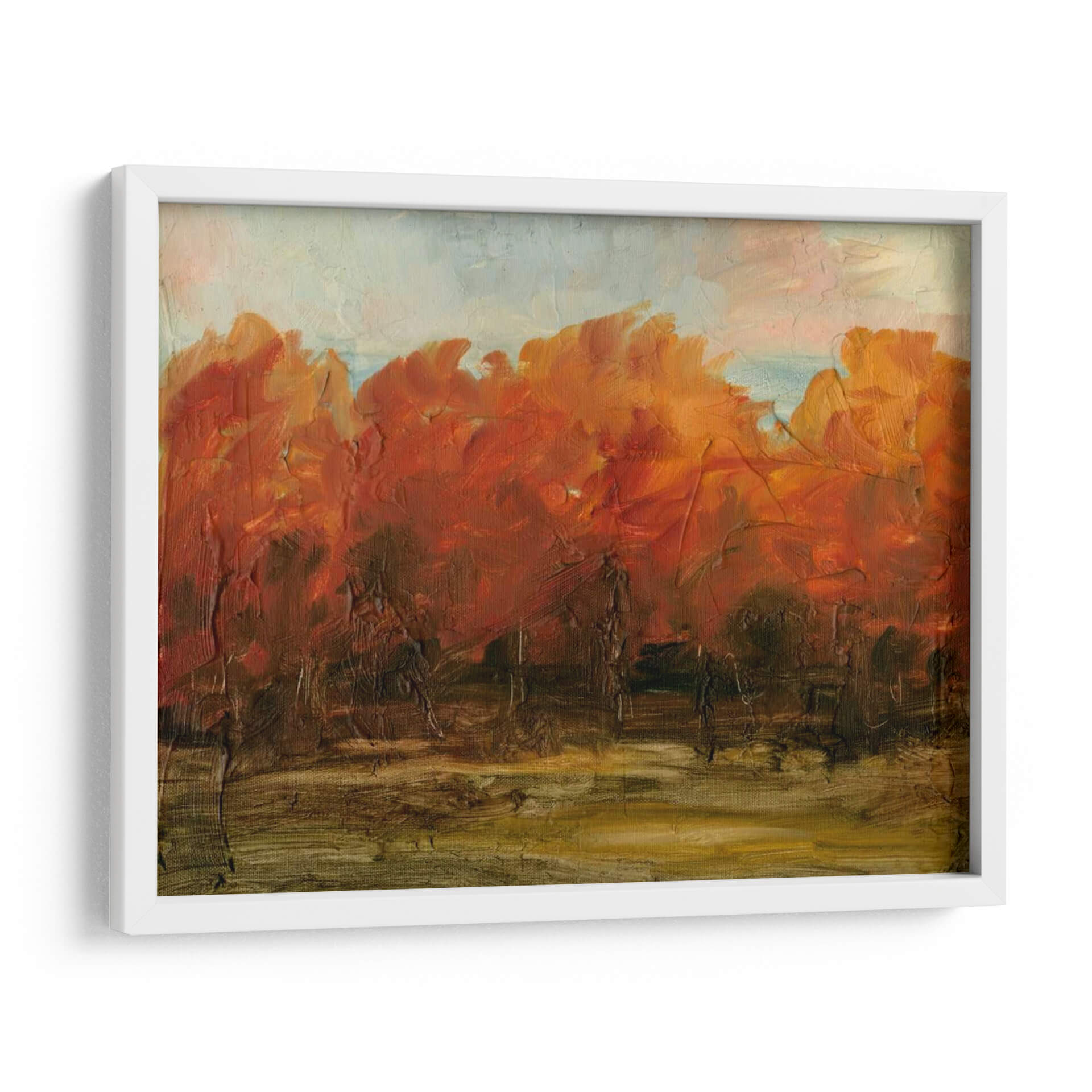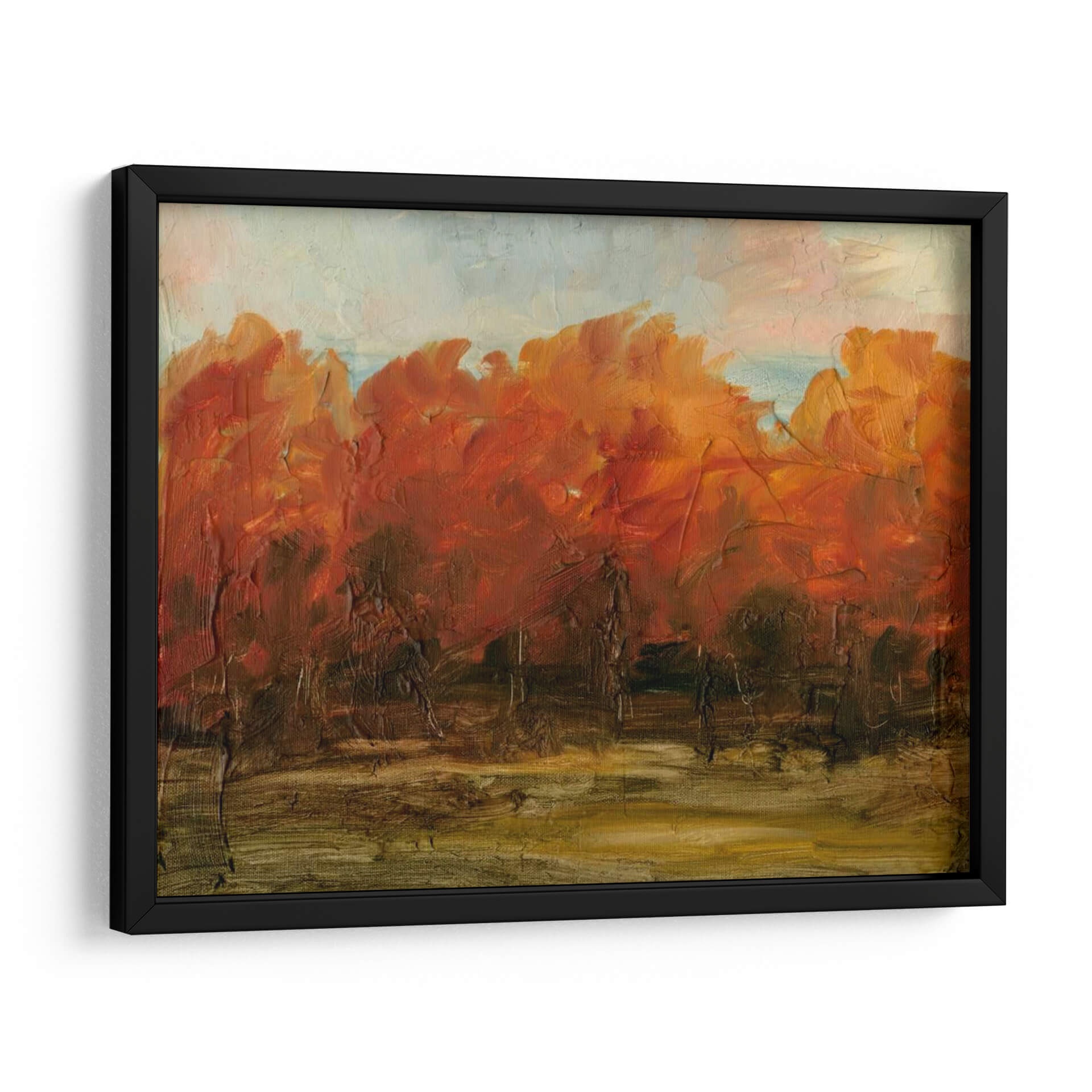 Sumérgete en la calidez otoñal con "Auburn Vista II", una obra de arte cautivadora del artista Ethan Harper. Este cuadro decorativo captura la esencia vibrante de un paisaje boscoso bañado por la luz dorada del atardecer. Predominan los tonos naranjas y rojizos intensos en el follaje, contrastando con los verdes profundos y marrones de la vegetación y el suelo, creando una paleta de colores tierra rica y acogedora. La técnica impresionista, con pinceladas audaces y texturizadas, evoca una sensación de movimiento y profundidad, invitando al espectador a sentir la brisa fresca del otoño. La composición, que se centra en una vista panorámica de árboles frondosos, transmite una atmósfera de serenidad y conexión con la naturaleza. "Auburn Vista II" es ideal para añadir un toque de calidez y sofisticación a tu sala de estar, comedor u oficina, transformando cualquier espacio en un refugio acogedor y lleno de vida. Un detalle perfecto para amantes de la naturaleza y el arte contemporáneo.