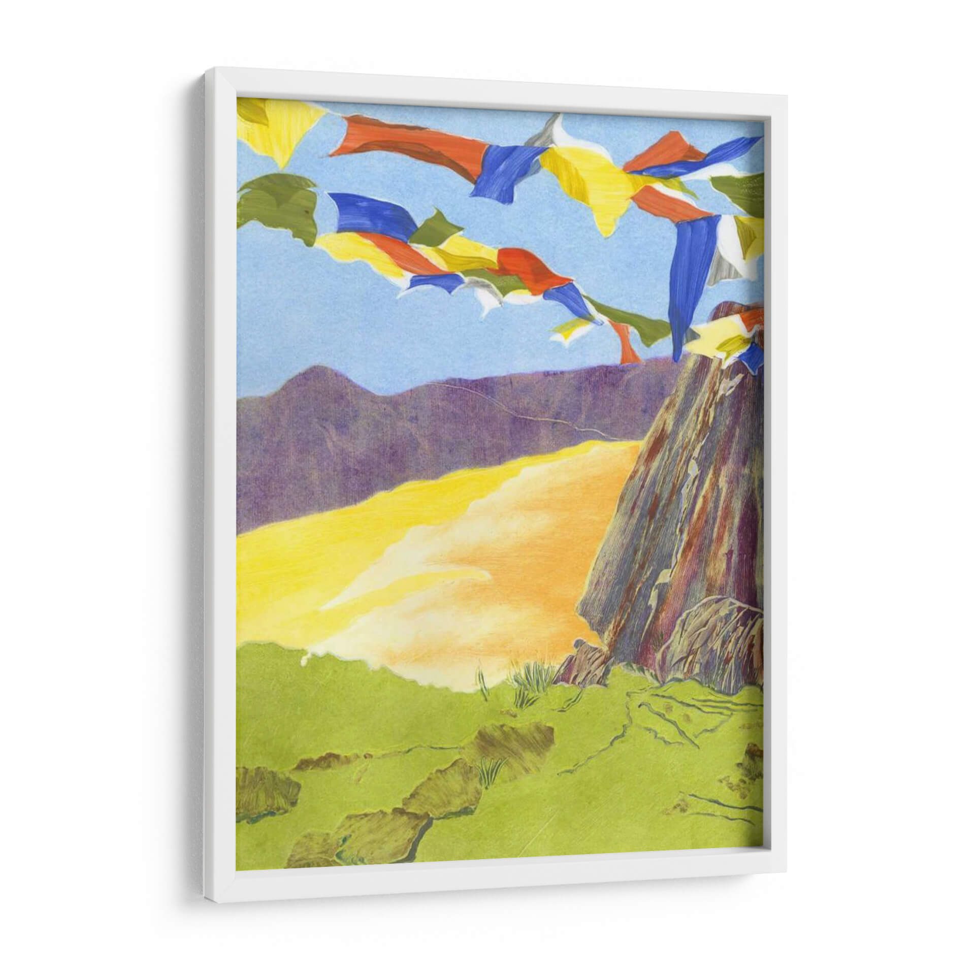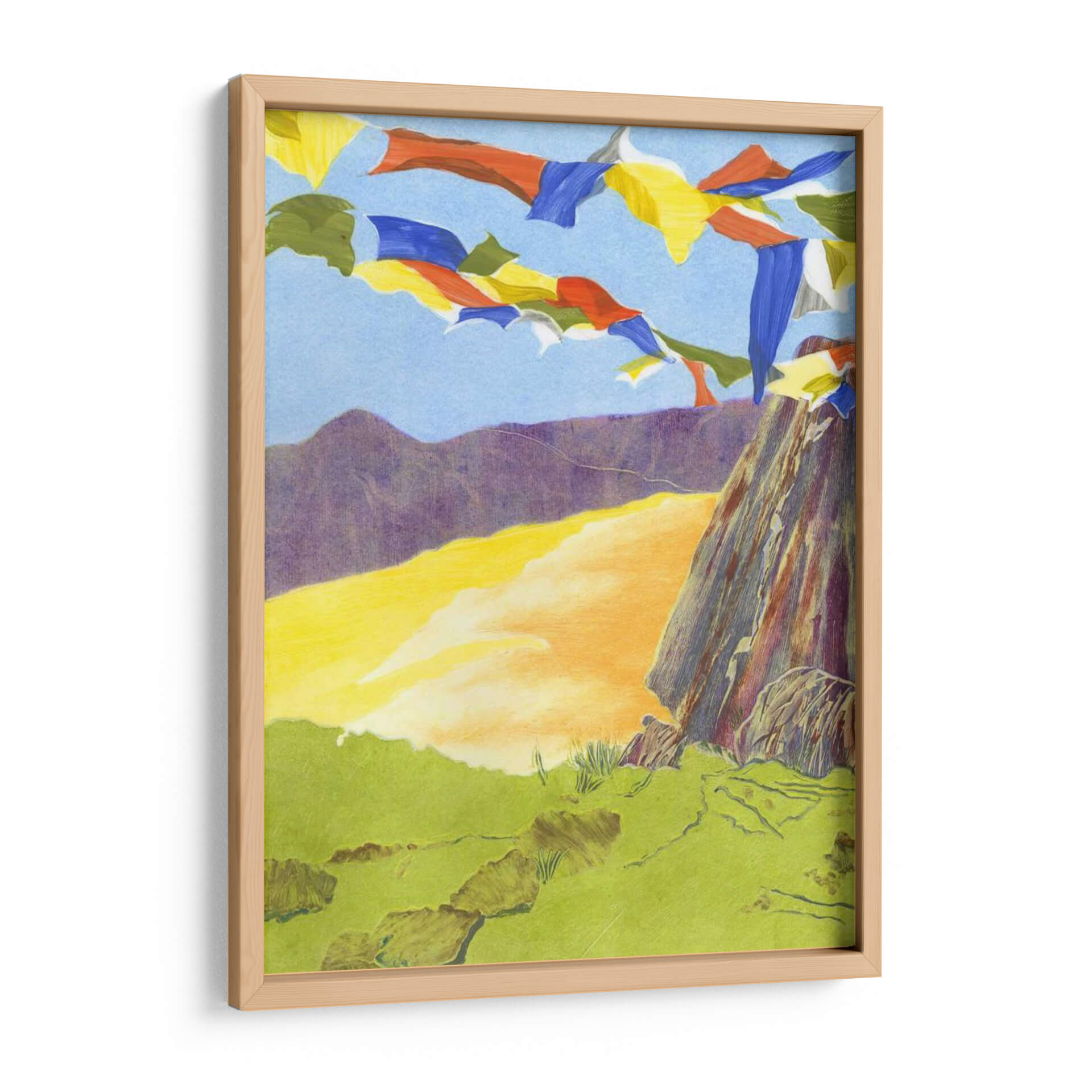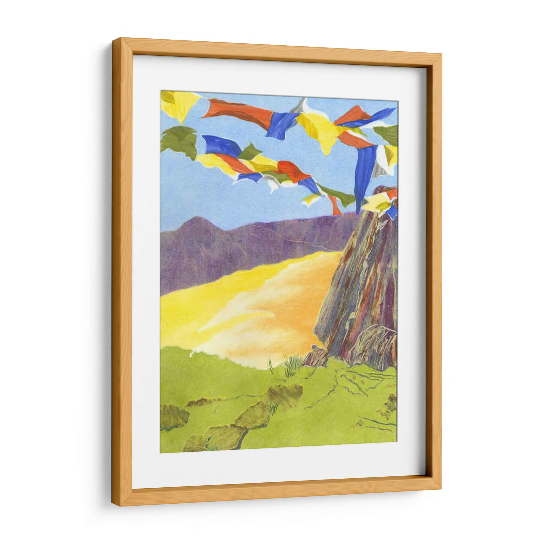 Embárcate en un viaje visual con "Banderas de Oración III", una obra de arte evocadora de Carolyn Roth que captura la esencia espiritual y la belleza etérea de las montañas. Esta pieza presenta una vibrante exhibición de banderas de oración ondeando al viento bajo un cielo azul claro, enmarcando un paisaje sereno de colinas verdes y púrpuras que se desvanecen en la distancia. La luz del atardecer ilumina la escena con tonos dorados y anaranjados, creando un ambiente de paz y contemplación. La composición detallada, desde la textura rocosa de la montaña hasta la delicada hierba que adorna el primer plano, invita a la reflexión y la conexión. Es ideal para añadir un toque de serenidad y color a cualquier sala de estar, dormitorio o espacio de meditación. Este cuadro decorativo no solo embellece tu hogar, sino que también inspira calma y espiritualidad, convirtiéndose en un punto focal único que resuena con la tranquilidad y la majestuosidad de la naturaleza. Perfecto para quienes buscan arte que eleve el espíritu y añada profundidad a su decoración.