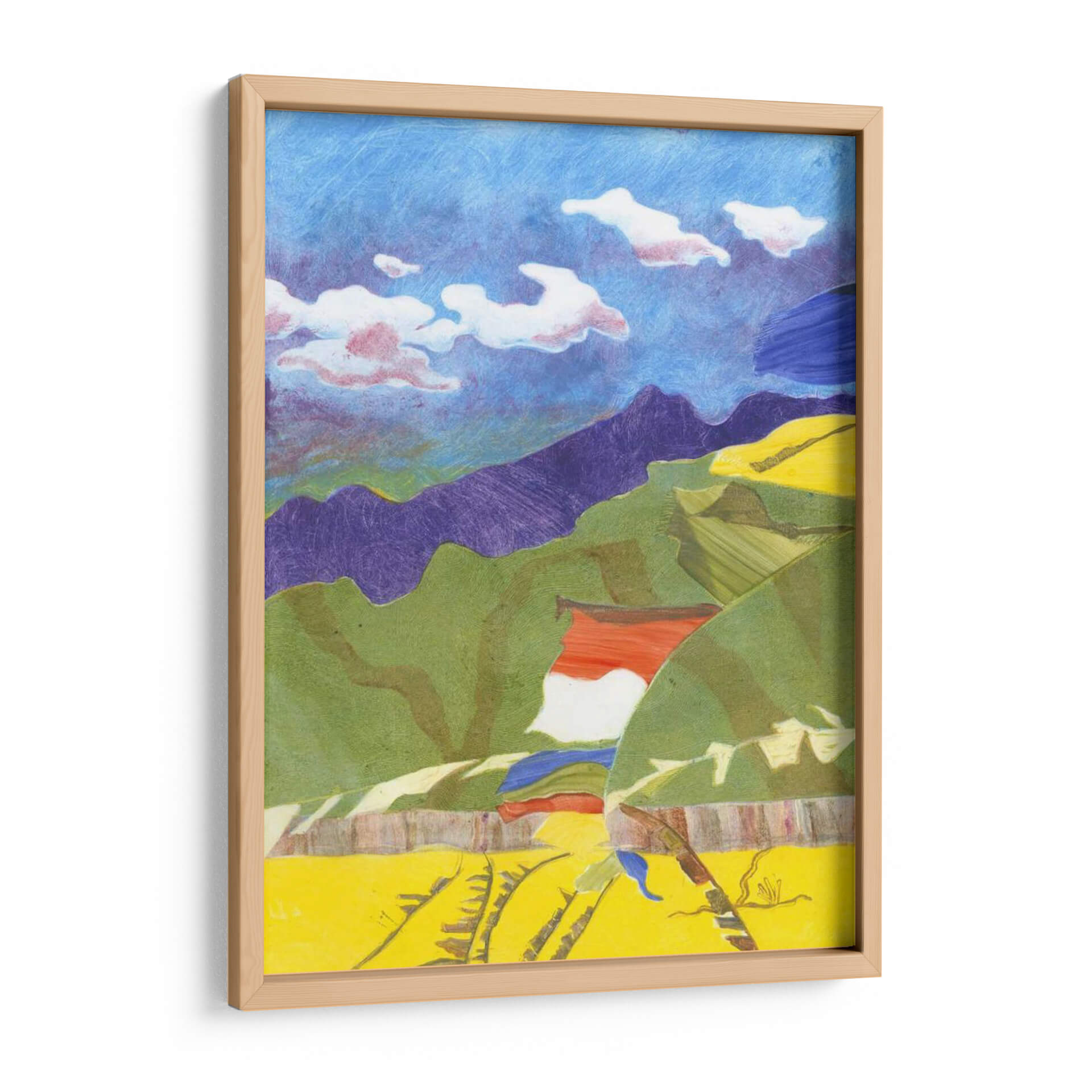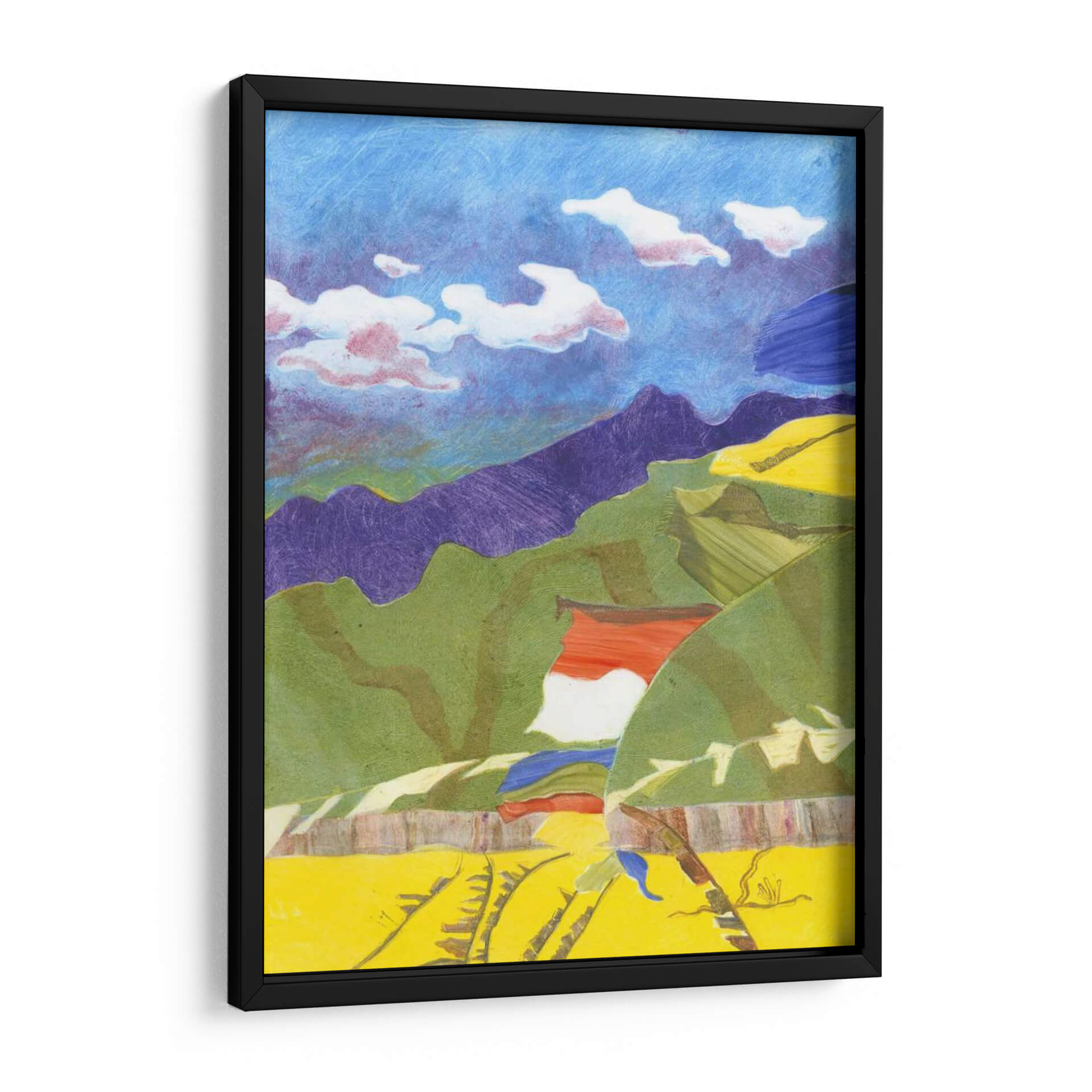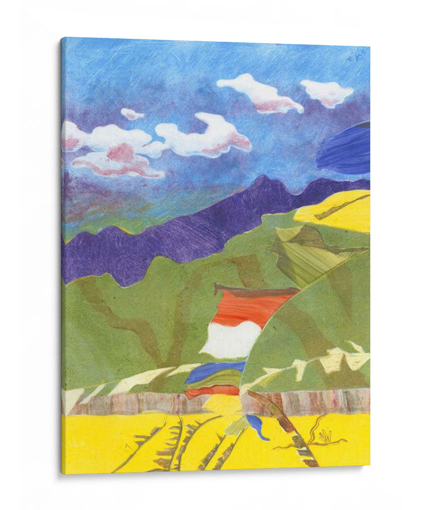 Sumérgete en la vibrante y evocadora obra de arte titulada "Banderas De Oración Vi" de Carolyn Roth. Esta pieza captura un paisaje de ensueño, donde las montañas de tonos púrpuras y verdes se fusionan con un cielo azul brillante salpicado de nubes rosadas y blancas. La composición está dominada por vibrantes campos de color amarillo que se extienden hasta el horizonte, salpicados de elementos que sugieren una celebración o un festival, como banderas ondeando al viento en rojo, blanco y azul. El estilo de Roth es distintivamente moderno y expresivo, utilizando pinceladas audaces y una paleta de colores que transmite una sensación de alegría, movimiento y espiritualidad. Cada elemento está representado con una textura rica y una perspectiva única, creando una obra que invita a la contemplación y la inspiración. "Banderas De Oración Vi" es ideal para añadir un toque de color y energía positiva a cualquier espacio, ya sea una sala de estar, un comedor o un estudio. Su naturaleza abstracta y su atmósfera espiritual la convierten en una pieza de conversación perfecta para aquellos que buscan arte que inspire y eleve el espíritu.