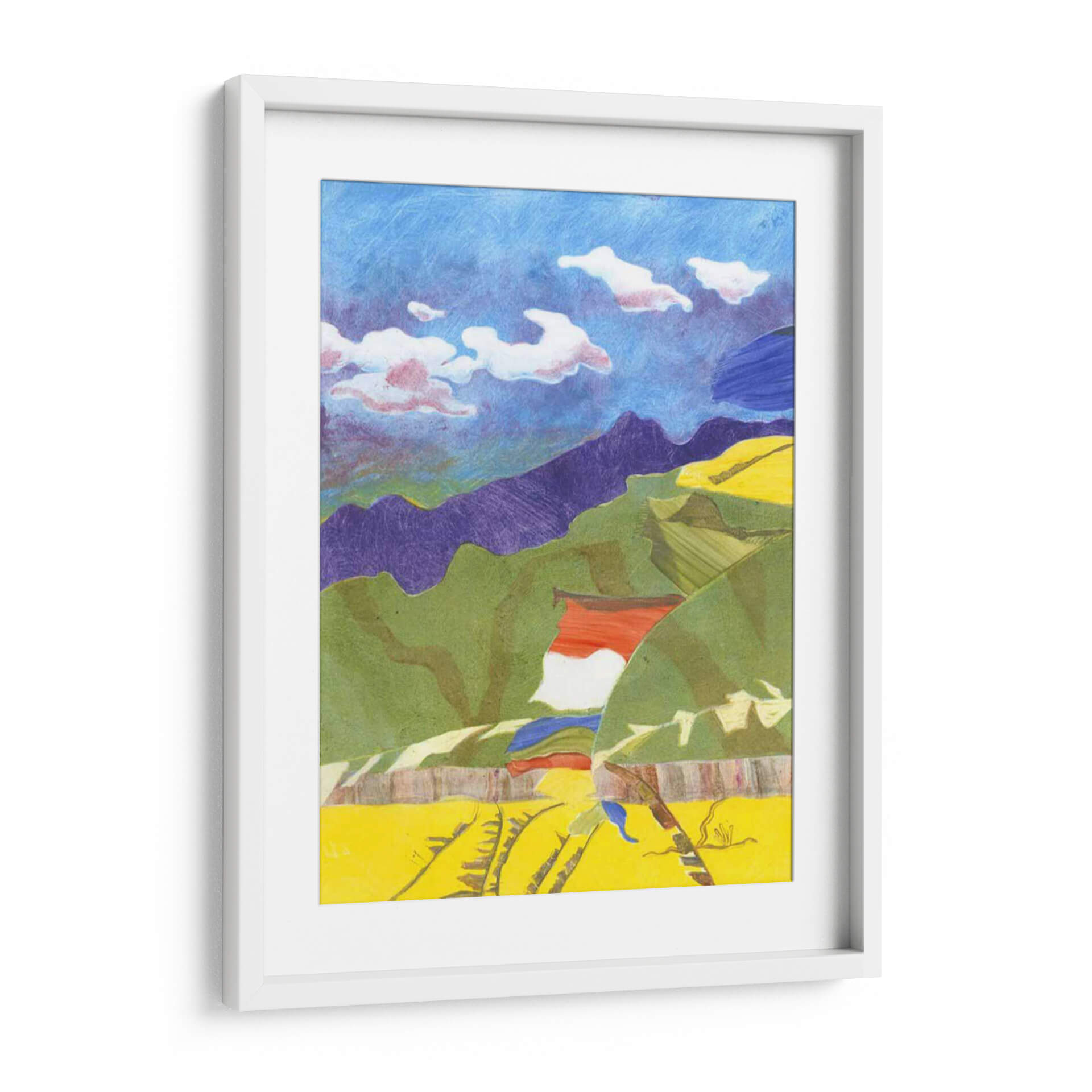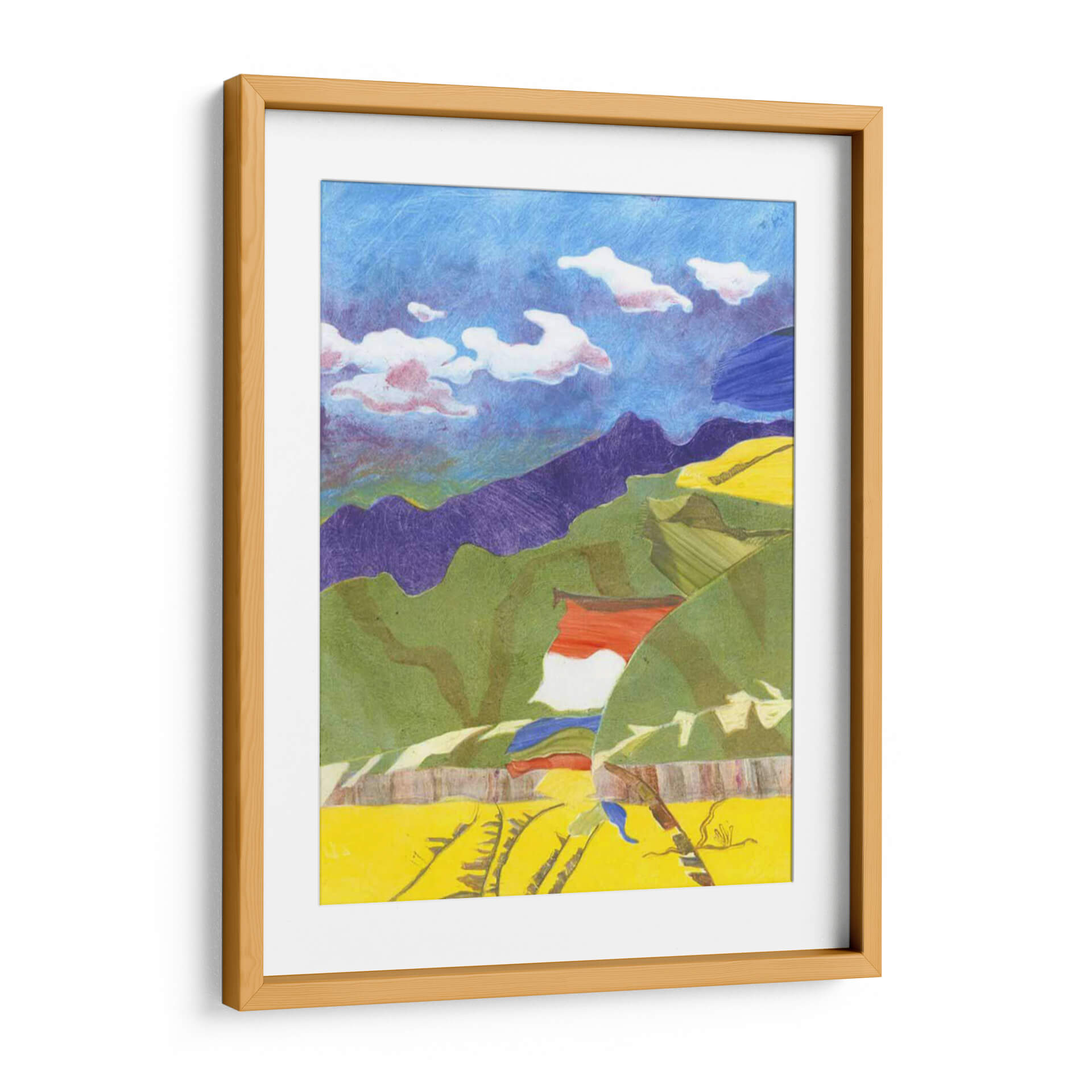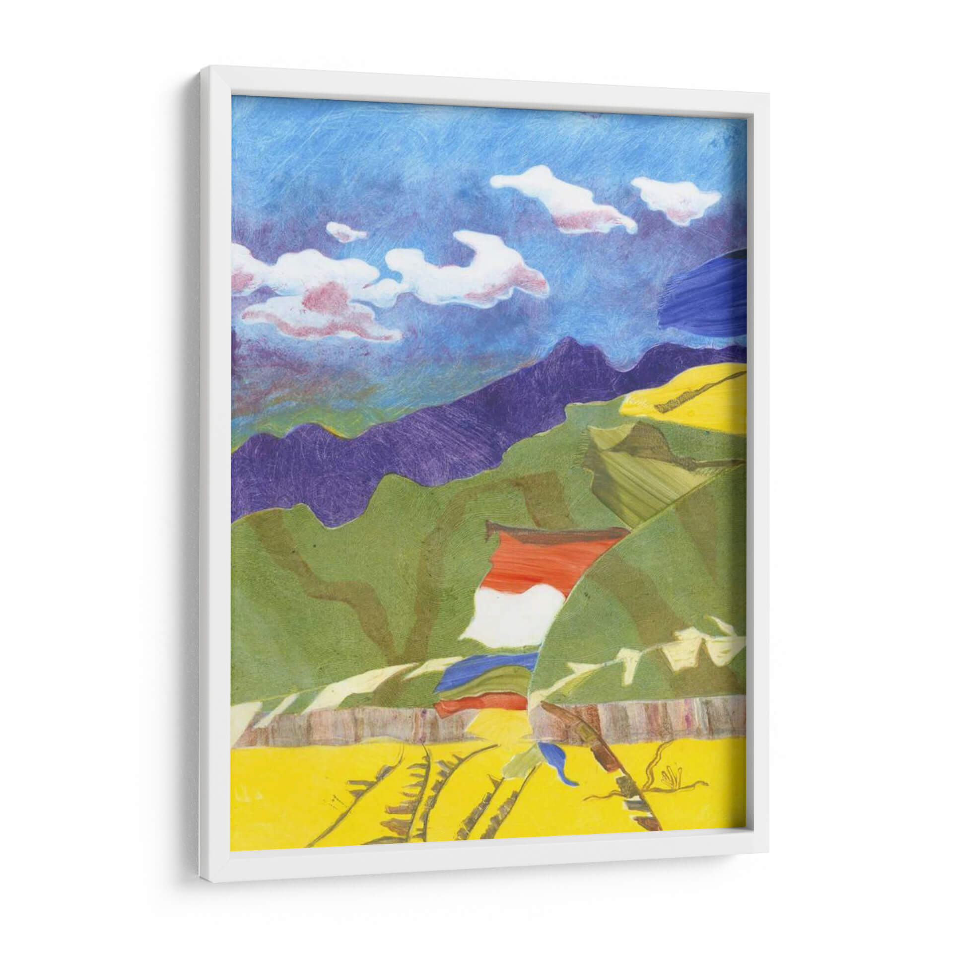 Sumérgete en la vibrante y evocadora obra de arte titulada "Banderas De Oración Vi" de Carolyn Roth. Esta pieza captura un paisaje de ensueño, donde las montañas de tonos púrpuras y verdes se fusionan con un cielo azul brillante salpicado de nubes rosadas y blancas. La composición está dominada por vibrantes campos de color amarillo que se extienden hasta el horizonte, salpicados de elementos que sugieren una celebración o un festival, como banderas ondeando al viento en rojo, blanco y azul. El estilo de Roth es distintivamente moderno y expresivo, utilizando pinceladas audaces y una paleta de colores que transmite una sensación de alegría, movimiento y espiritualidad. Cada elemento está representado con una textura rica y una perspectiva única, creando una obra que invita a la contemplación y la inspiración. "Banderas De Oración Vi" es ideal para añadir un toque de color y energía positiva a cualquier espacio, ya sea una sala de estar, un comedor o un estudio. Su naturaleza abstracta y su atmósfera espiritual la convierten en una pieza de conversación perfecta para aquellos que buscan arte que inspire y eleve el espíritu.