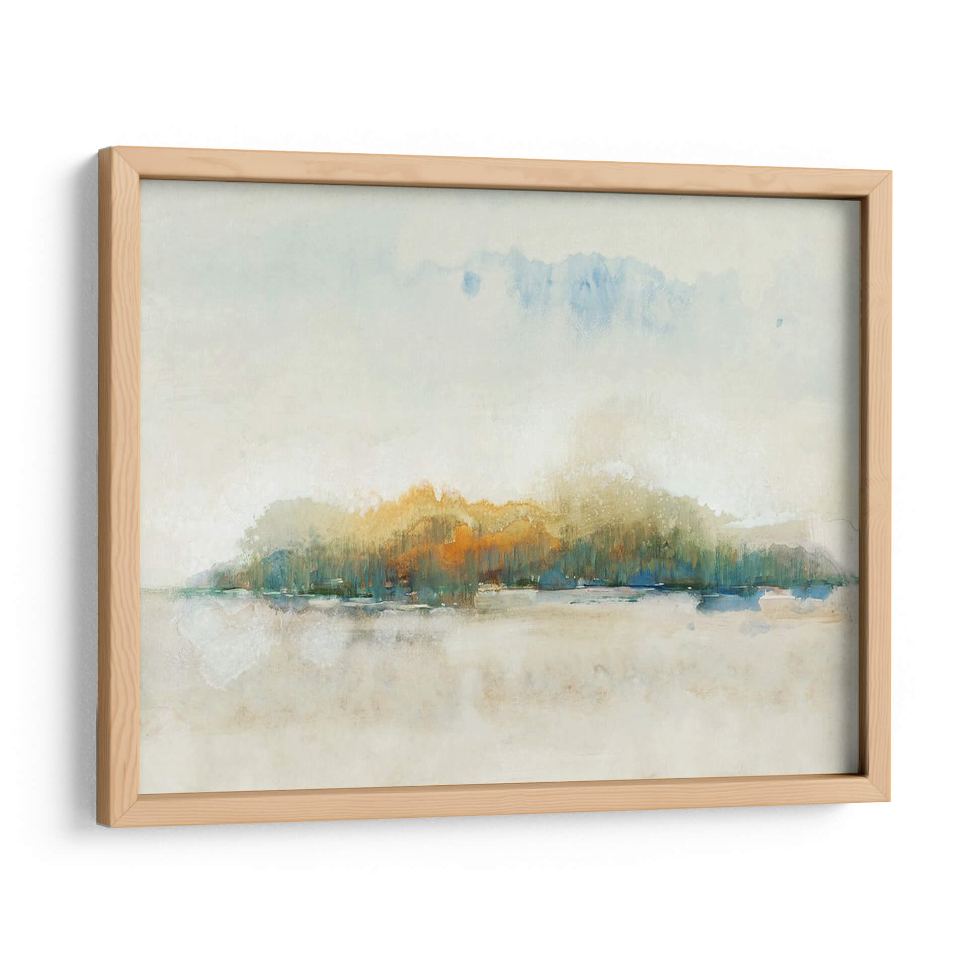 Sumérgete en la serena belleza de 'Bass Island II', una obra de arte contemporáneo que evoca la tranquilidad de un paisaje acuático bañado por la luz. El artista Tim O'Toole captura con maestría la esencia etérea de una isla o costa, donde las formas abstractas y las pinceladas fluidas se fusionan para crear una atmósfera de calma y contemplación. La paleta de colores, dominada por tonos suaves de beige, azul pálido y toques vibrantes de naranja y verde, recuerda a un amanecer o atardecer sobre el agua, creando un ambiente relajante y acogedor. Las sutiles capas de color y la composición minimalista invitan a la meditación, haciendo de este cuadro decorativo una adición perfecta para cualquier espacio que busque un toque de serenidad y sofisticación. Ideal para salones, dormitorios u oficinas, este cuadro abstracto se integra armoniosamente con diversos estilos decorativos, desde el moderno hasta el escandinavo, aportando una sensación de paz y conexión con la naturaleza. Deja que 'Bass Island II' transforme tu hogar en un refugio de tranquilidad, una ventana a un mundo de belleza sutil y evocadora. Una pieza de arte que habla en susurros, invitando a la reflexión y al disfrute visual.