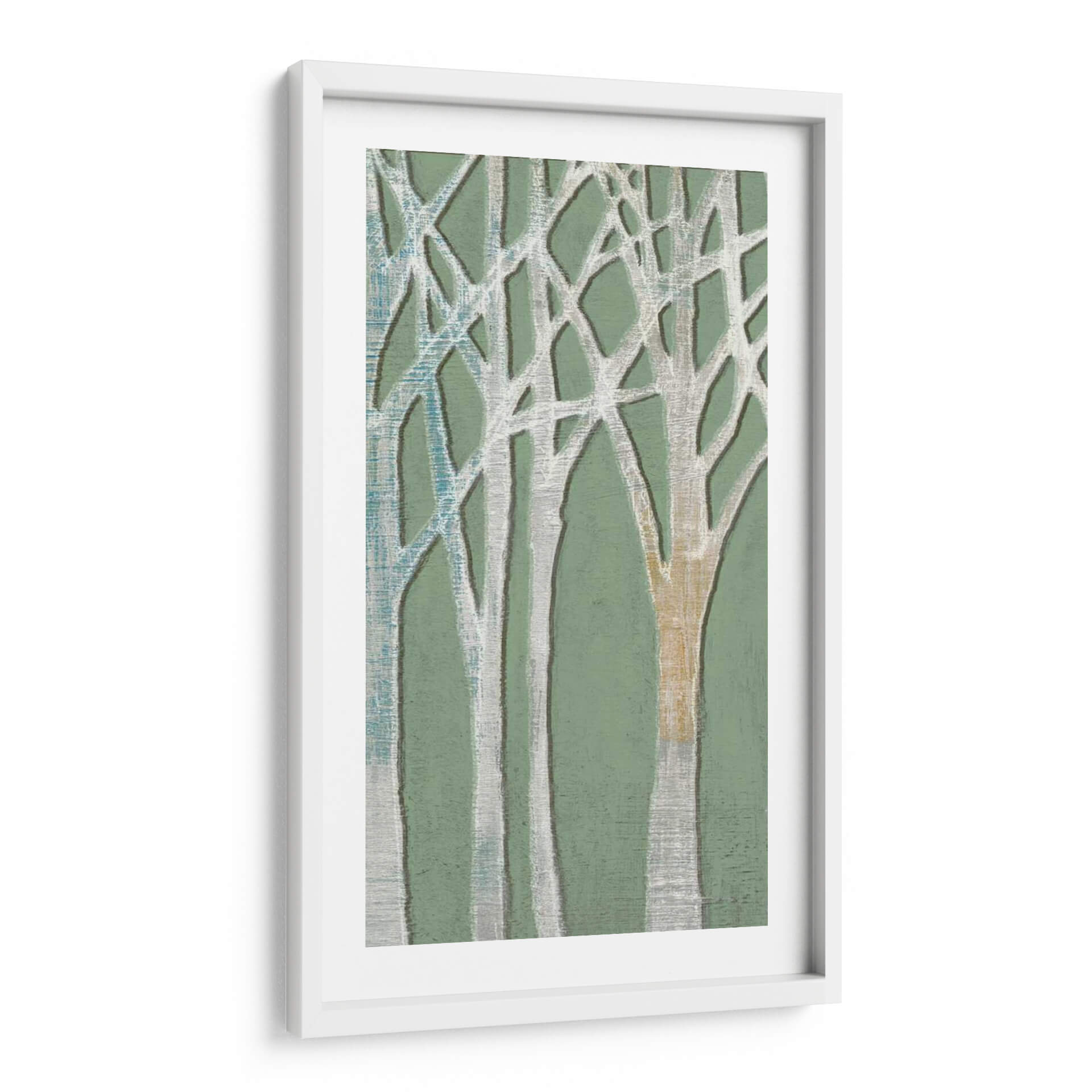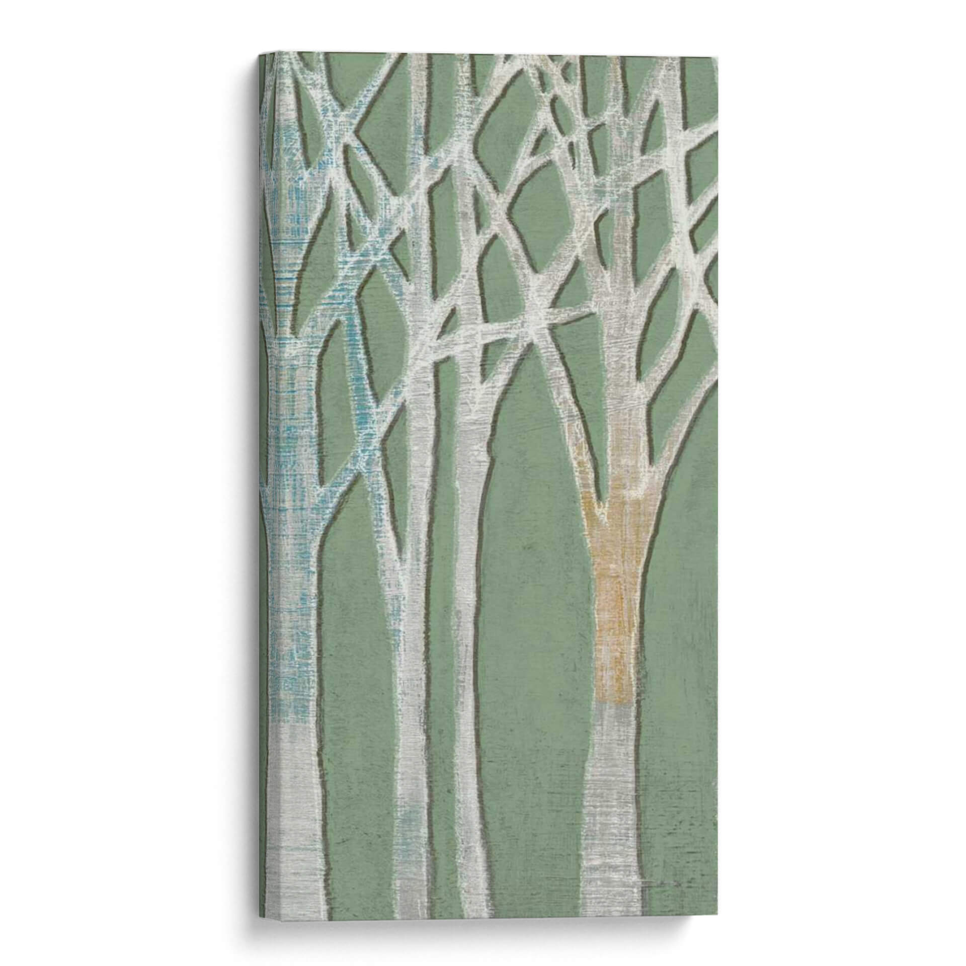 Sumérgete en la serena belleza de "Birchline Triptych I", una obra de arte contemporáneo que evoca la tranquilidad de un bosque de abedules. Jennifer Goldberger captura la esencia de la naturaleza con un enfoque estilizado y abstracto, presentando troncos de árboles que se entrelazan en una composición armoniosa. La paleta de colores, dominada por suaves tonos verdes y acentos de blanco, gris, azul y un cálido toque ocre, crea una atmósfera de calma y conexión con el entorno natural. Las sutiles texturas y las líneas orgánicas invitan a la contemplación, haciendo de este cuadro decorativo una pieza versátil para cualquier espacio. "Birchline Triptych I" es ideal para infundir serenidad en tu dormitorio, aportar un toque de naturaleza a tu sala de estar o añadir un elemento de calma a tu oficina. Su diseño abstracto permite que se integre a la perfección en decoraciones modernas, minimalistas o bohemias, convirtiéndose en un punto focal que inspira paz y equilibrio. Descubre cómo esta obra puede transformar tu hogar en un santuario de tranquilidad y estilo, ofreciendo una ventana a la naturaleza reinventada por el arte contemporáneo.