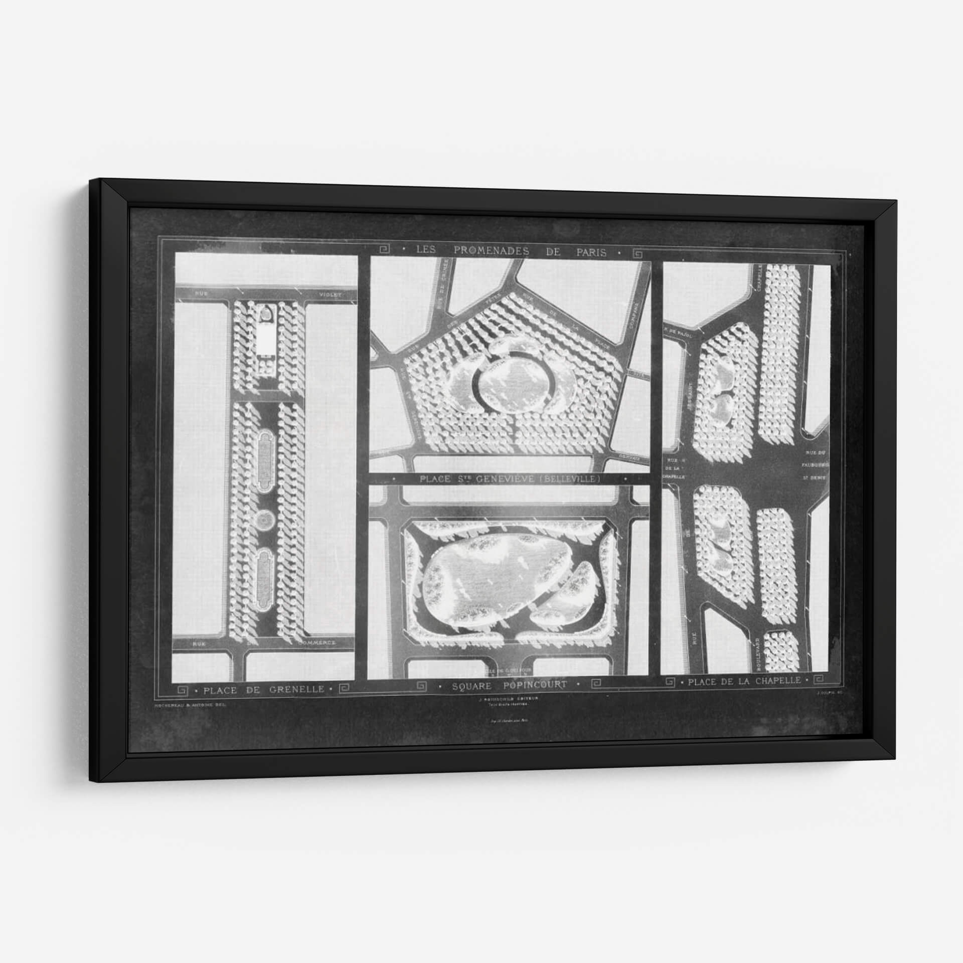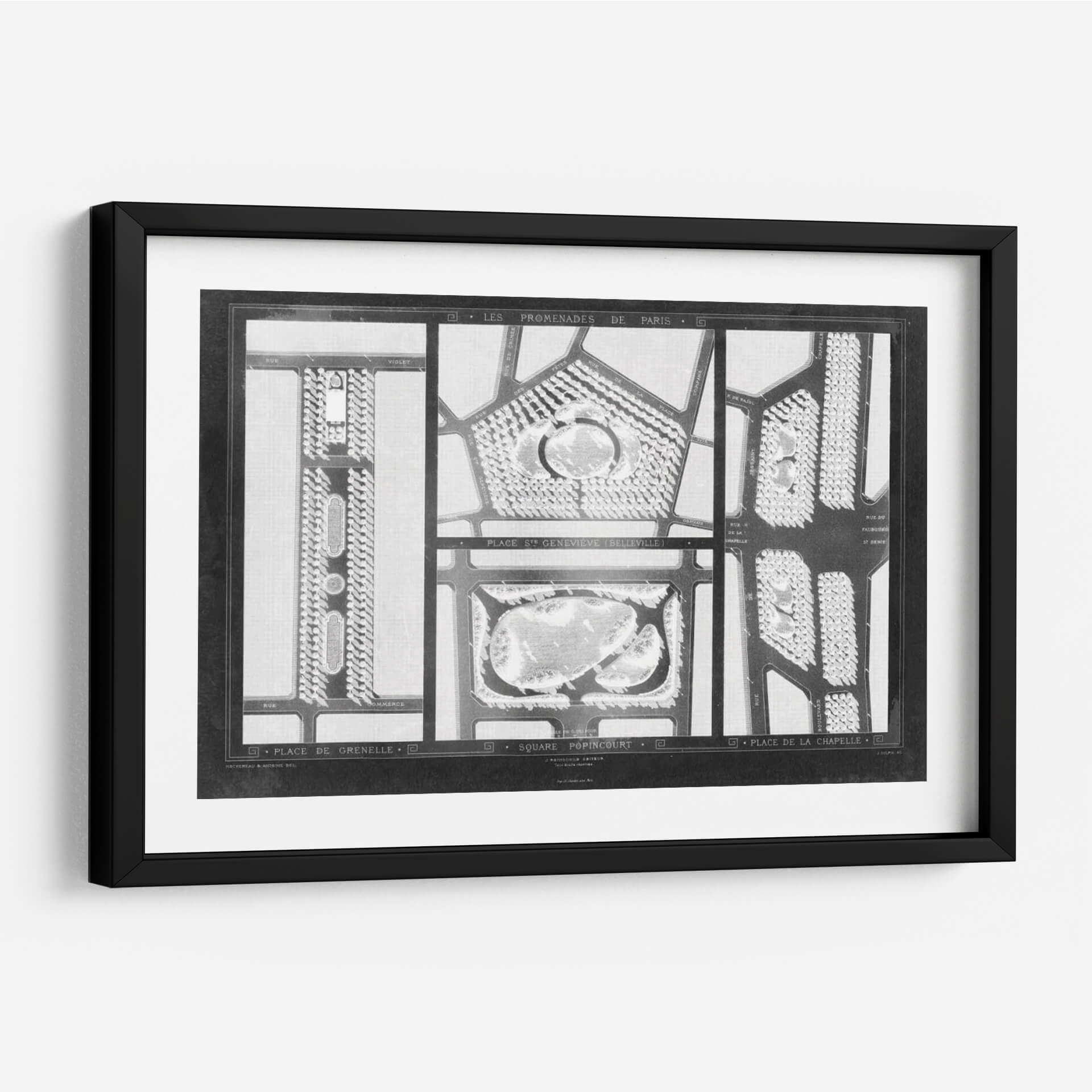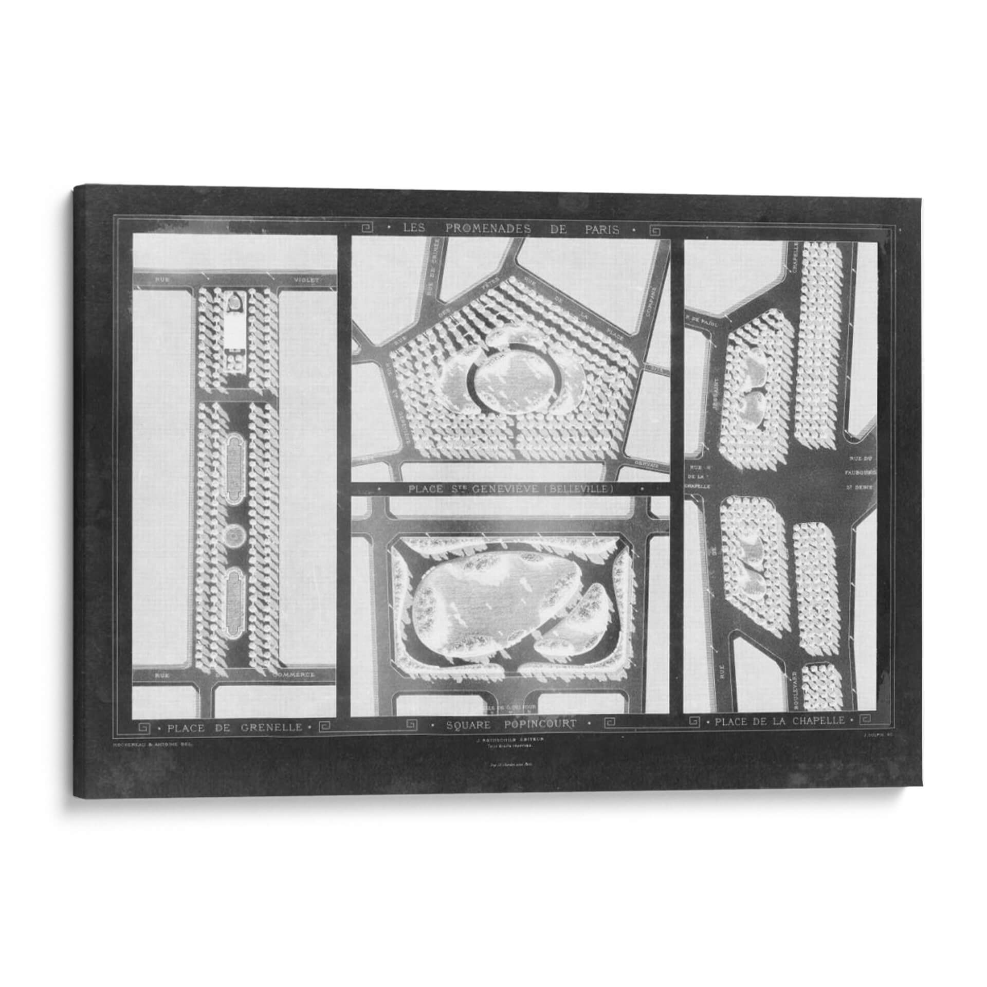 Descubre el encanto histórico y la elegancia urbana con este cuadro decorativo inspirado en planos arquitectónicos de "Les Promenades de Paris". Esta obra presenta una detallada representación en blanco y negro de plazas y jardines parisinos, capturando la esencia de la planificación urbana y el diseño paisajístico de antaño. Los intrincados patrones de caminos, árboles y espacios abiertos evocan una sensación de orden y belleza simétrica, invitando a la contemplación y al descubrimiento. Los tonos monocromáticos y la composición gráfica la convierten en una pieza versátil, ideal para añadir un toque de sofisticación intelectual y un aire vintage a cualquier estancia. Perfecta para salones, estudios u oficinas que busquen un punto focal distintivo, este cuadro decorativo transforma tu espacio en una galería de historia urbana y arte arquitectónico. Su diseño atemporal y su estética depurada complementan a la perfección decoraciones modernas, clásicas o eclécticas, aportando profundidad y carácter a tu hogar u oficina. Sumérgete en la belleza de la estructura y el diseño con esta pieza única que celebra la herencia de los paseos parisinos, añadiendo un toque de distinción y conversación a tu decoración.