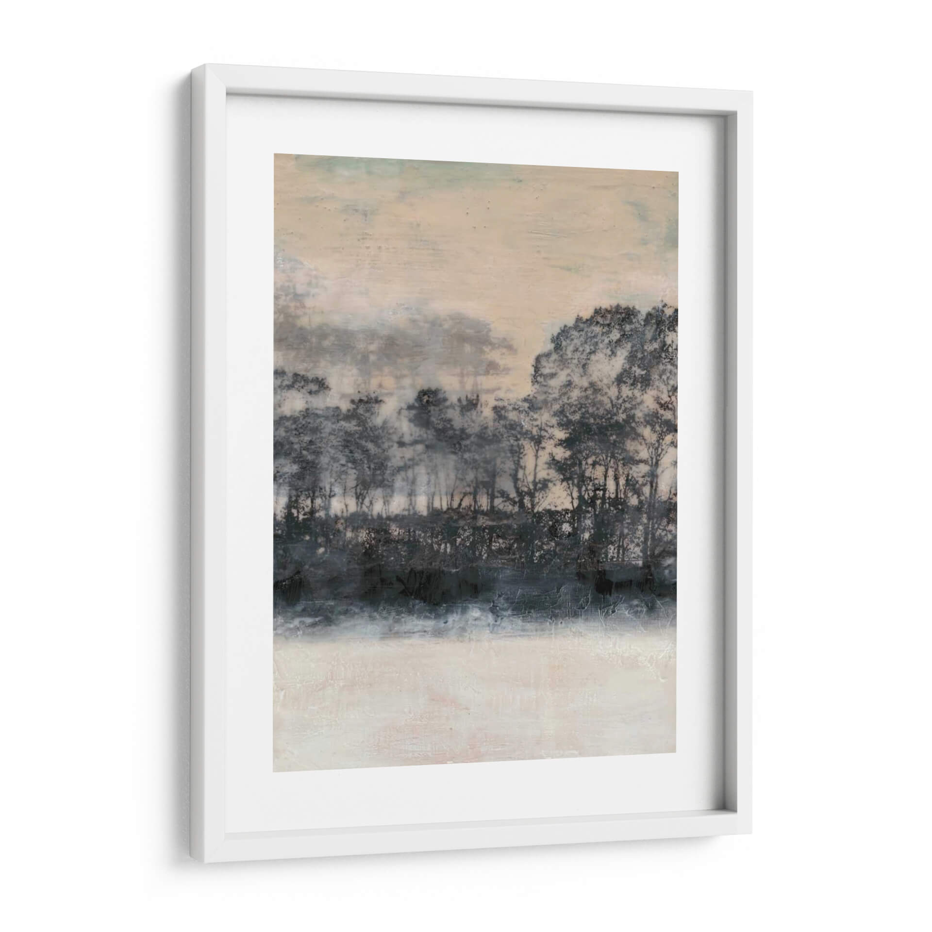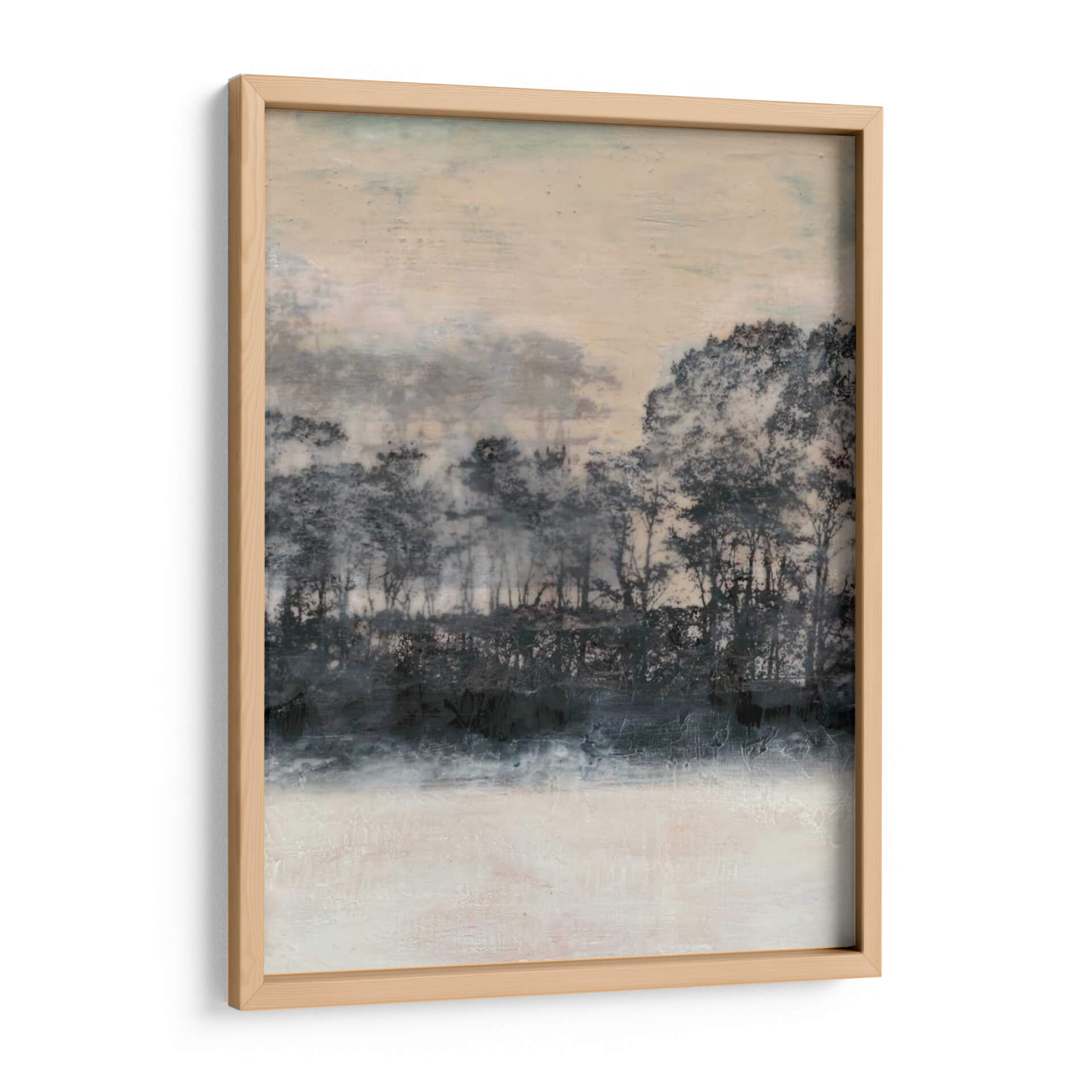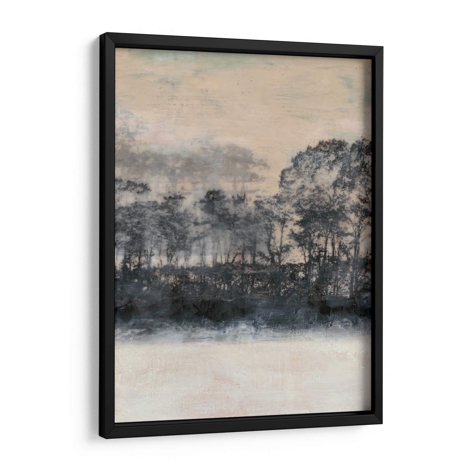 Sumérgete en la serena belleza de "Blush Treeline I", una cautivadora obra de arte de Jennifer Goldberger que evoca la tranquilidad de un bosque bañado por la luz del amanecer o el atardecer. La composición se centra en una línea de árboles estilizada, representada con pinceladas audaces y texturas ricas en tonos oscuros de carbón y azul profundo, que contrastan armónicamente con el suave resplandor del cielo en tonos melocotón y marfil. La parte inferior de la obra presenta un área luminosa y texturizada que sugiere un campo o un reflejo, añadiendo profundidad y una sensación de calma. Este cuadro decorativo abstracto de paisaje es perfecto para aquellos que buscan infundir serenidad y un toque de naturaleza etérea en su hogar u oficina. Su paleta de colores neutros y sofisticados lo convierte en una pieza versátil, ideal para complementar estilos de decoración modernos, minimalistas o bohemios, añadiendo un punto focal sutil pero impactante. Imagina cómo esta pieza transformará tu espacio, creando un ambiente de paz y contemplación, invitando a la reflexión y al disfrute de la belleza abstracta. "Blush Treeline I" es más que una obra de arte; es una invitación a la quietud y a la conexión con la naturaleza, capturada con maestría por Jennifer Goldberger.
