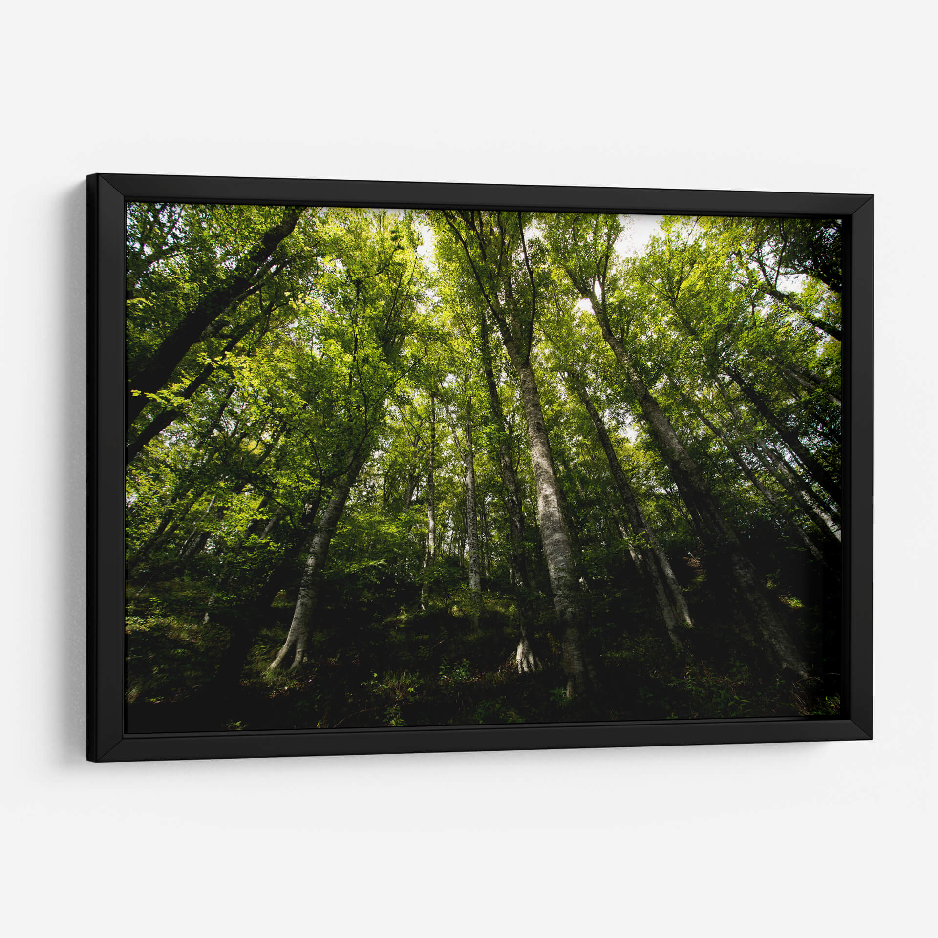 Sumérgete en la serenidad del bosque con esta cautivadora obra de arte. "Bosque" de Ariadne Contreras te transporta a un santuario natural bañado por la luz del sol que se filtra entre las frondosas copas de los árboles. La perspectiva ascendente crea una sensación de inmensidad y asombro, invitándote a perderte en la profundidad de este paisaje frondoso. Predominan los tonos verdes vibrantes y las sombras profundas, creando un contraste dinámico que aporta vida y realismo a la escena. Los troncos esbeltos y rectos de los árboles se elevan majestuosamente, guiando la mirada hacia el dosel luminoso, mientras que el sotobosque, densamente poblado, sugiere la riqueza y el misterio de la naturaleza salvaje. Esta pieza es ideal para añadir un toque de calma y conexión con la naturaleza a tu hogar u oficina. Su atmósfera pacífica y revitalizante la convierte en la elección perfecta para crear un rincón de tranquilidad en cualquier espacio, evocando la sensación de una caminata refrescante por un bosque exuberante. "Bosque" es más que una simple imagen; es una ventana a la tranquilidad y la belleza atemporal de la naturaleza.