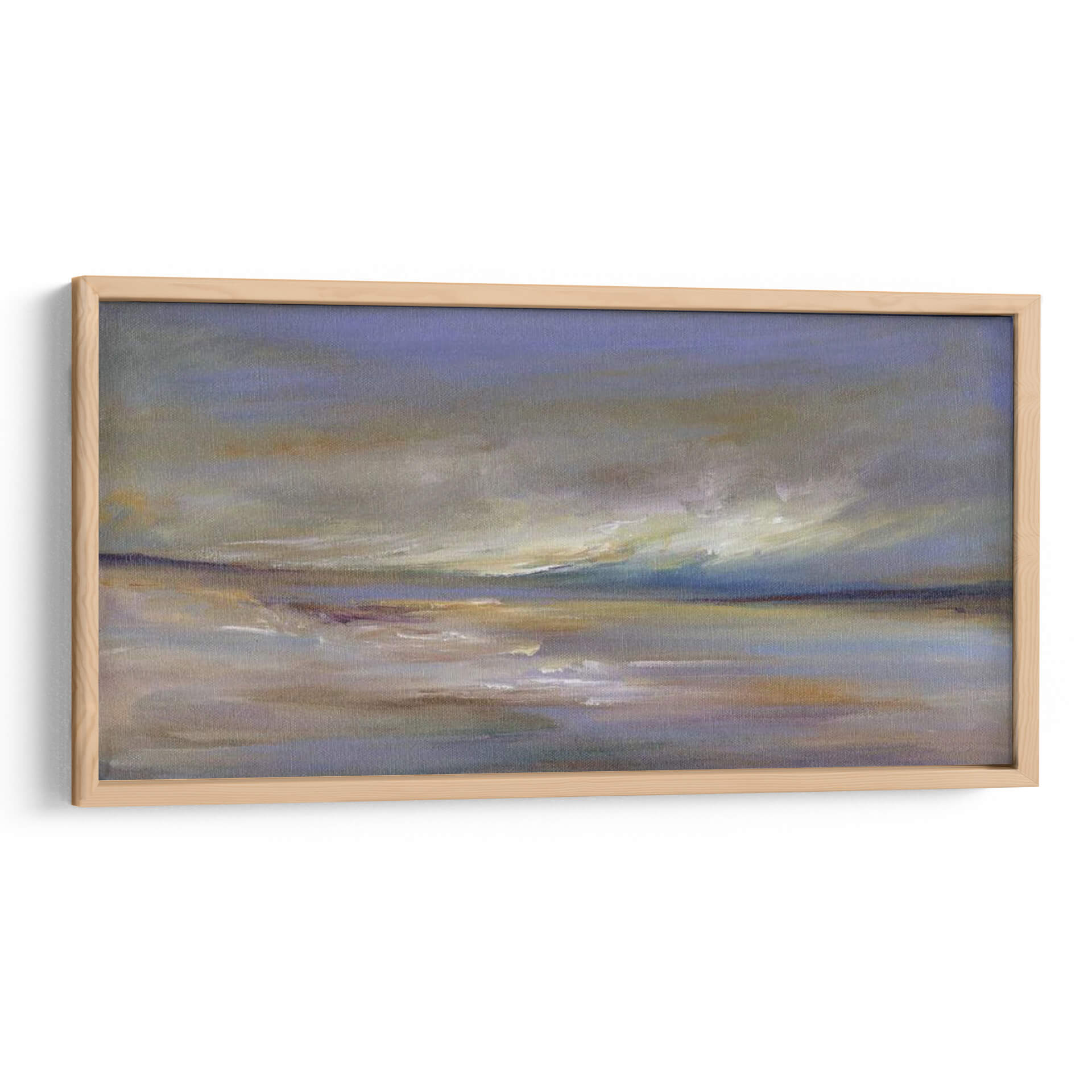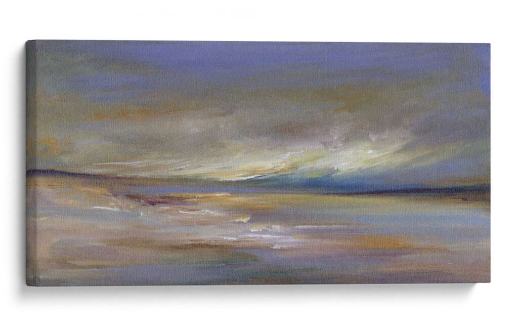 Sumérgete en la serenidad y la majestuosidad de "Brisa Marina", una obra de arte abstracta que evoca la tranquilidad del océano al atardecer. Sheila Finch, con su pincelada experta, captura la esencia efímera de la luz reflejada en las aguas, creando una atmósfera de calma y contemplación. La paleta de colores, que transita desde profundos azules y morados hasta cálidos ocres y blancos luminosos, genera un contraste sutil pero poderoso, invitando a la reflexión. Las pinceladas sueltas y la composición horizontal de este cuadro decorativo sugieren una vista panorámica de una costa serena, donde el cielo y el mar se fusionan en un abrazo etéreo. Es la pieza ideal para añadir un toque de paz y sofisticación a tu sala de estar, dormitorio u oficina, transformando cualquier espacio en un refugio de tranquilidad. Este cuadro abstracto contemporáneo es perfecto para aquellos que buscan arte que inspire serenidad y conecte con la naturaleza, aportando una sensación de amplitud y luz a tu decoración.