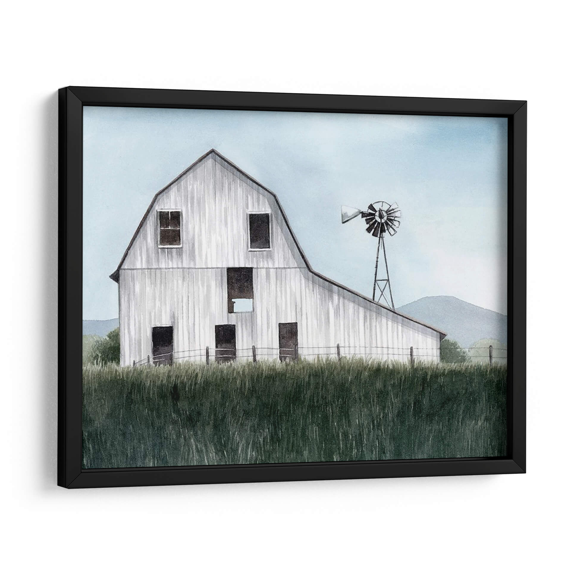 Sumérgete en la nostalgia y la serenidad del campo con "Bygone Gran I", una obra de arte que captura la esencia de un granero rústico y un molino de viento bajo un cielo sereno. Esta pieza, con su paleta de colores suaves y acuarelados, evoca una sensación de paz y tranquilidad, transportándote a un momento atemporal. La pintura presenta un granero de madera desgastada, con sus texturas y líneas verticales detalladas, flanqueado por un cielo azul claro y un paisaje de colinas ondulantes en la distancia. La hierba alta y frondosa en primer plano añade una capa de profundidad y naturalidad, mientras que el icónico molino de viento se alza como un guardián silencioso de tiempos pasados. El estilo, que recuerda a la acuarela clásica, ofrece una suavidad en los trazos y una delicadeza en los tonos que lo hacen ideal para cualquier espacio que busque un toque de encanto rural o una atmósfera relajante. "Bygone Gran I" es perfecto para añadir carácter a tu sala de estar, crear un ambiente de calma en tu dormitorio, o aportar una nota de autenticidad a tu oficina. Este cuadro decorativo es una invitación a la contemplación, un recordatorio de la belleza simple y perdurable de la vida en el campo, listo para embellecer tu hogar con su encanto atemporal y su atmósfera pacífica. Descubre la elegancia discreta de esta pieza y transforma tu espacio.