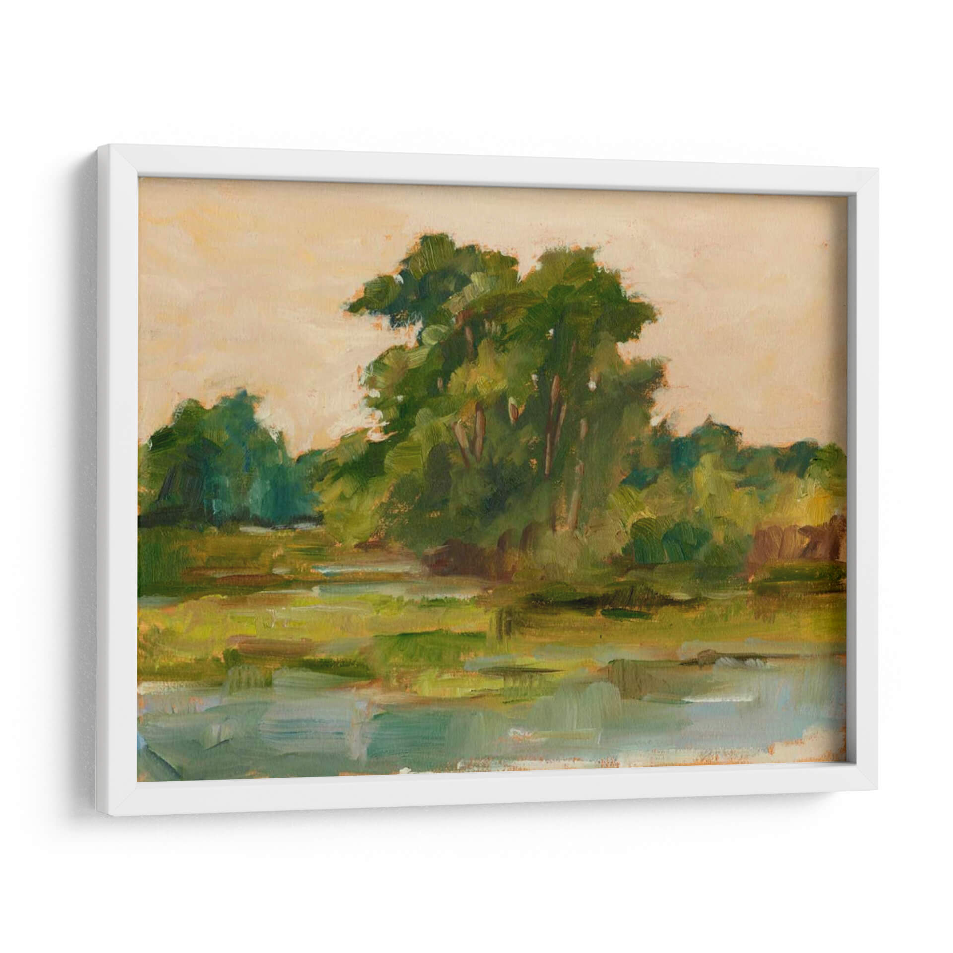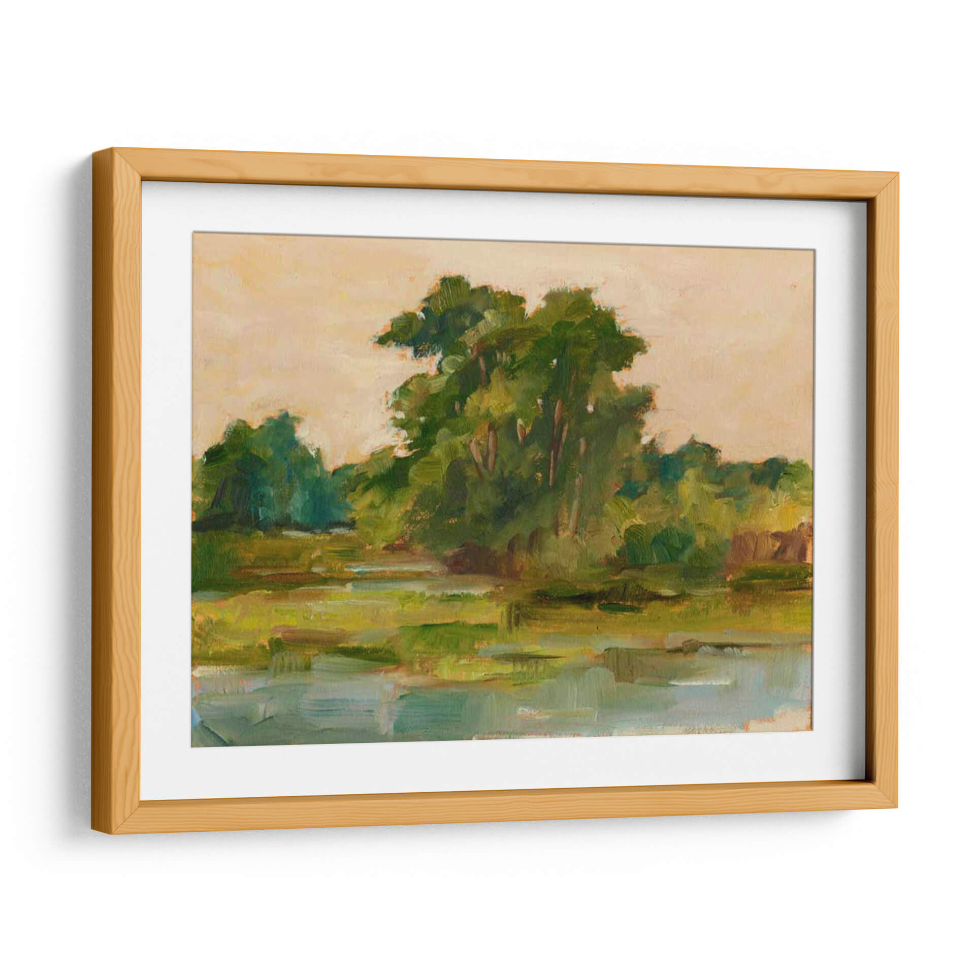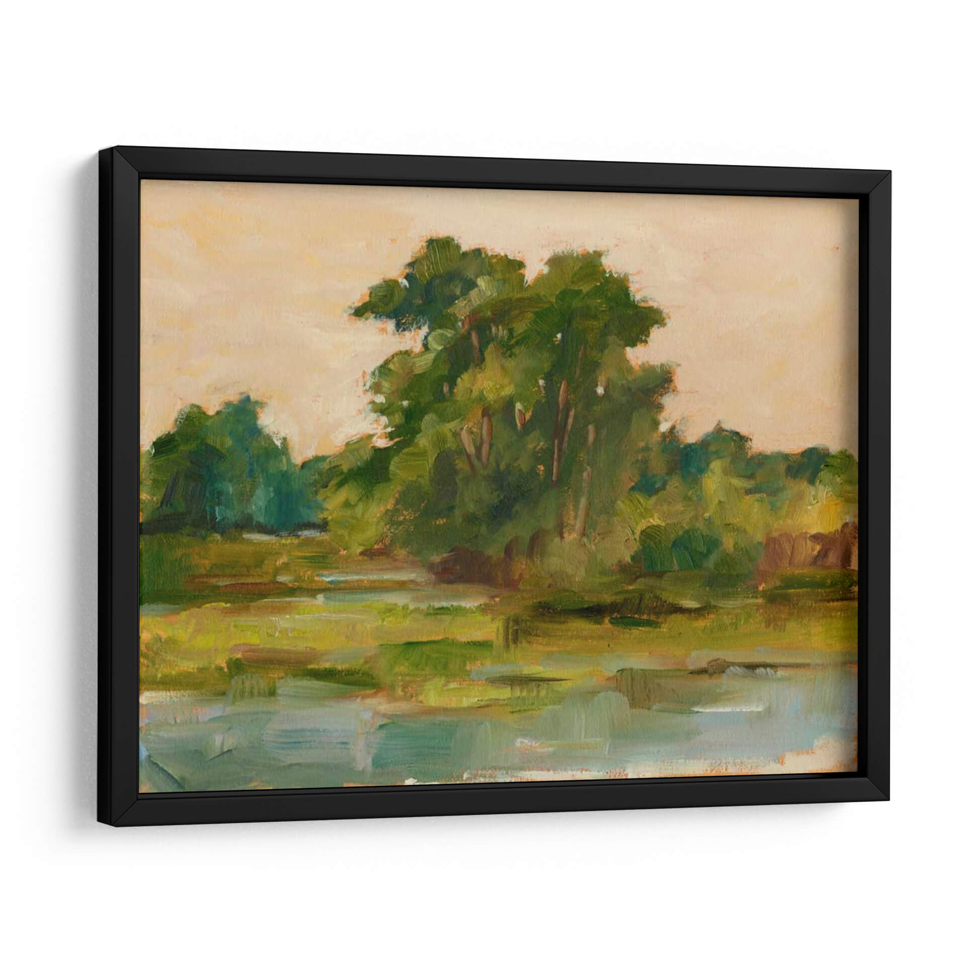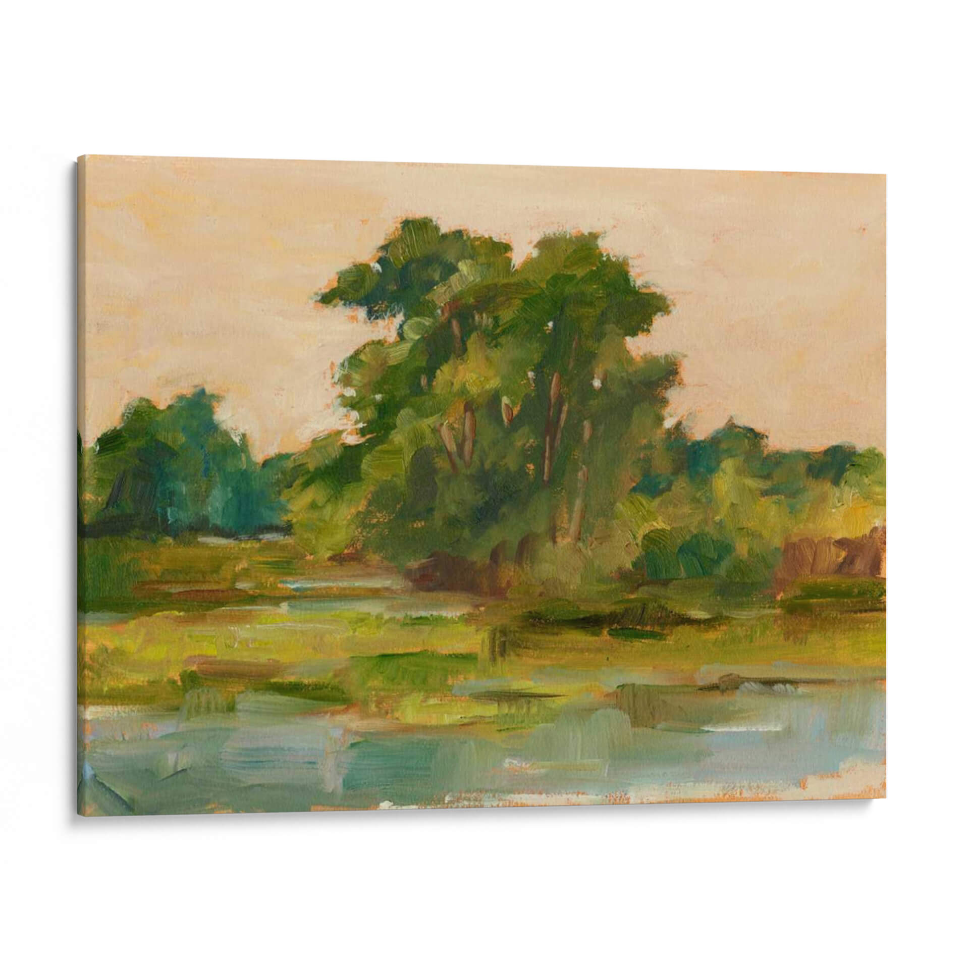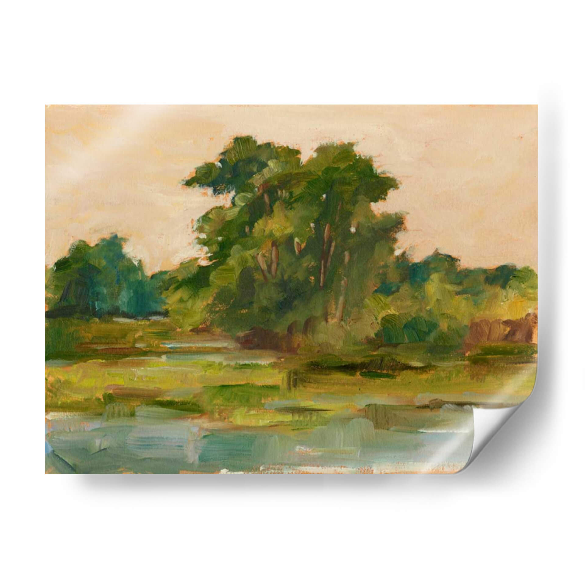 Sumérgete en la serenidad del paisaje con "Cambiando La Luz Del Sol I", una obra de arte de Ethan Harper que captura la esencia efímera de un atardecer o amanecer sobre un campo verde y un cuerpo de agua tranquilo. Los trazos sueltos y la paleta de colores cálidos y terrosos, dominada por verdes vibrantes, amarillos dorados y toques de azul aguamarina, crean una atmósfera de paz y contemplación. La técnica impresionista del artista evoca la sensación de un momento capturado al vuelo, invitando al espectador a sentir la brisa y la calidez de la luz solar filtrándose entre las hojas de los árboles frondosos. Este cuadro decorativo es ideal para transformar cualquier espacio, desde una sala de estar acogedora hasta un estudio tranquilo, añadiendo una dimensión de calma natural y sofisticación. Su composición equilibrada y su evocadora luz lo convierten en una pieza central que invita a la reflexión y al disfrute de la belleza simple de la naturaleza, aportando una sensación de frescura y renovación a tu hogar u oficina.