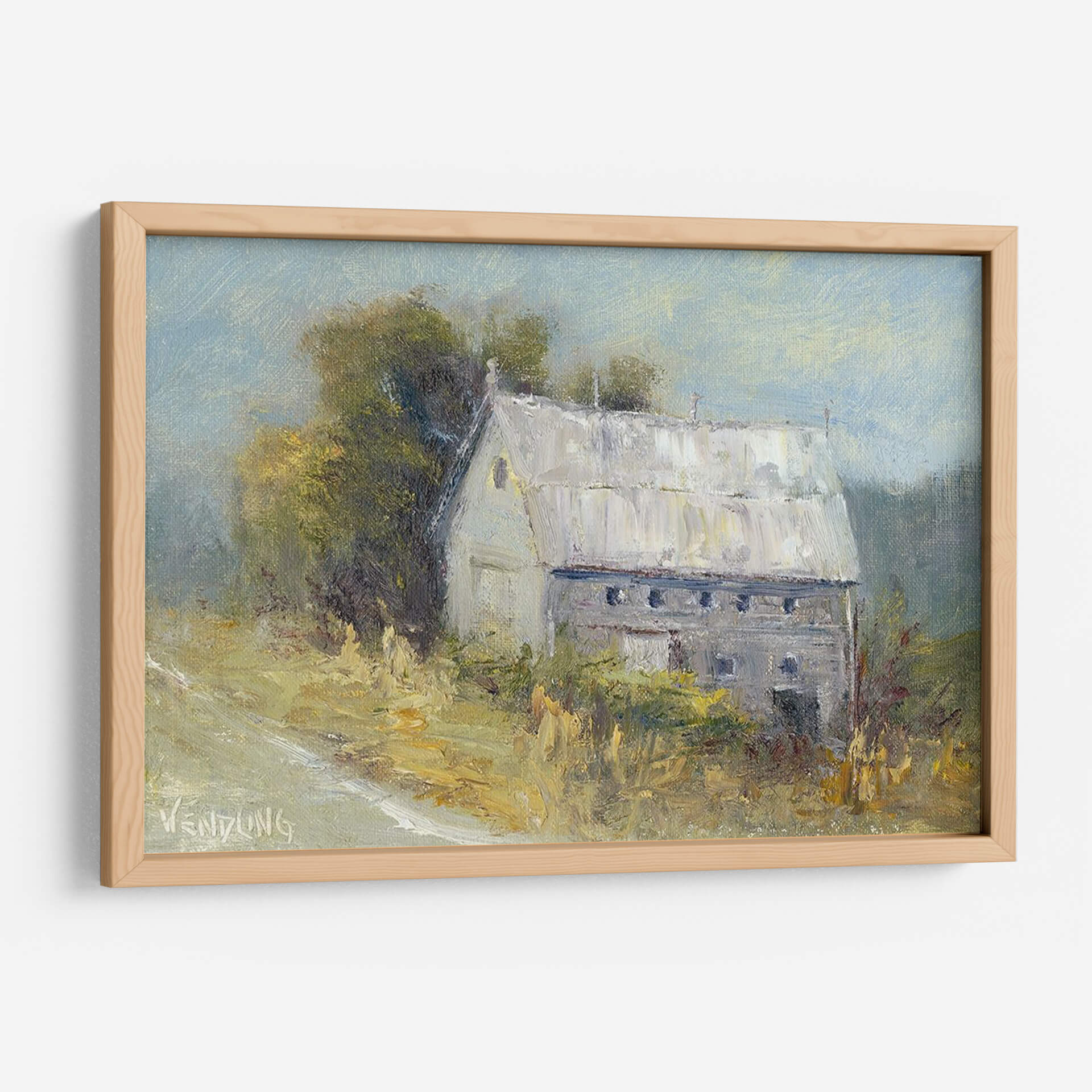 Sumérgete en la nostalgia y la serenidad rural con "Cambio de Temporadas I", una obra maestra de Marilyn Wendling que captura la esencia de un granero tradicional en un paisaje evocador. Esta pintura, con su atmósfera tranquila y pinceladas que sugieren el paso del tiempo, transporta al espectador a un momento de paz campestre. La paleta de colores, dominada por tonos tierra, ocres y grises suaves, junto con sutiles toques de verde y azul, crea una sensación de armonía y conexión con la naturaleza. La composición detallada del granero, con su techo de metal texturizado y las pequeñas aberturas que insinúan historias pasadas, invita a la contemplación. "Cambio de Temporadas I" es ideal para añadir un toque de calidez rústica y elegancia atemporal a cualquier hogar u oficina, convirtiéndose en un punto focal de conversación y serenidad. Perfecta para quienes buscan arte decorativo que evoque recuerdos y sensaciones de paz, esta pieza es una adición valiosa a cualquier colección de arte de pared, aportando carácter y una conexión profunda con el paisaje rural.