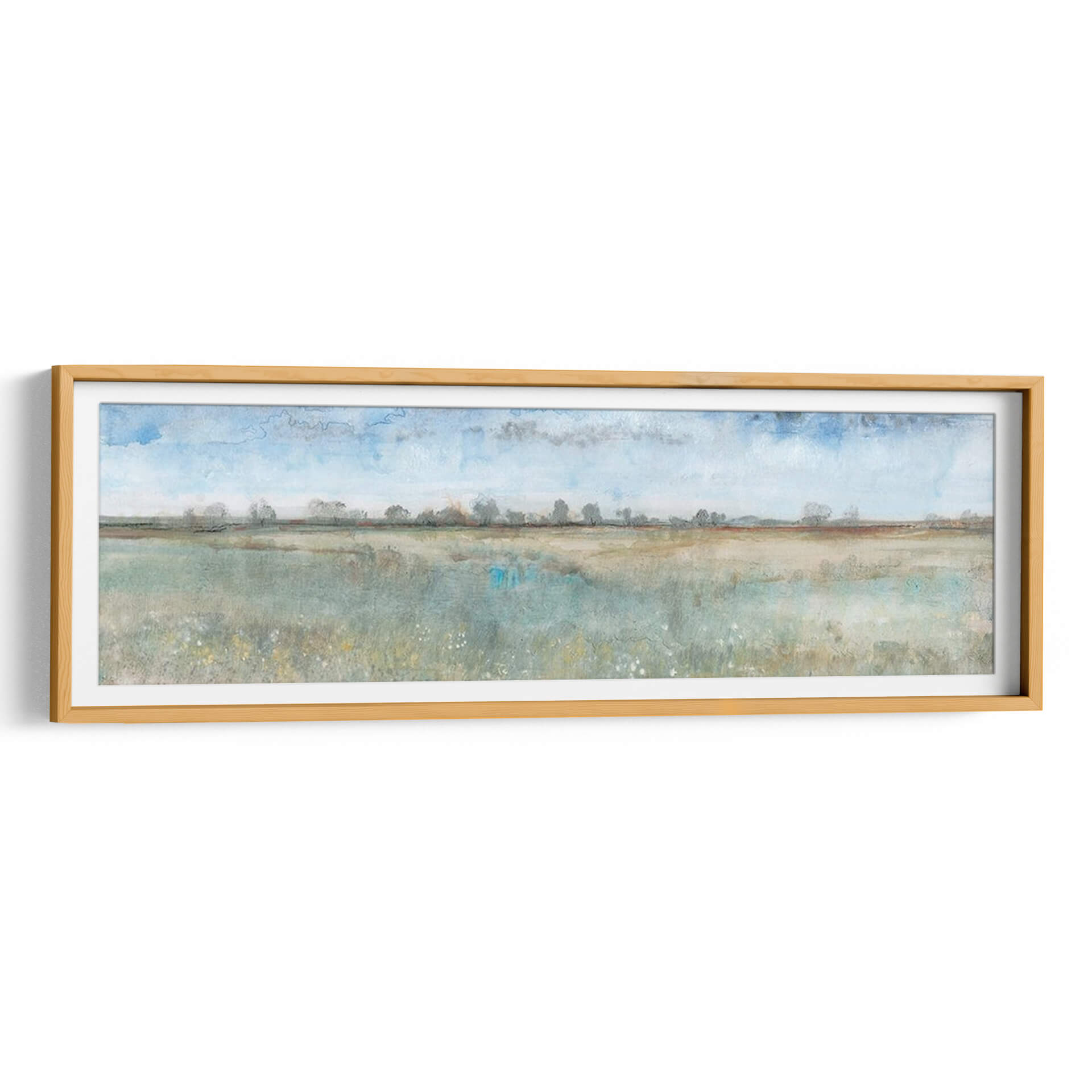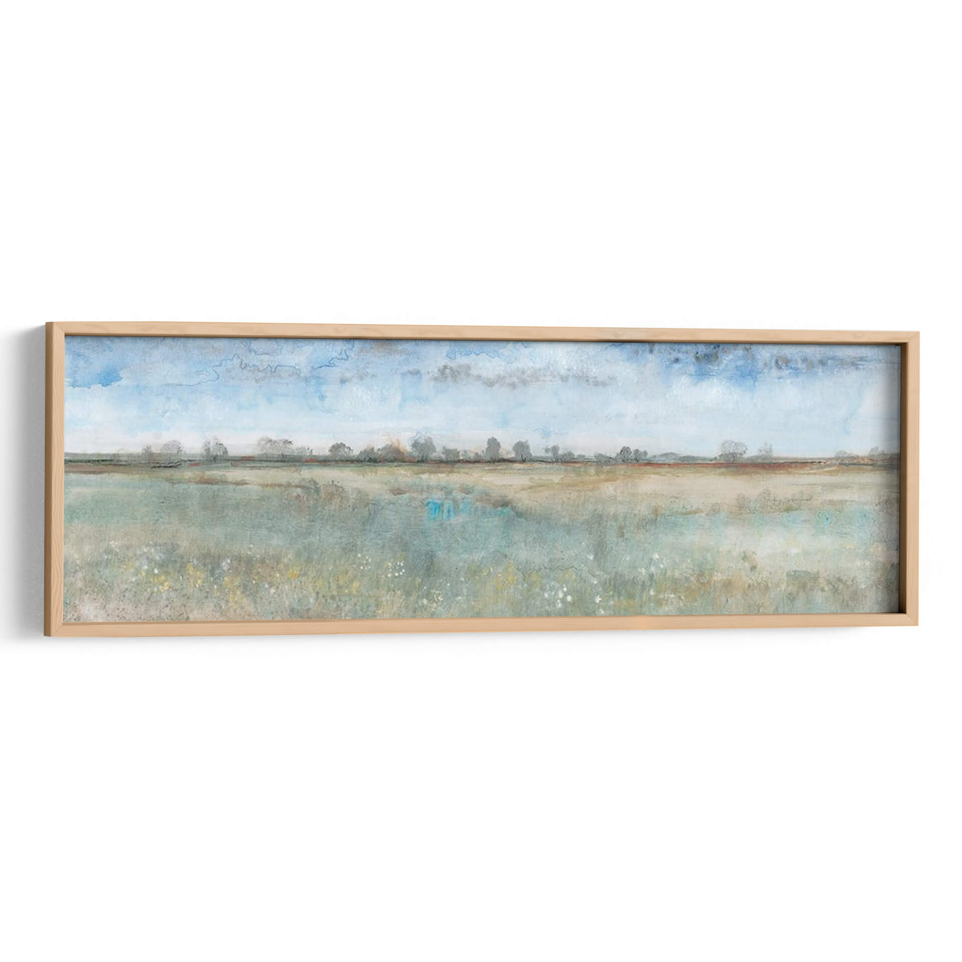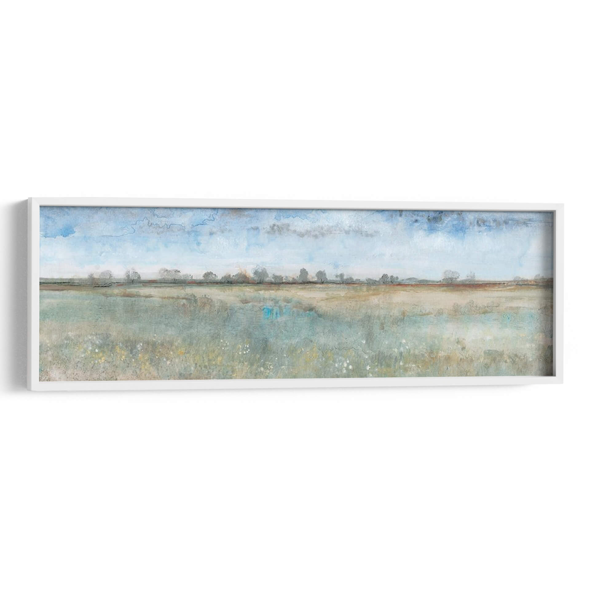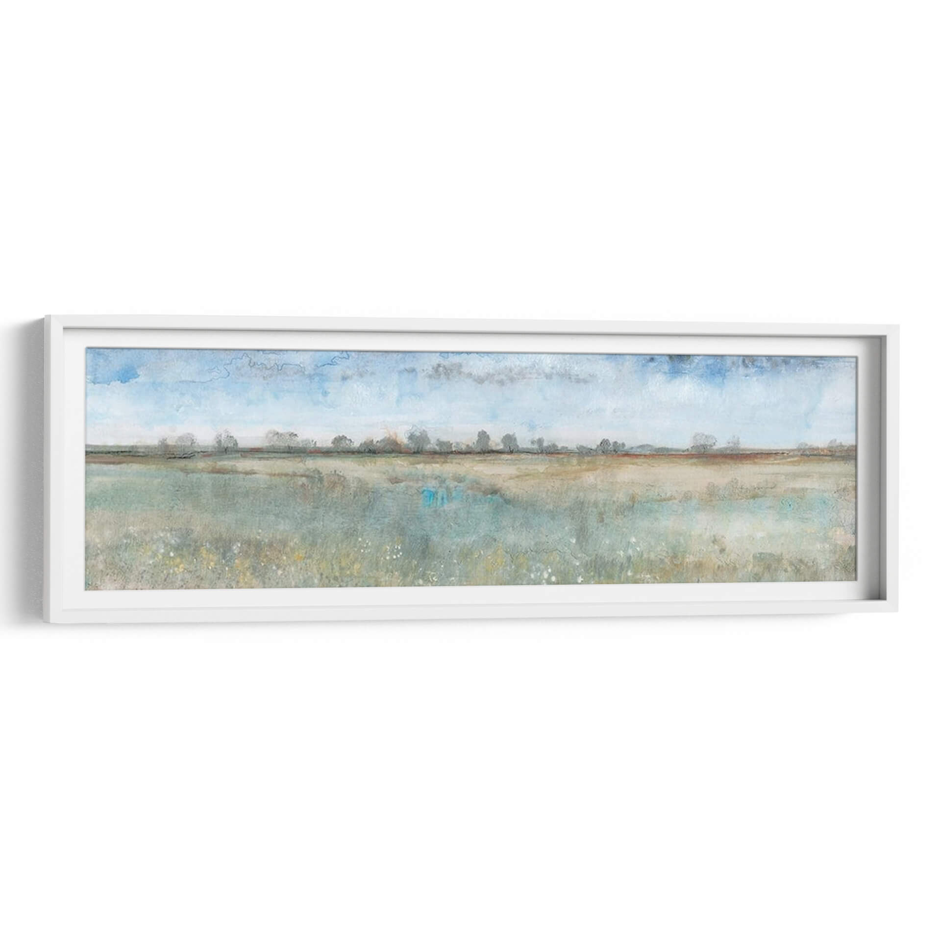 Sumérgete en la serenidad y la belleza etérea de "Campo Abierto I", una cautivadora obra de arte contemporáneo de Tim O'Toole. Este cuadro decorativo transporta la tranquilidad de un vasto paisaje a tu hogar u oficina, invitando a la contemplación y la calma. La pieza se caracteriza por su estilo evocador, con pinceladas que sugieren la inmensidad de un campo bañado por la luz del día. La paleta de colores, dominada por suaves tonos azules celestes, verdes terrosos y toques de ocre, crea una atmósfera apacible y natural. Las sutiles nubes en el cielo y la línea de árboles distantes en el horizonte añaden profundidad y perspectiva, mientras que las delicadas flores silvestres en primer plano aportan un toque de vitalidad orgánica. "Campo Abierto I" es ideal para aquellos que buscan infundir a sus espacios una sensación de paz y conexión con la naturaleza. Este lienzo es perfecto para salones, dormitorios o estudios, actuando como un punto focal de serenidad o complementando una decoración de estilo nórdico, rústico o minimalista. Transforma tu pared en una ventana a la tranquilidad con este exquisito cuadro decorativo.