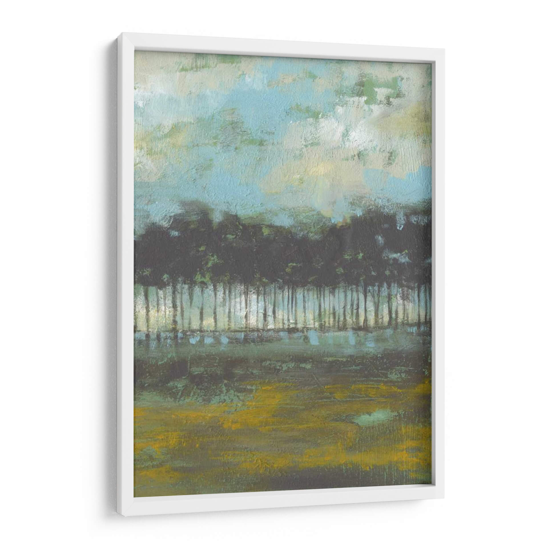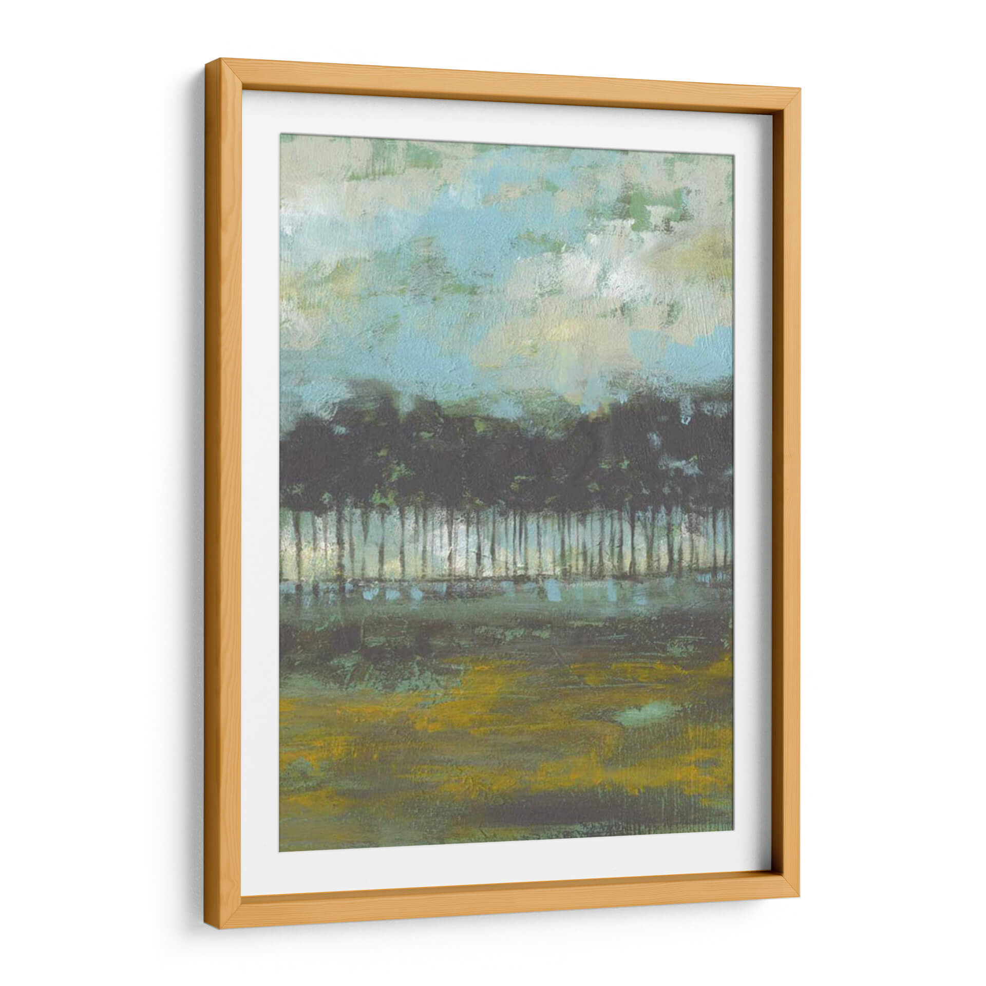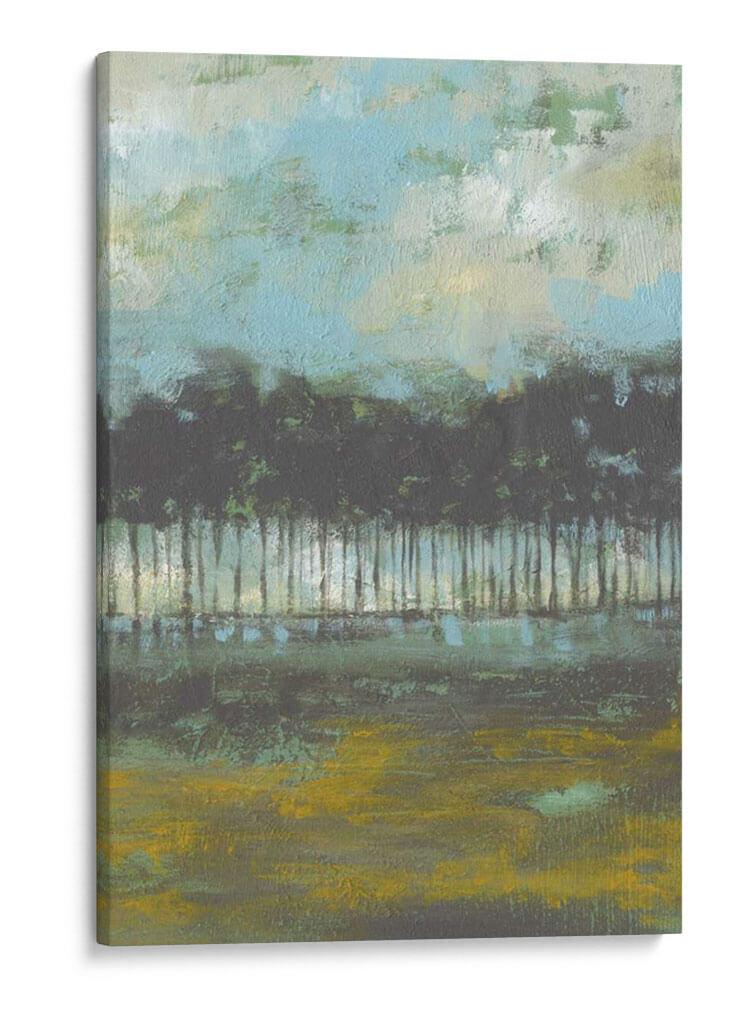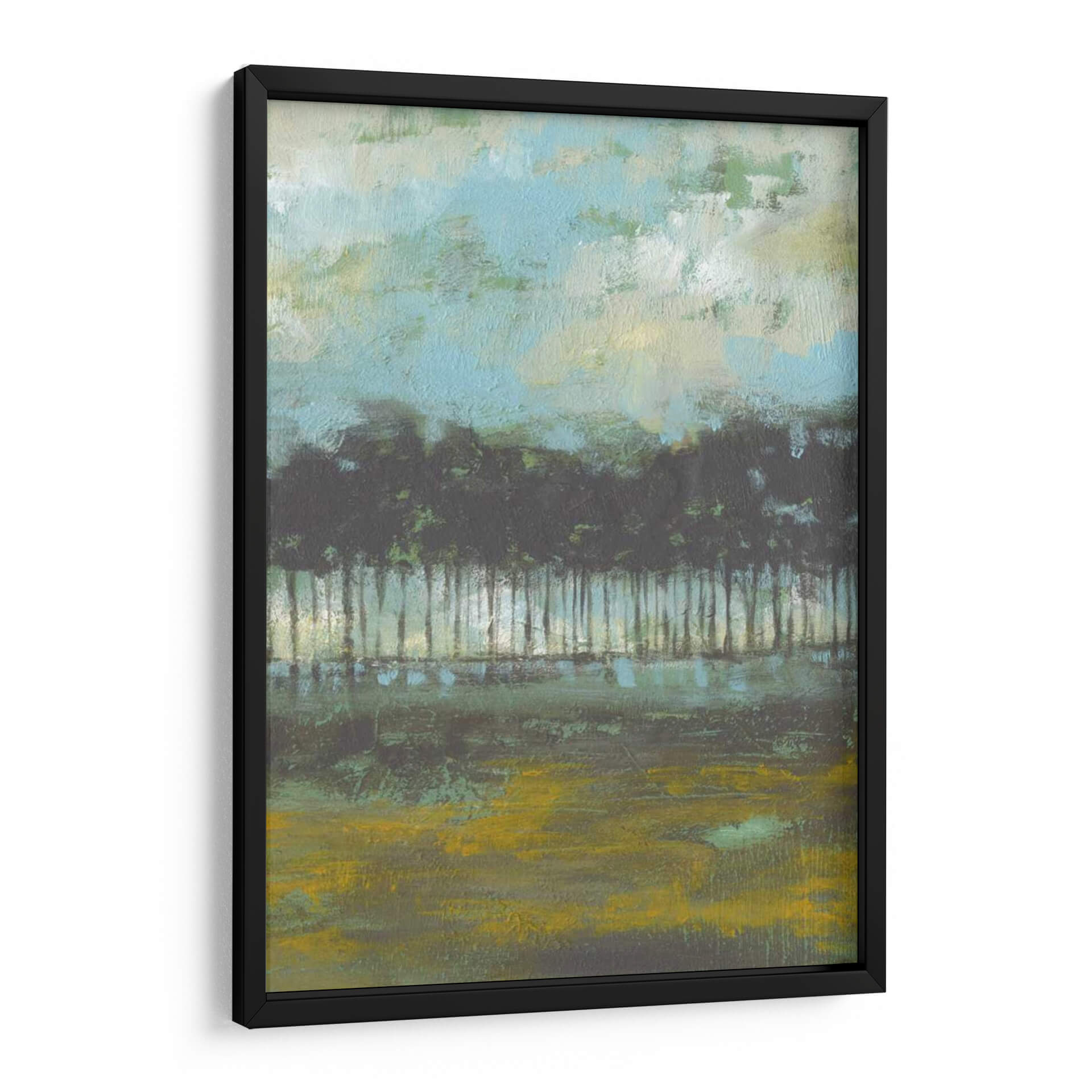 Sumérgete en la serena belleza de "Campo De Oro II", una cautivadora obra de arte contemporáneo de Jennifer Goldberger. Esta pieza evoca la tranquilidad de un paisaje natural con una interpretación abstracta y evocadora. La composición presenta una línea de árboles oscuros y estilizados que se ciernen sobre un cuerpo de agua reflectante, todo ello coronado por un cielo nublado en tonos celestes y pasteles. La paleta de colores, dominada por verdes musgo, ocres dorados, azules celestes y grises profundos, crea una atmósfera de calma y contemplación. Las pinceladas texturizadas y el estilo impresionista moderno añaden profundidad y carácter, invitando al espectador a perderse en la atmósfera de la escena. "Campo De Oro II" es una elección perfecta para infundir serenidad y un toque de naturaleza a cualquier espacio, ya sea una sala de estar acogedora, un dormitorio de ensueño o una oficina que busque un respiro visual. Este cuadro decorativo contemporáneo se integra armoniosamente en estilos de decoración modernos, rústicos o eclécticos, aportando una sensación de paz y conexión con el entorno.
