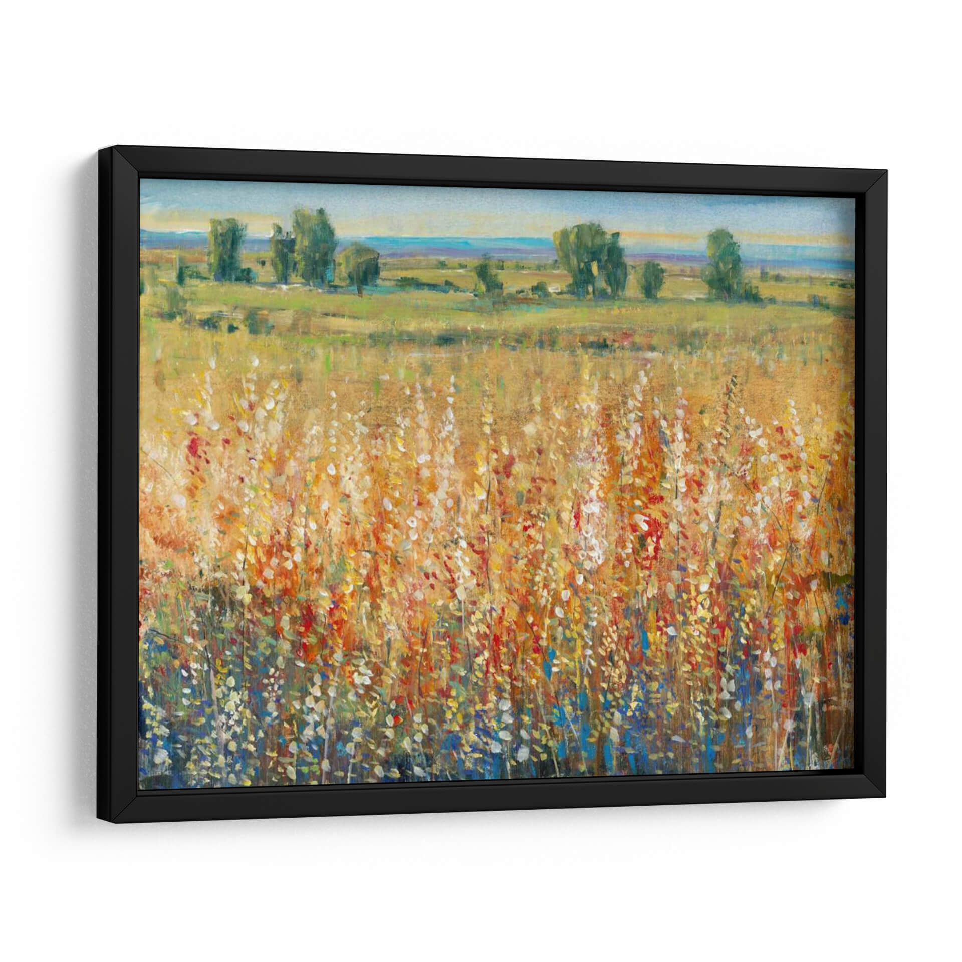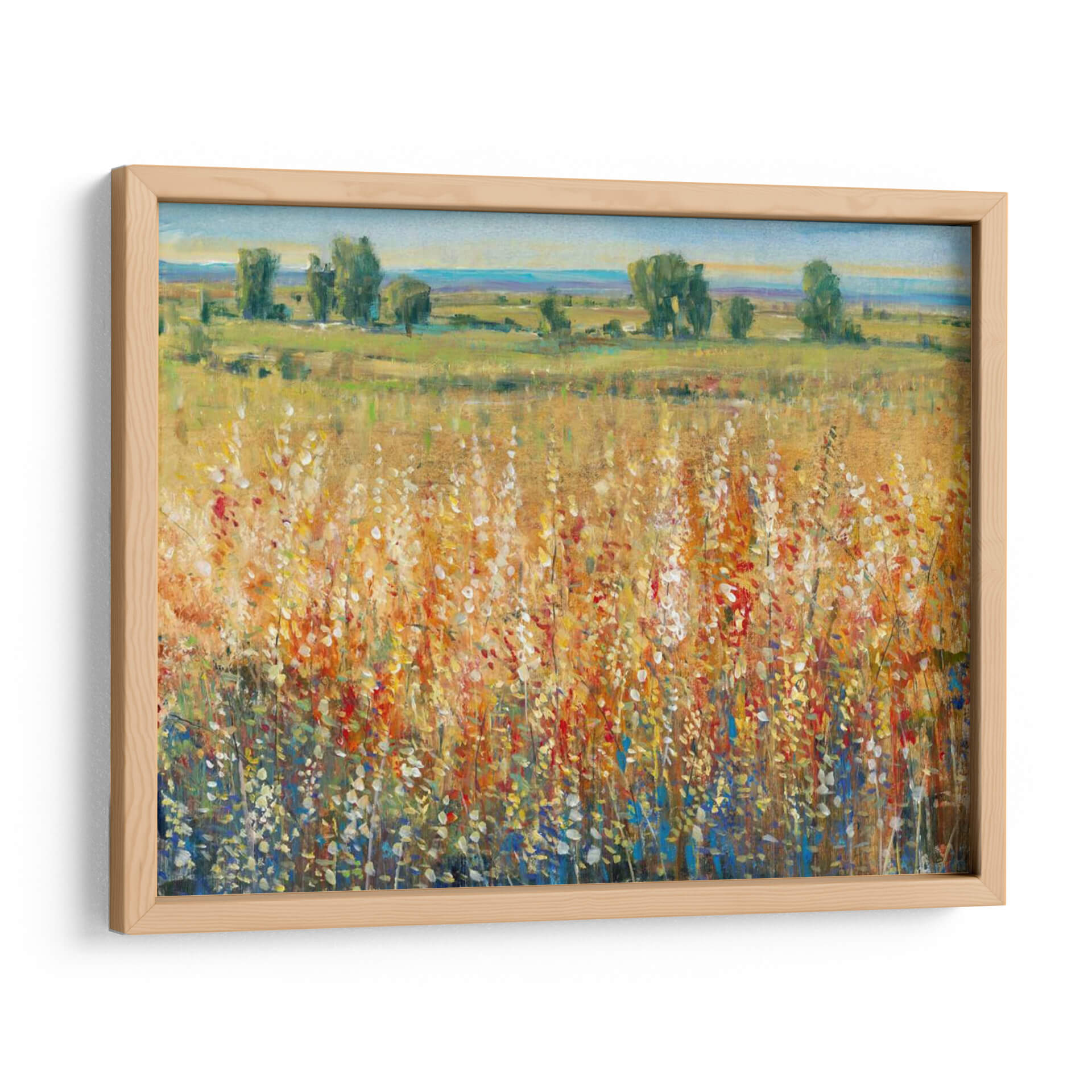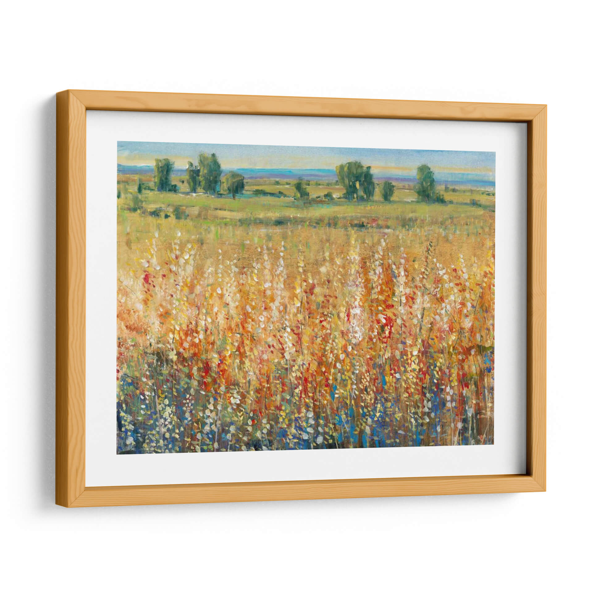 Sumérgete en la vibrante calidez de "Campo De Oro Y Rojo II", una obra de arte que captura la esencia de un paisaje campestre bañado por la luz del sol. El artista Tim O'Toole nos transporta a un prado exuberante, donde pinceladas enérgicas dan vida a una sinfonía de colores dorados, rojos intensos y toques de azul y blanco que evocan la frescura de la naturaleza. Esta pieza, con su estilo post-impresionista y su composición que fusiona la inmensidad del horizonte con el detalle de la vegetación en primer plano, transmite una sensación de vitalidad y serenidad a partes iguales. Es el cuadro decorativo perfecto para infundir energía y un toque de color en cualquier estancia, desde una sala de estar moderna hasta un dormitorio acogedor o una oficina que busque inspiración. "Campo De Oro Y Rojo II" no es solo una obra de arte, es una invitación a sentir la belleza efímera de un campo en flor, transformando tu espacio en un refugio de paz y alegría visual.