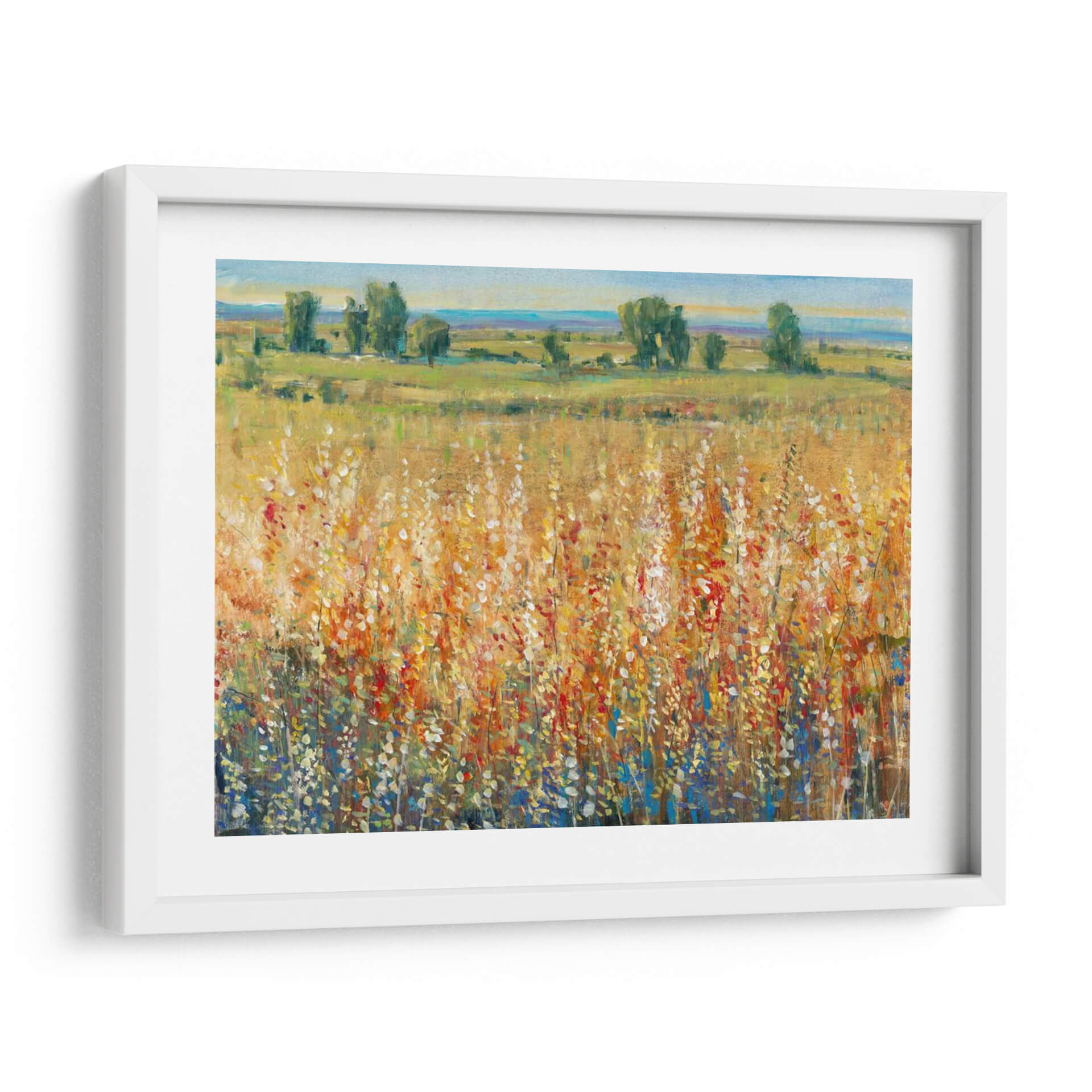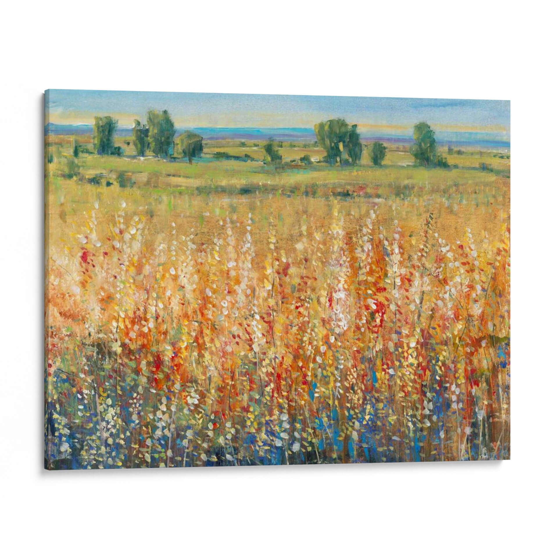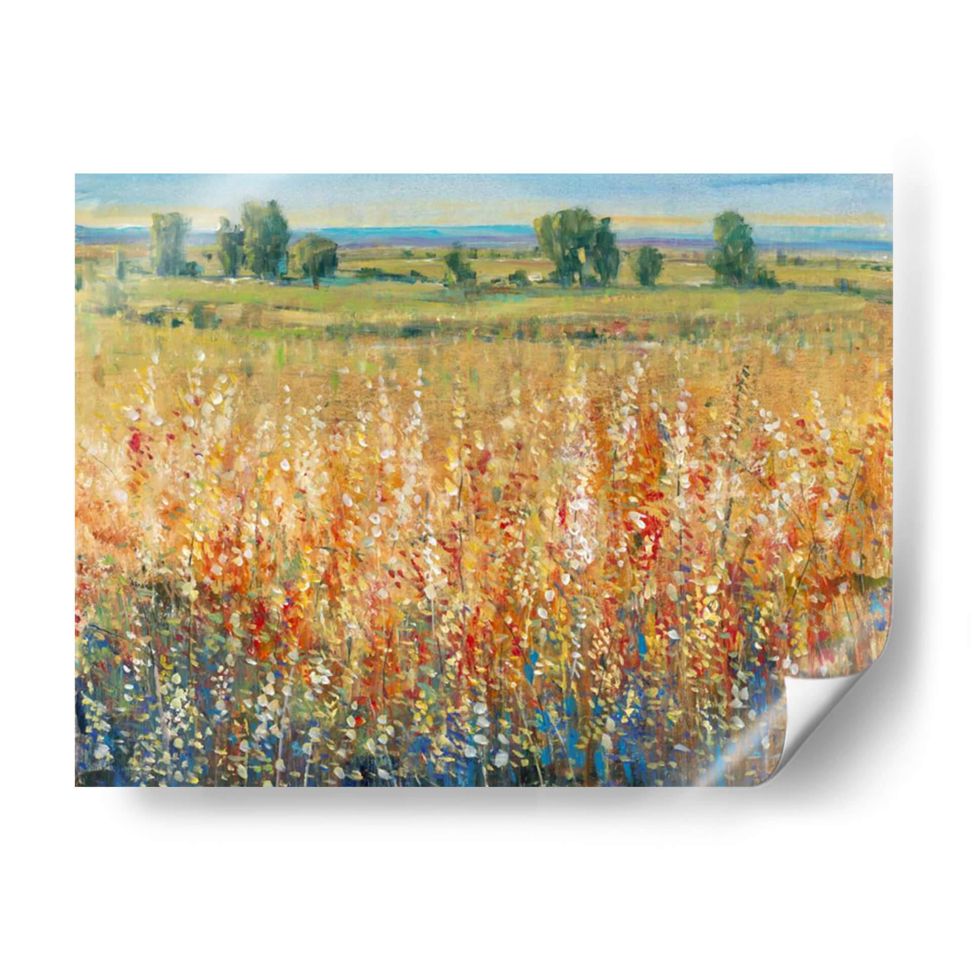 Sumérgete en la vibrante calidez de "Campo De Oro Y Rojo II", una obra de arte que captura la esencia de un paisaje campestre bañado por la luz del sol. El artista Tim O'Toole nos transporta a un prado exuberante, donde pinceladas enérgicas dan vida a una sinfonía de colores dorados, rojos intensos y toques de azul y blanco que evocan la frescura de la naturaleza. Esta pieza, con su estilo post-impresionista y su composición que fusiona la inmensidad del horizonte con el detalle de la vegetación en primer plano, transmite una sensación de vitalidad y serenidad a partes iguales. Es el cuadro decorativo perfecto para infundir energía y un toque de color en cualquier estancia, desde una sala de estar moderna hasta un dormitorio acogedor o una oficina que busque inspiración. "Campo De Oro Y Rojo II" no es solo una obra de arte, es una invitación a sentir la belleza efímera de un campo en flor, transformando tu espacio en un refugio de paz y alegría visual.